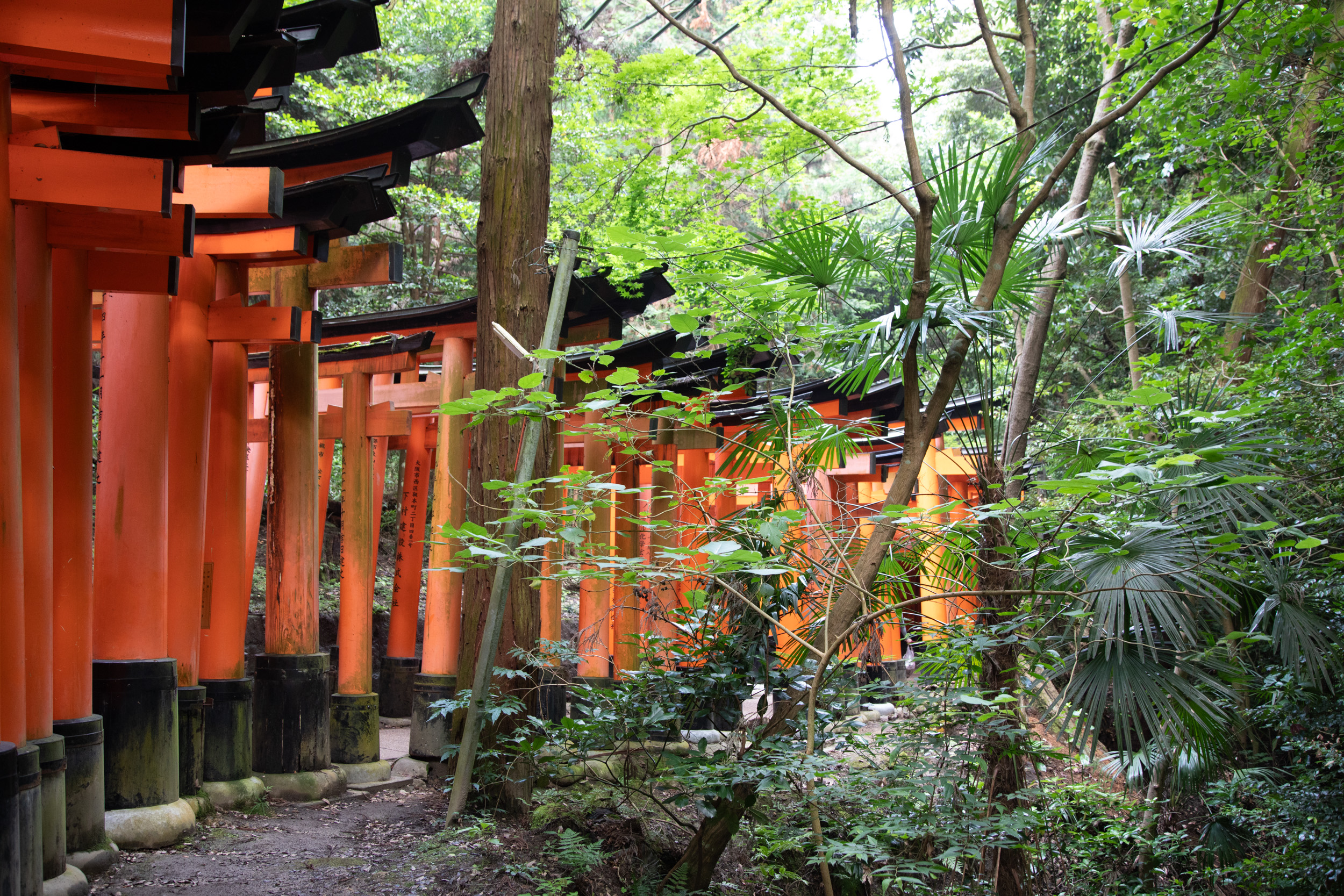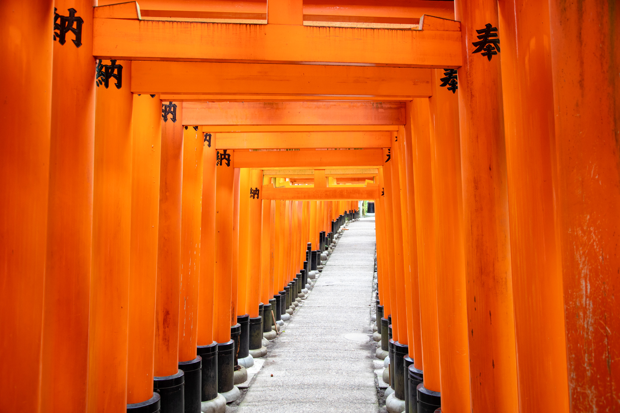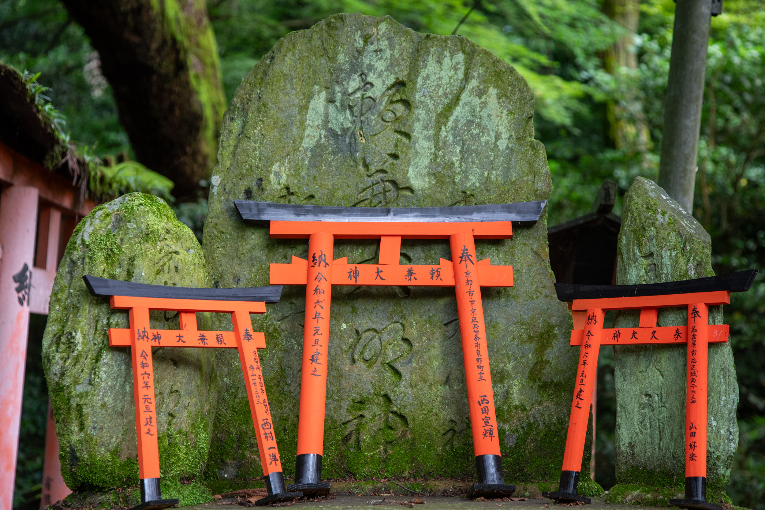 De l’autre côté des tori, il y a des caractères kanji qui sont en fait inscrit sur le montant, cela donne une perspective tout à fait différente dans ce sens.