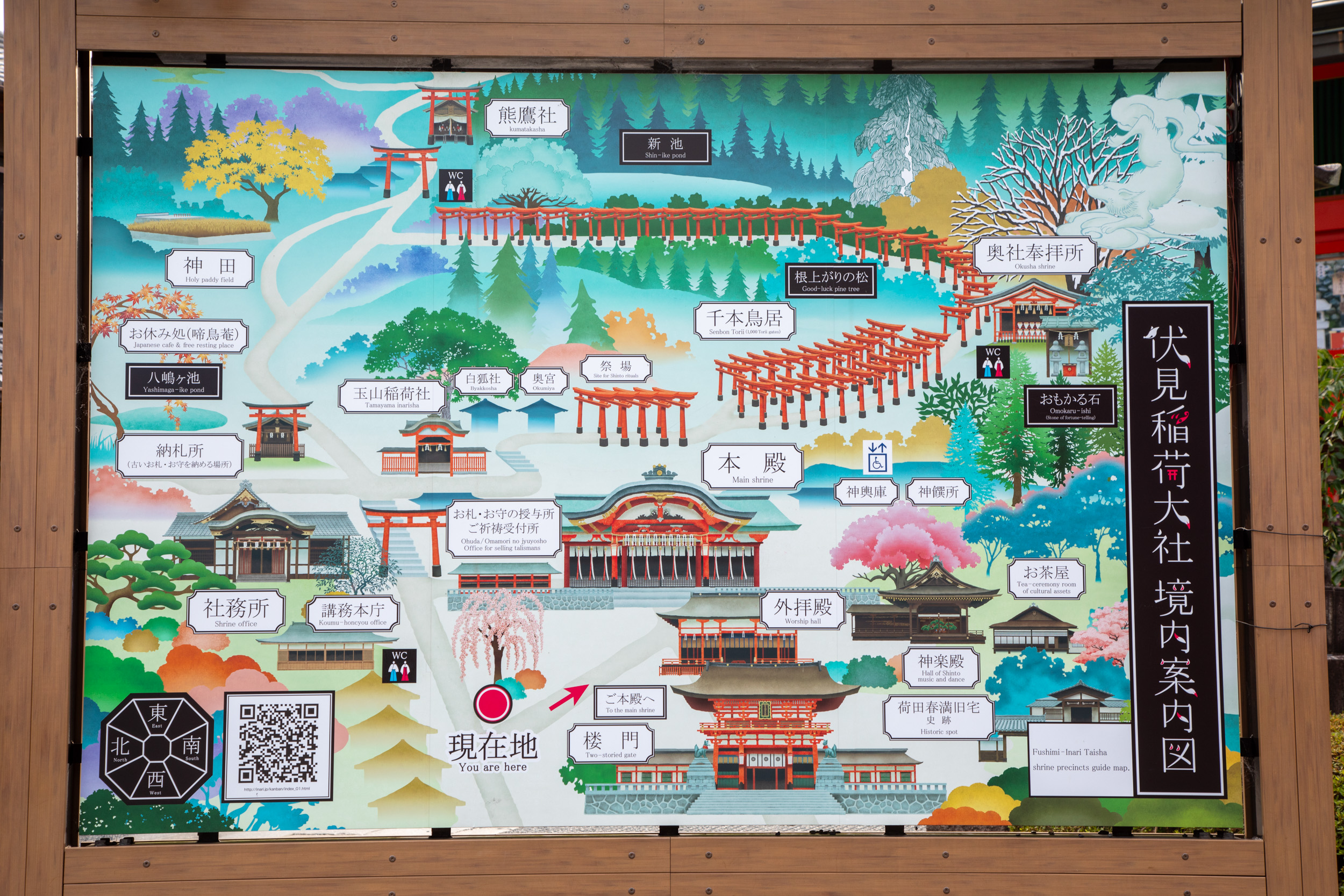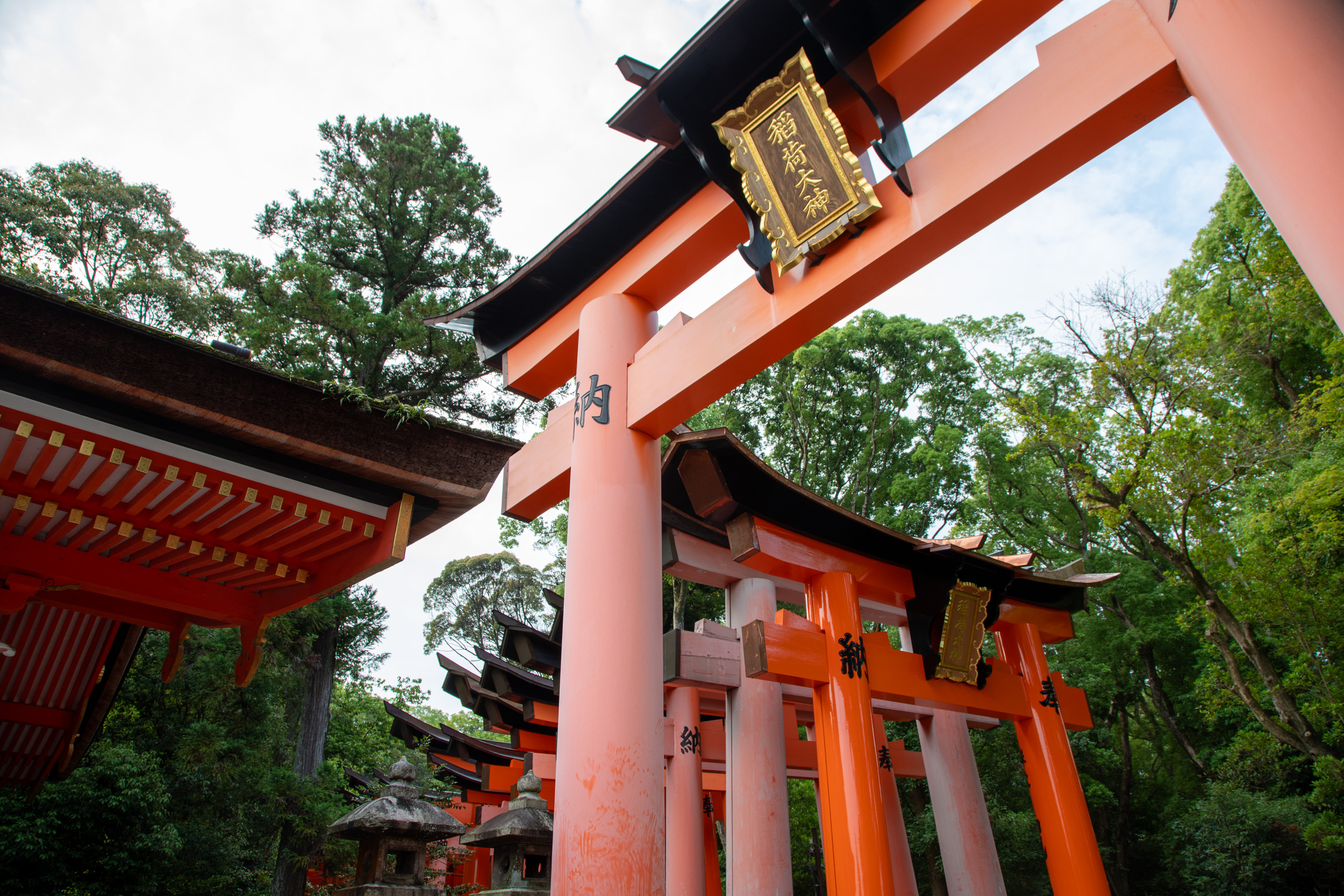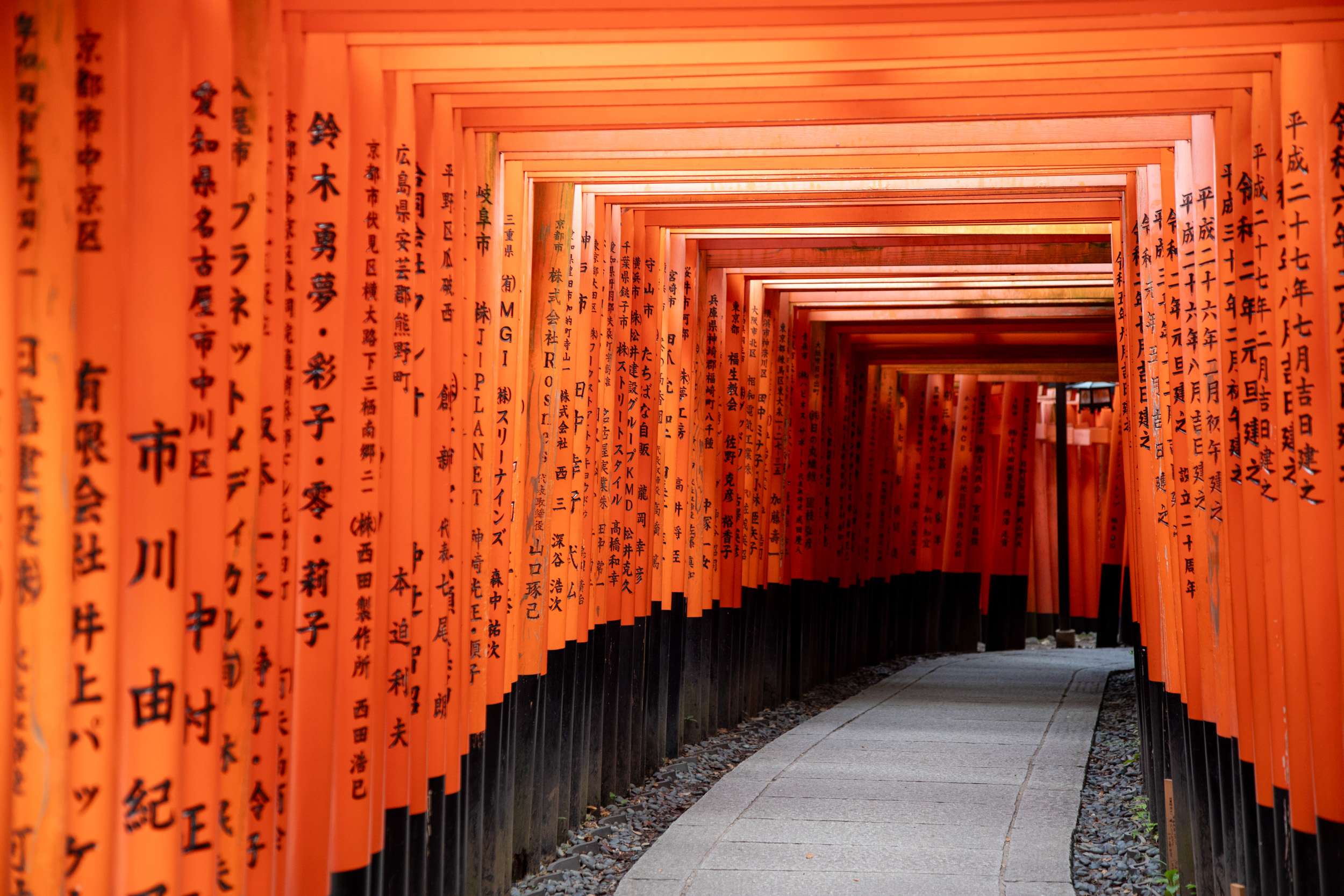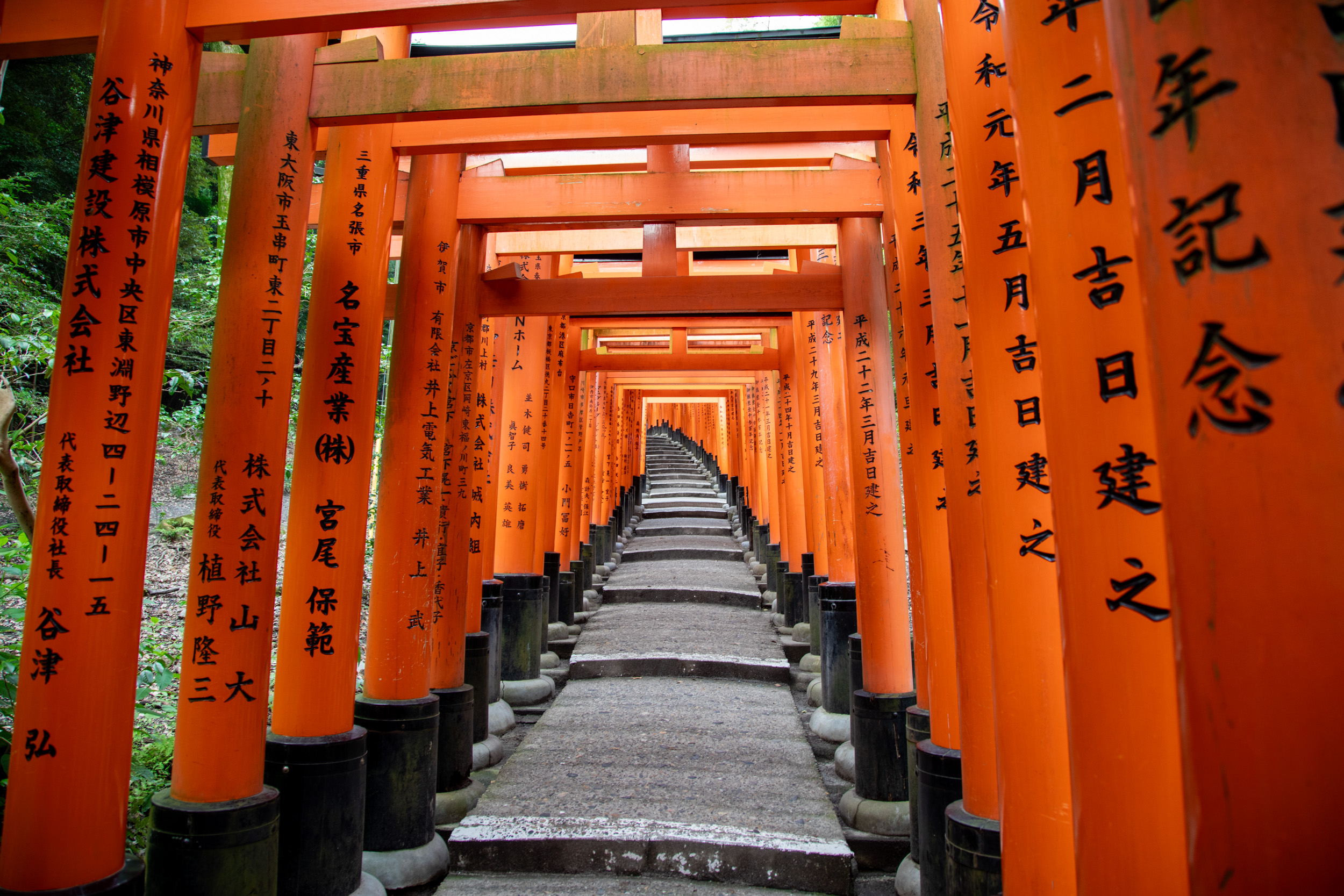 De l’autre côté des tori, il y a des caractères kanji qui sont en fait inscrit sur le montant, cela donne une perspective tout à fait différente dans ce sens.