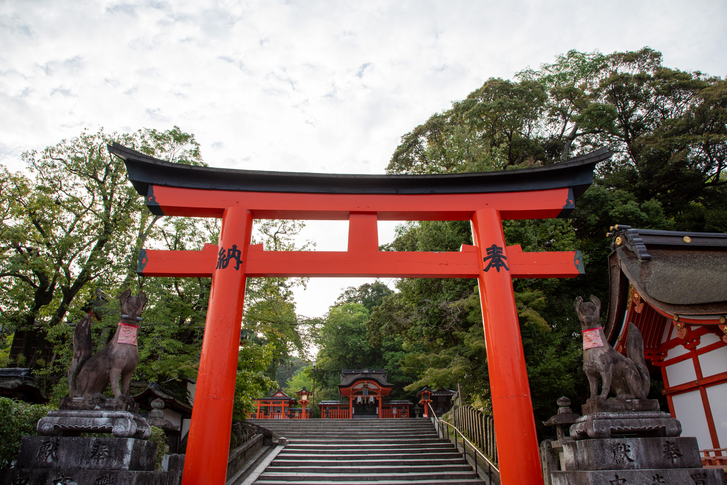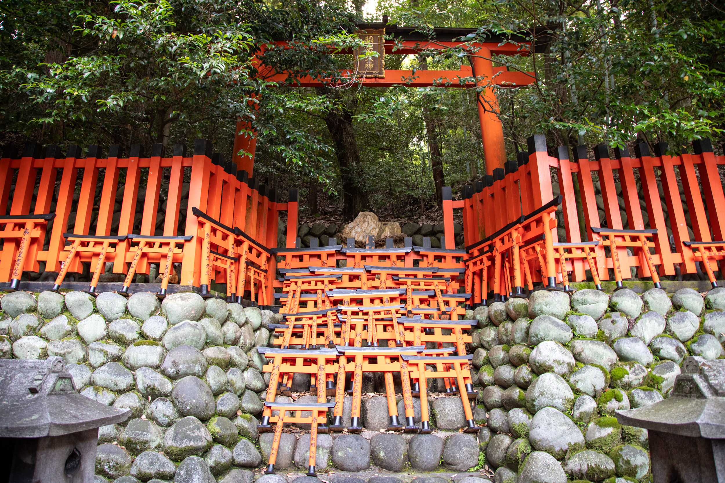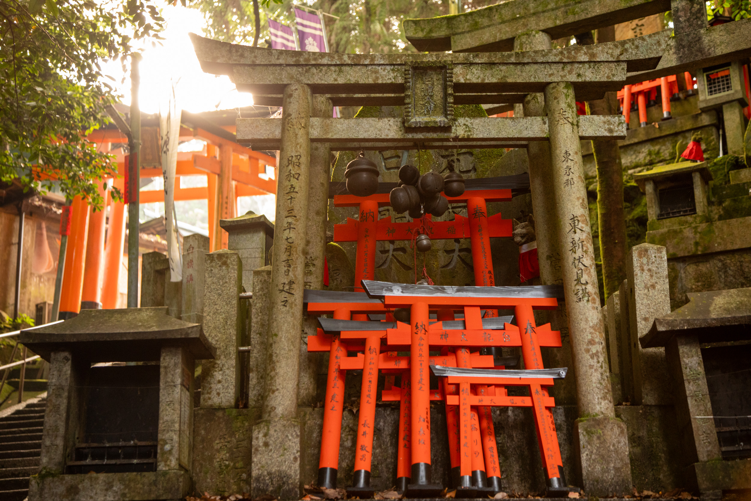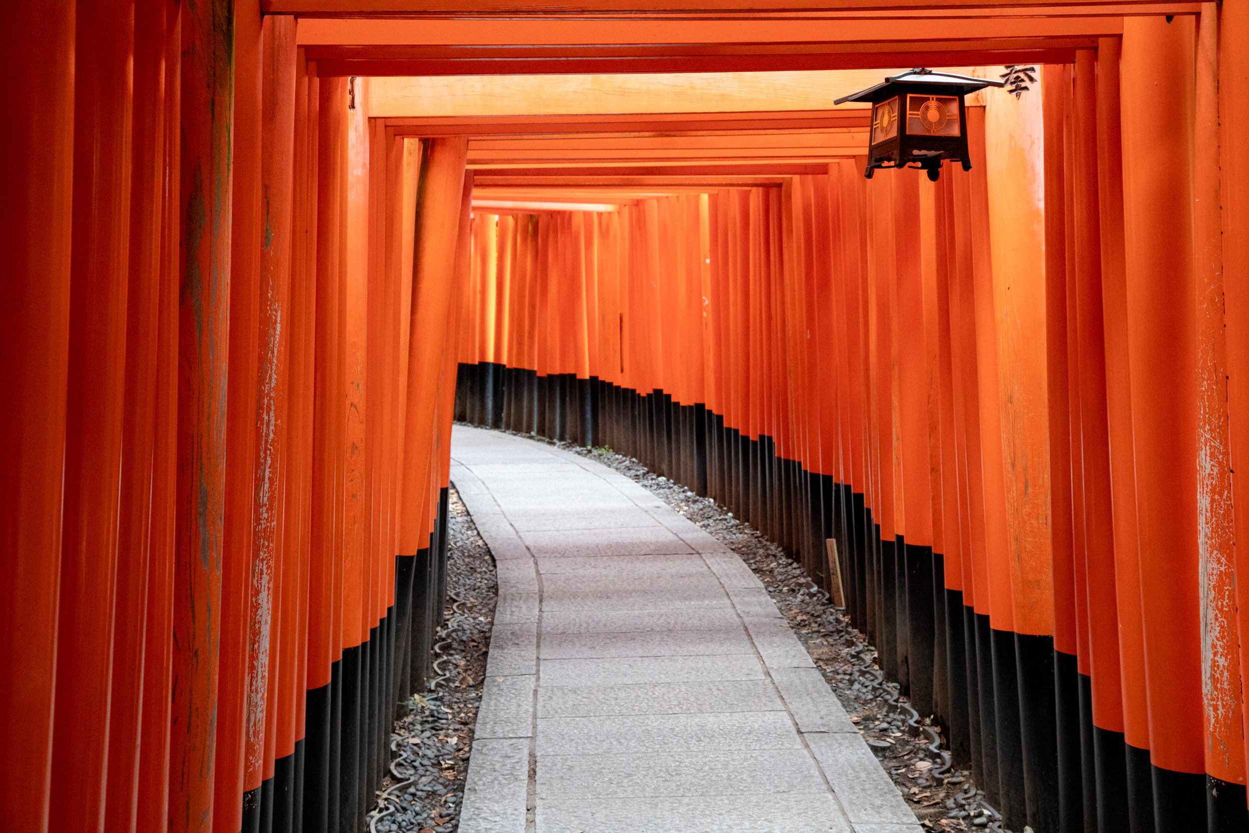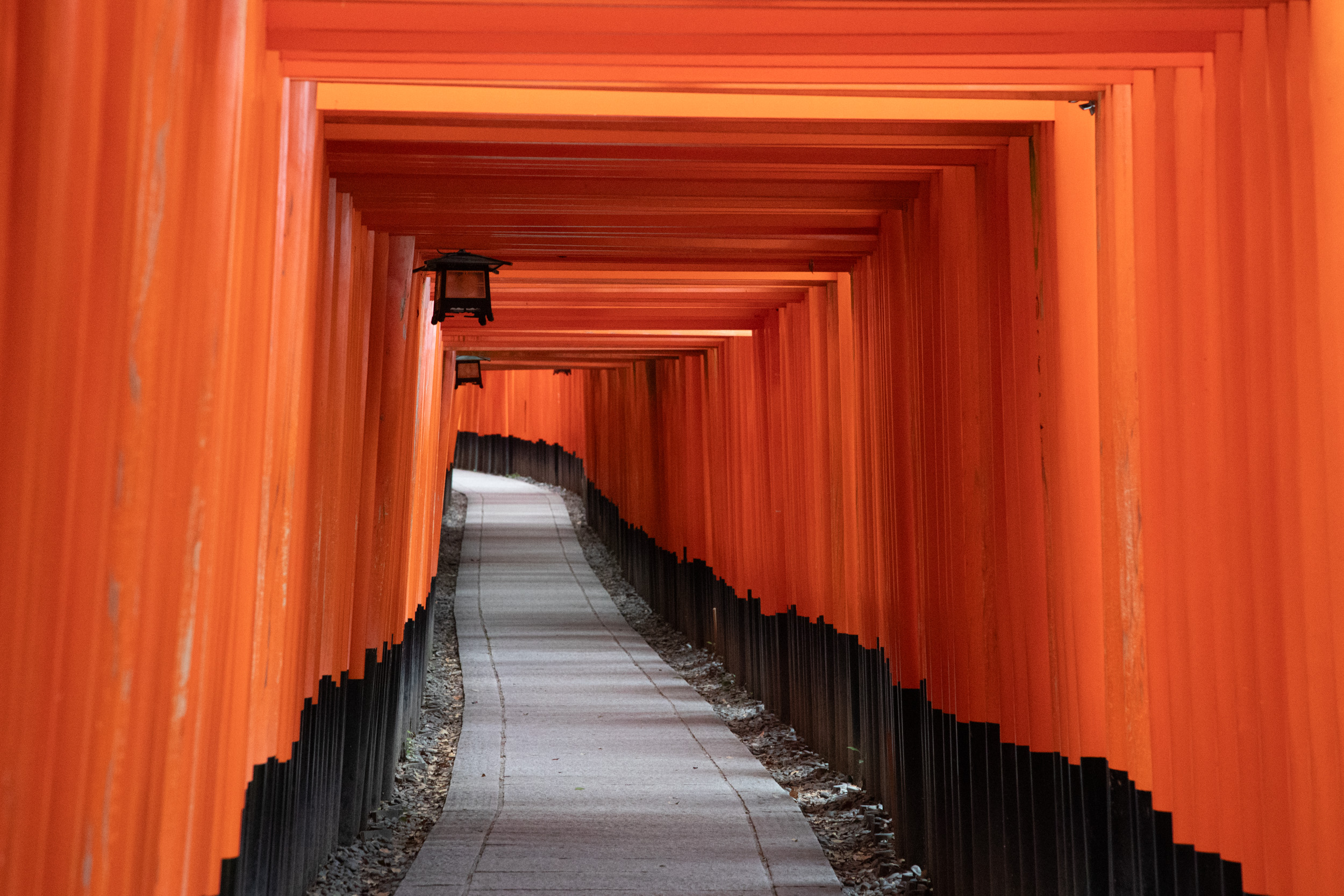 On continue notre séjour au programme bien rempli à Kyoto en se levant à 5h du matin. À cette heure-ci nous rejoignons Fushimi Inari, qui signifie les milliers de toris, ces portails japonais rouge que l’on trouve dans tout le pays. Fushimi Inari fait partie des endroits les plus connus du Japon, il faut dire que ce sont plus de dix mille toris qui sont alignés les uns derrière les autres sur un parcours parsemé de temples qui gravît une colline.