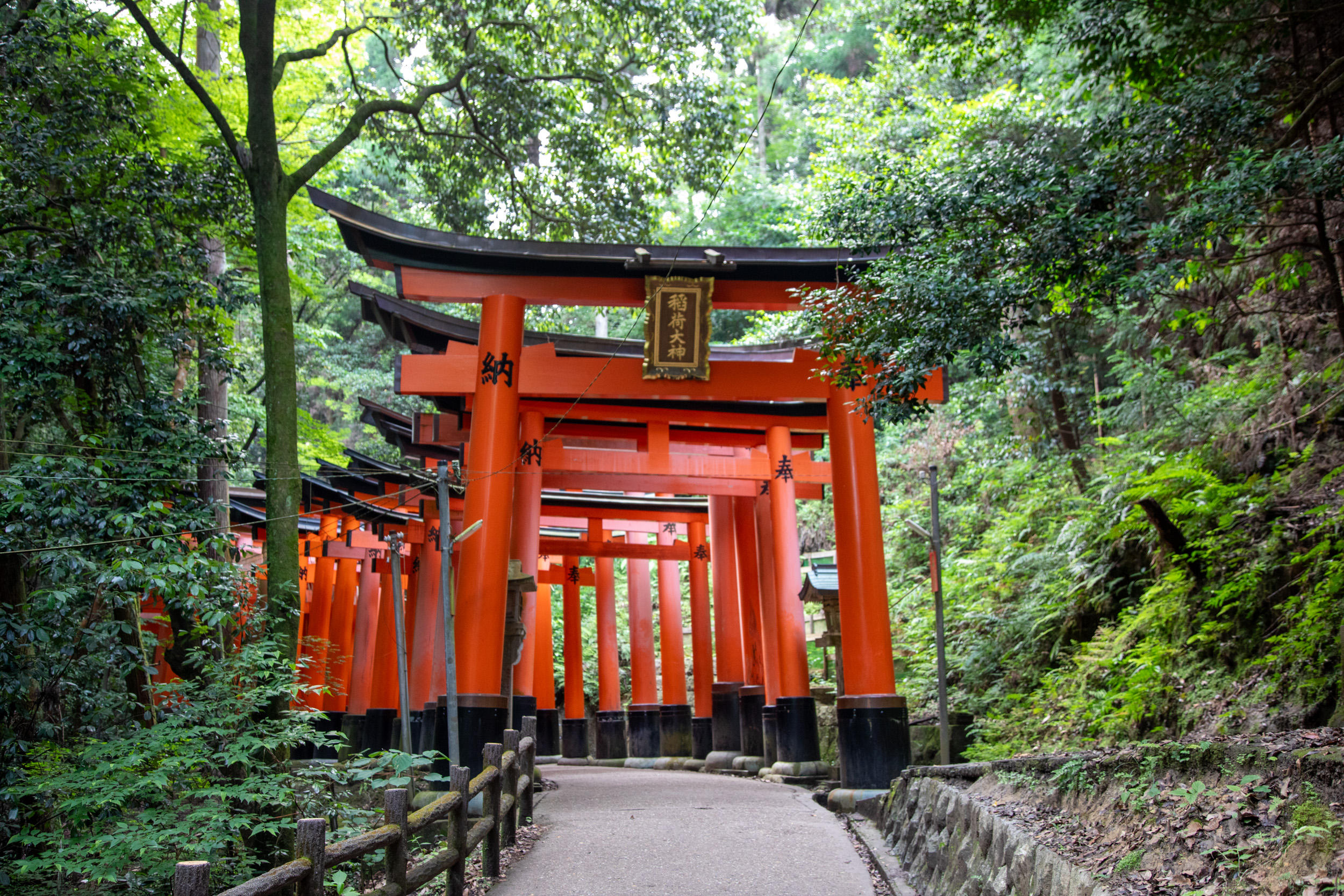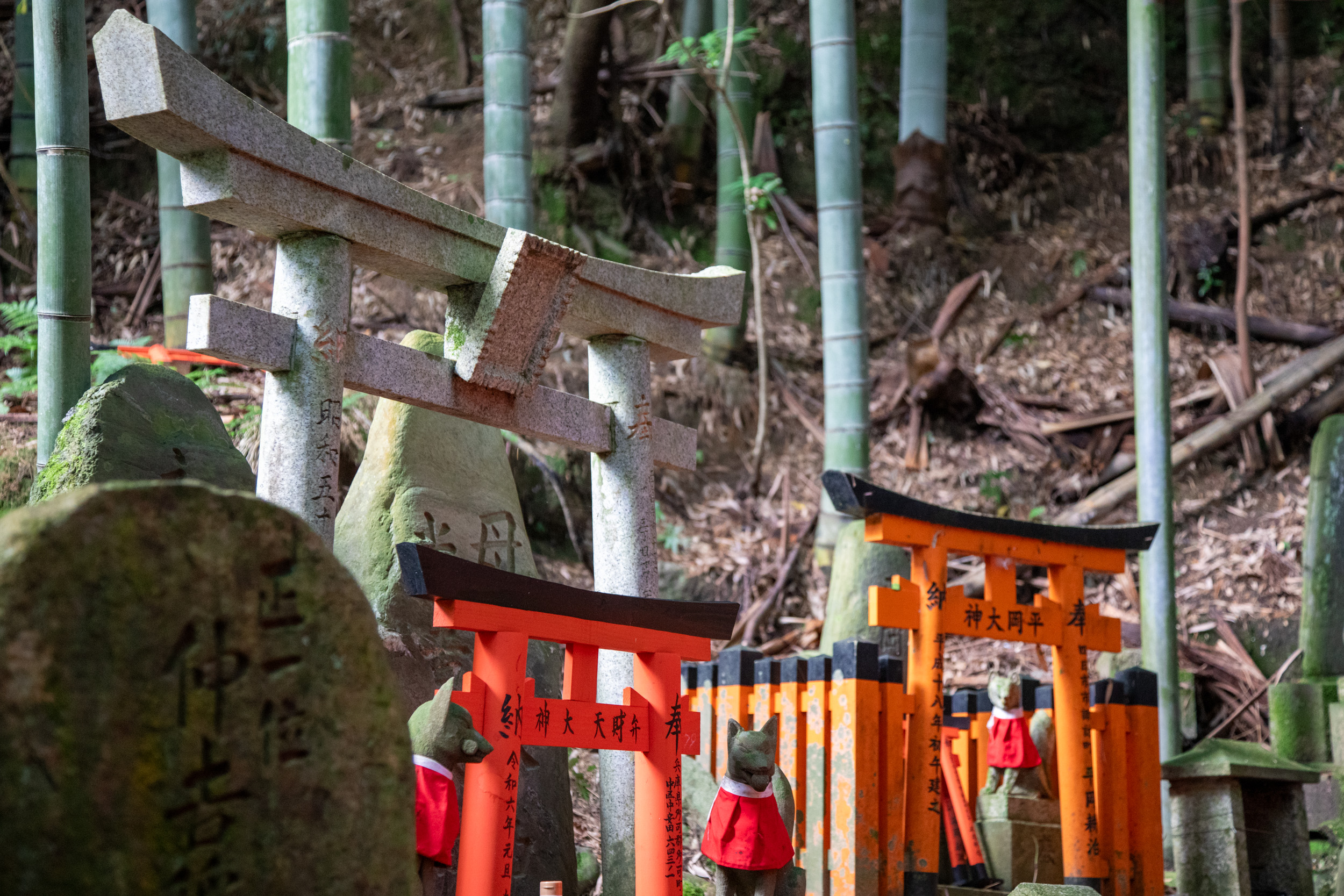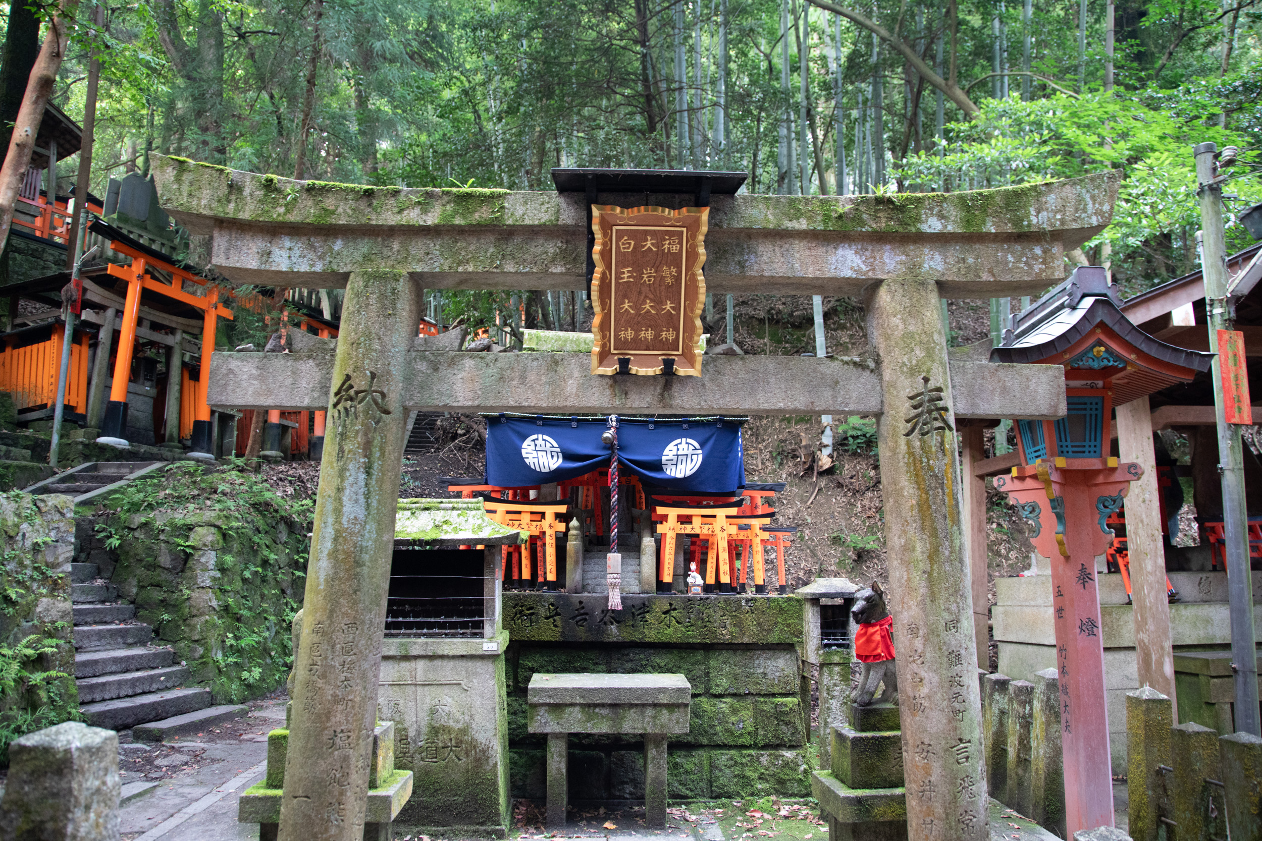 Encore une nouvelle série de toris au milieu de la végétation, il y a des panneaux qui mettent en garde contre la présence de sangliers et de singes dans le coin.