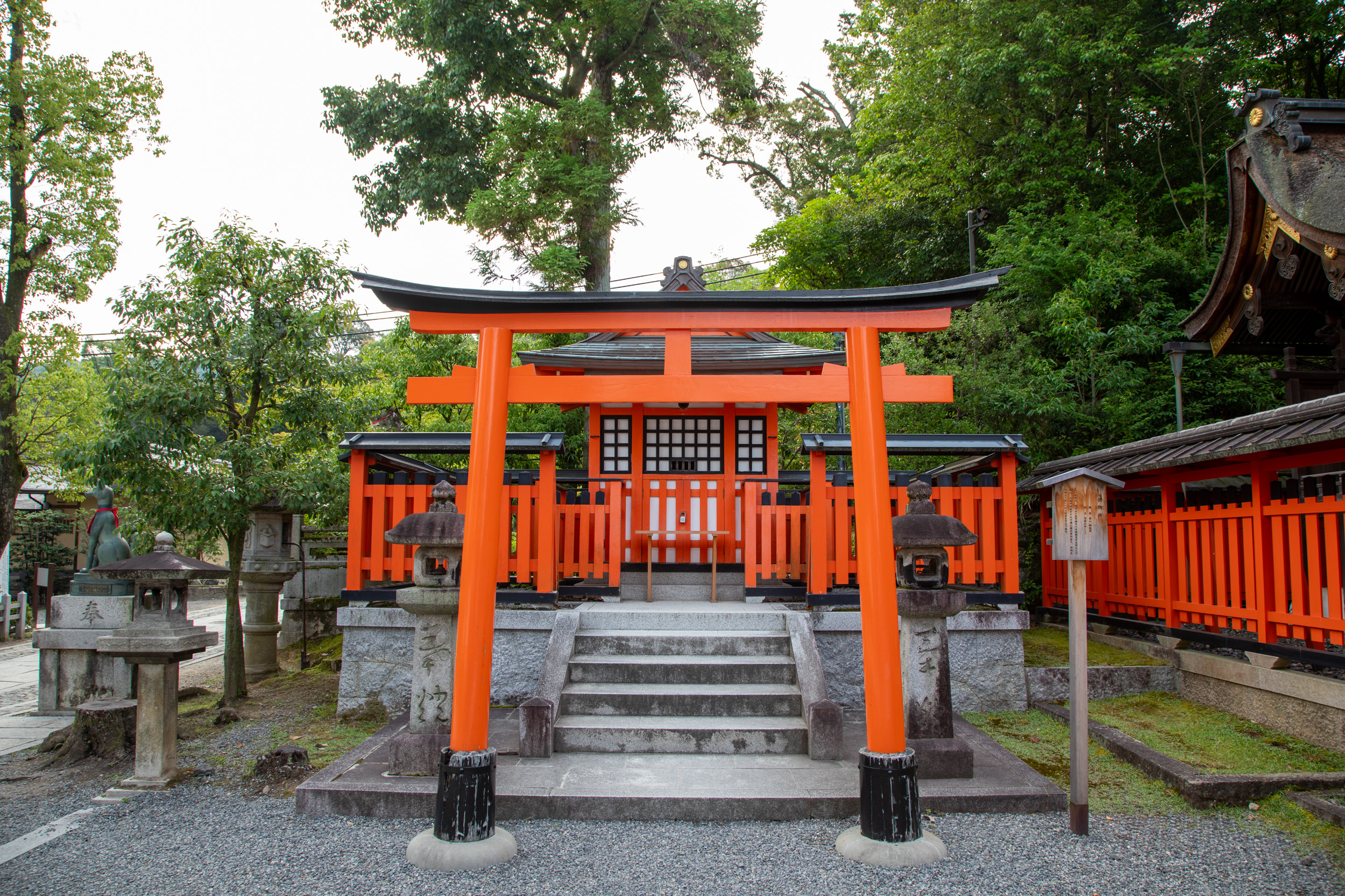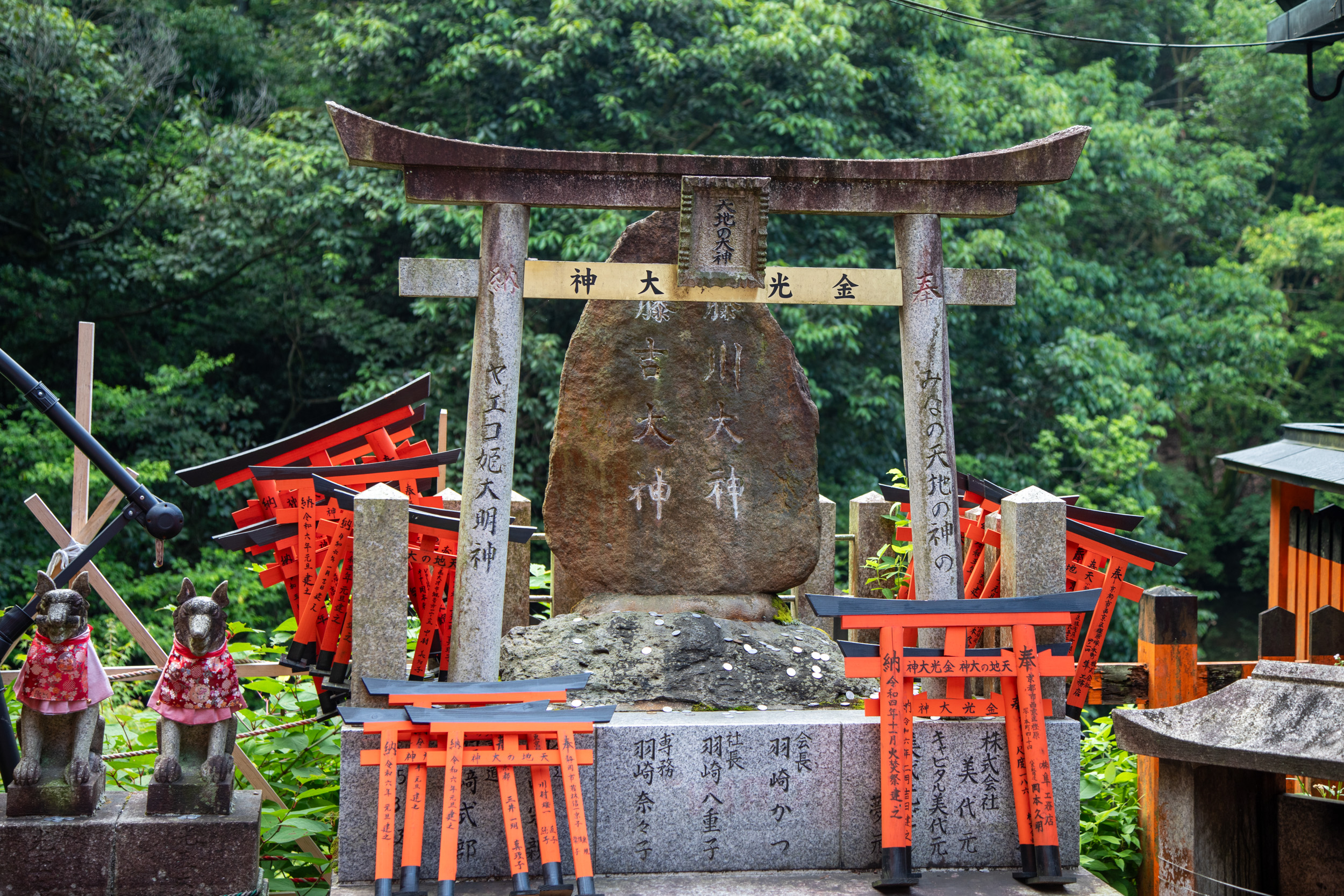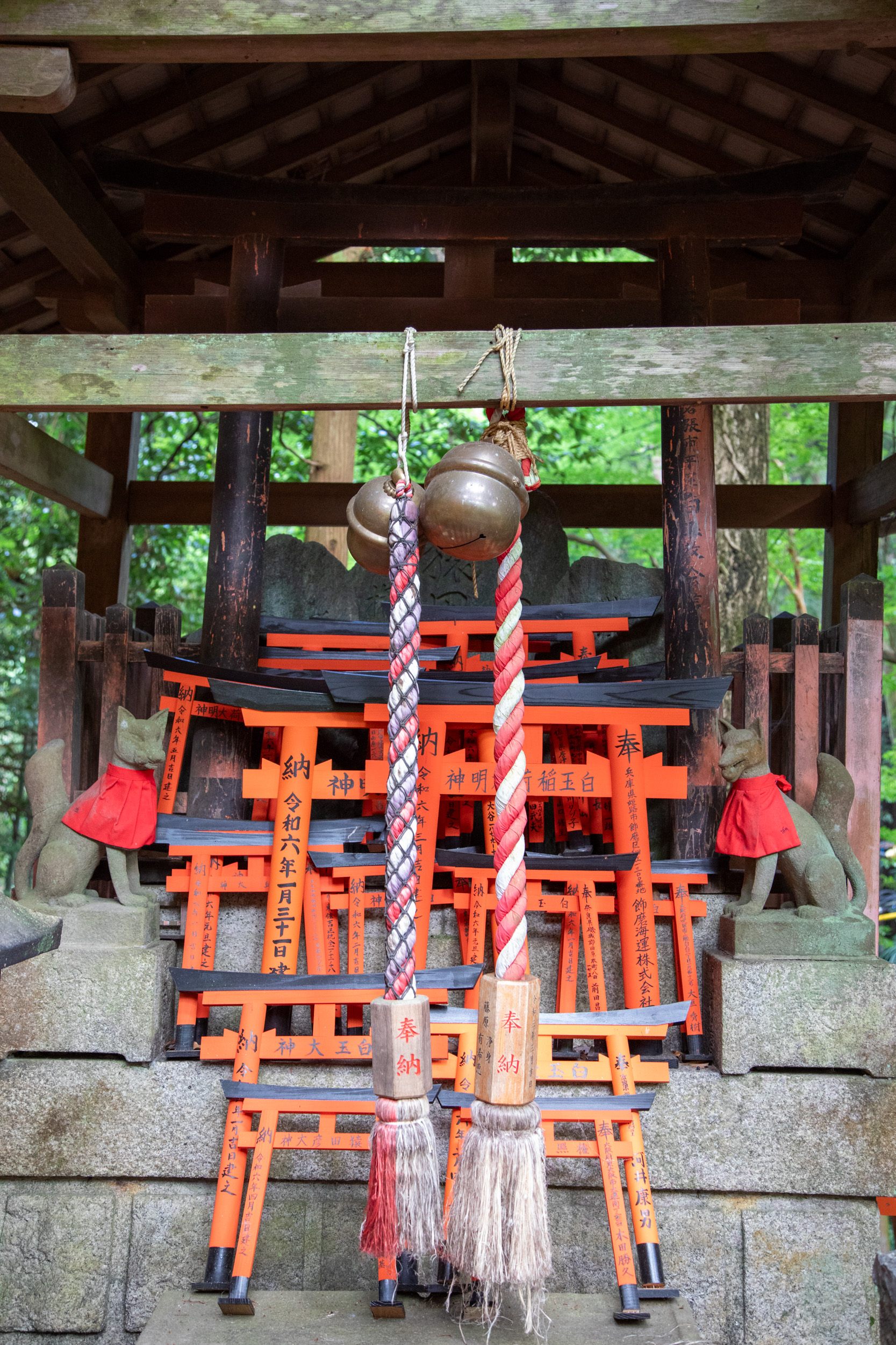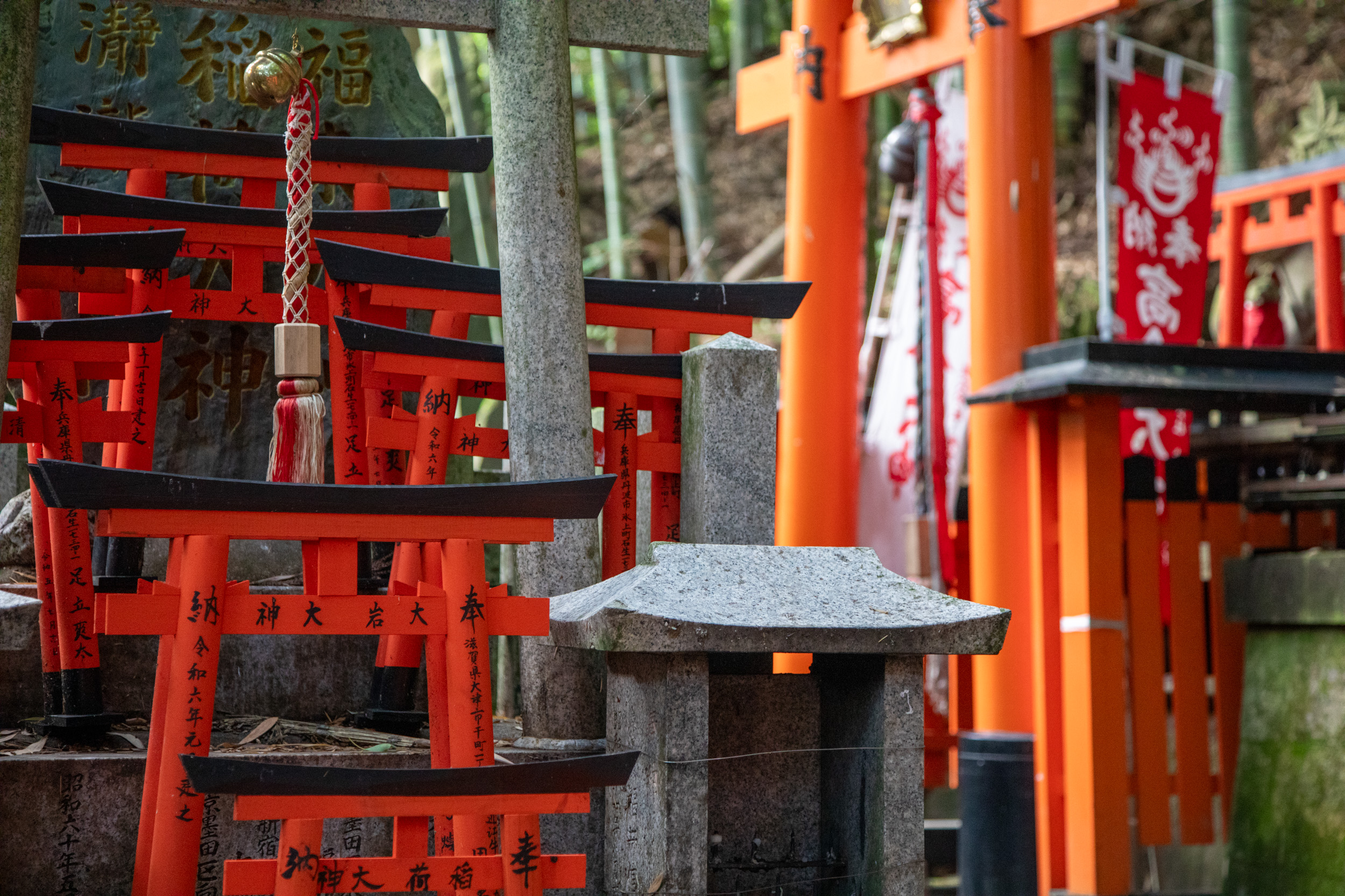 Encore une nouvelle série de toris au milieu de la végétation, il y a des panneaux qui mettent en garde contre la présence de sangliers et de singes dans le coin.