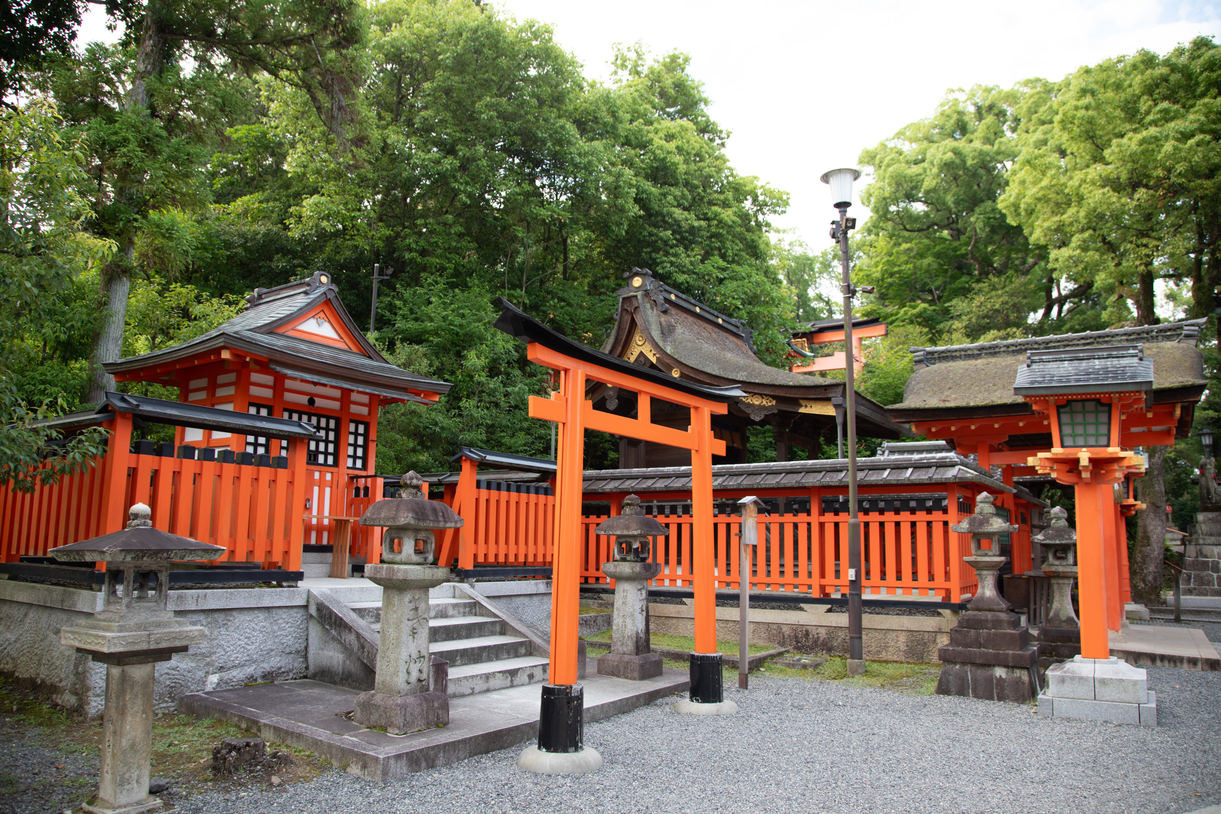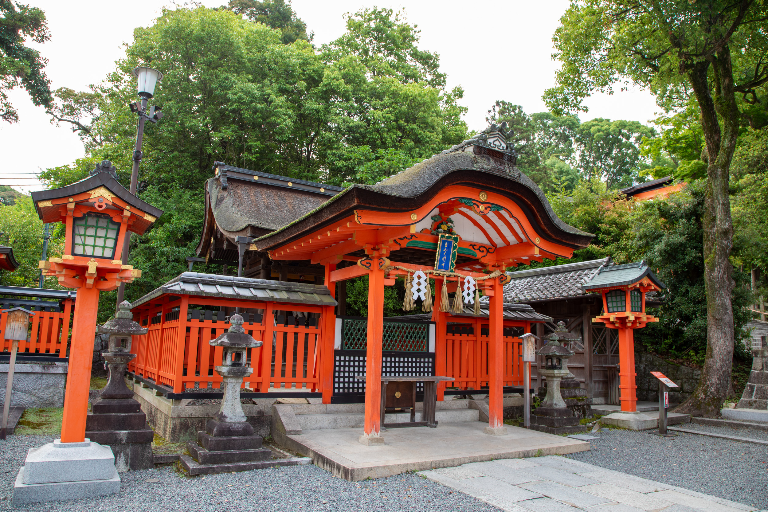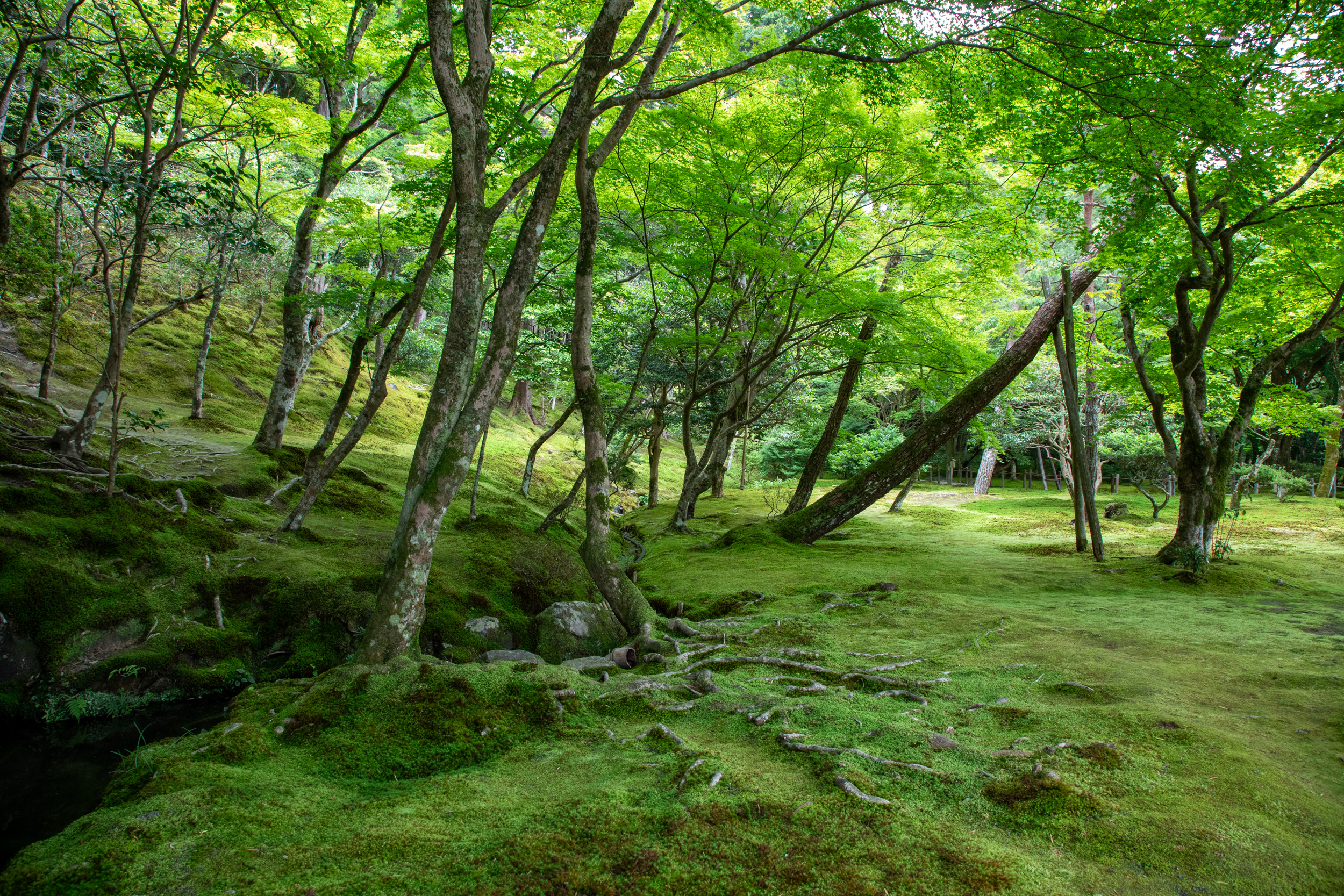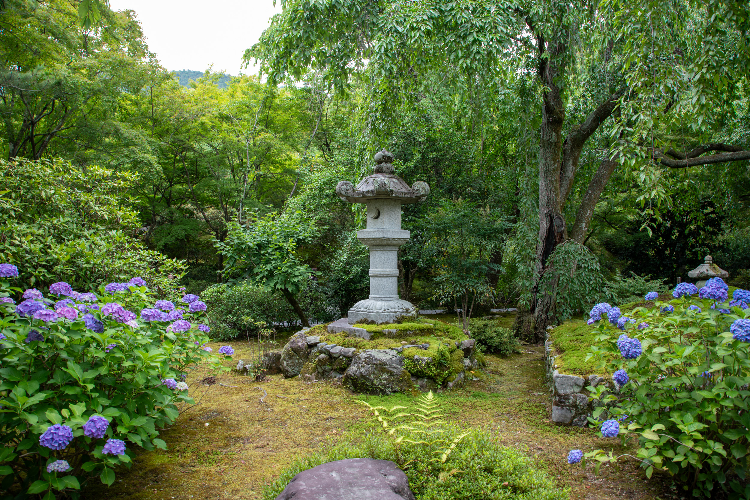 La mousse recouvre les lanternes de pierre