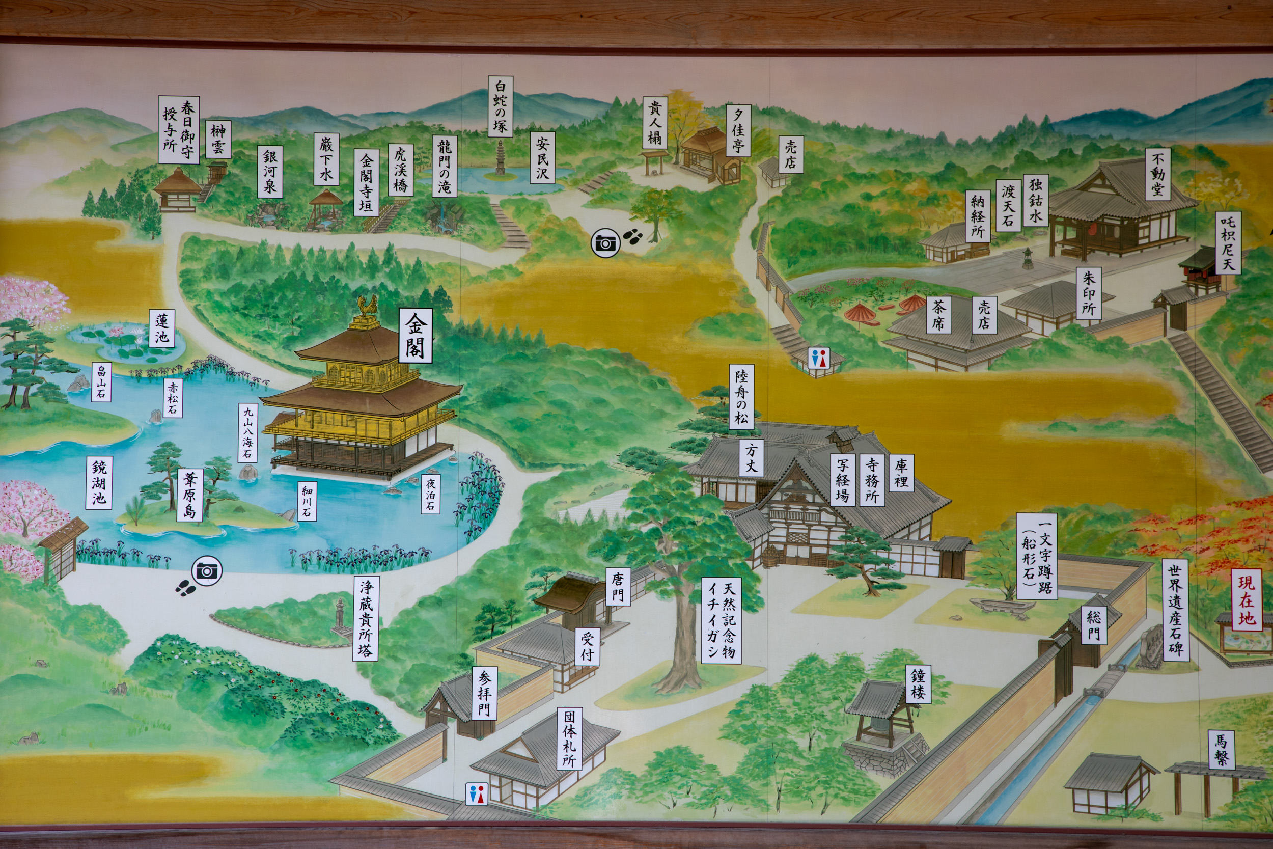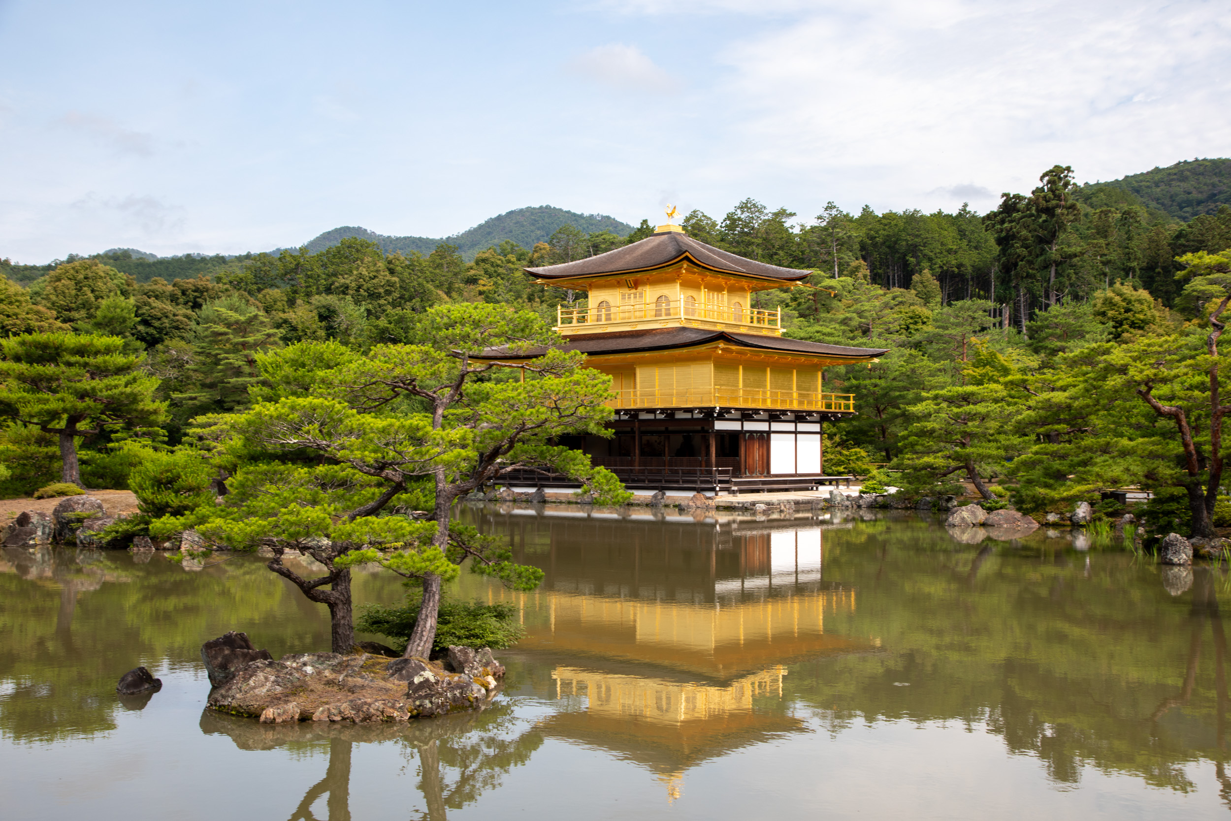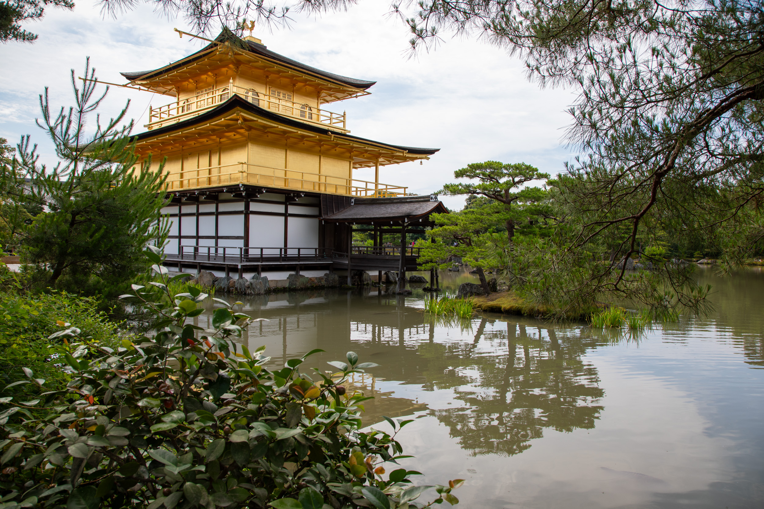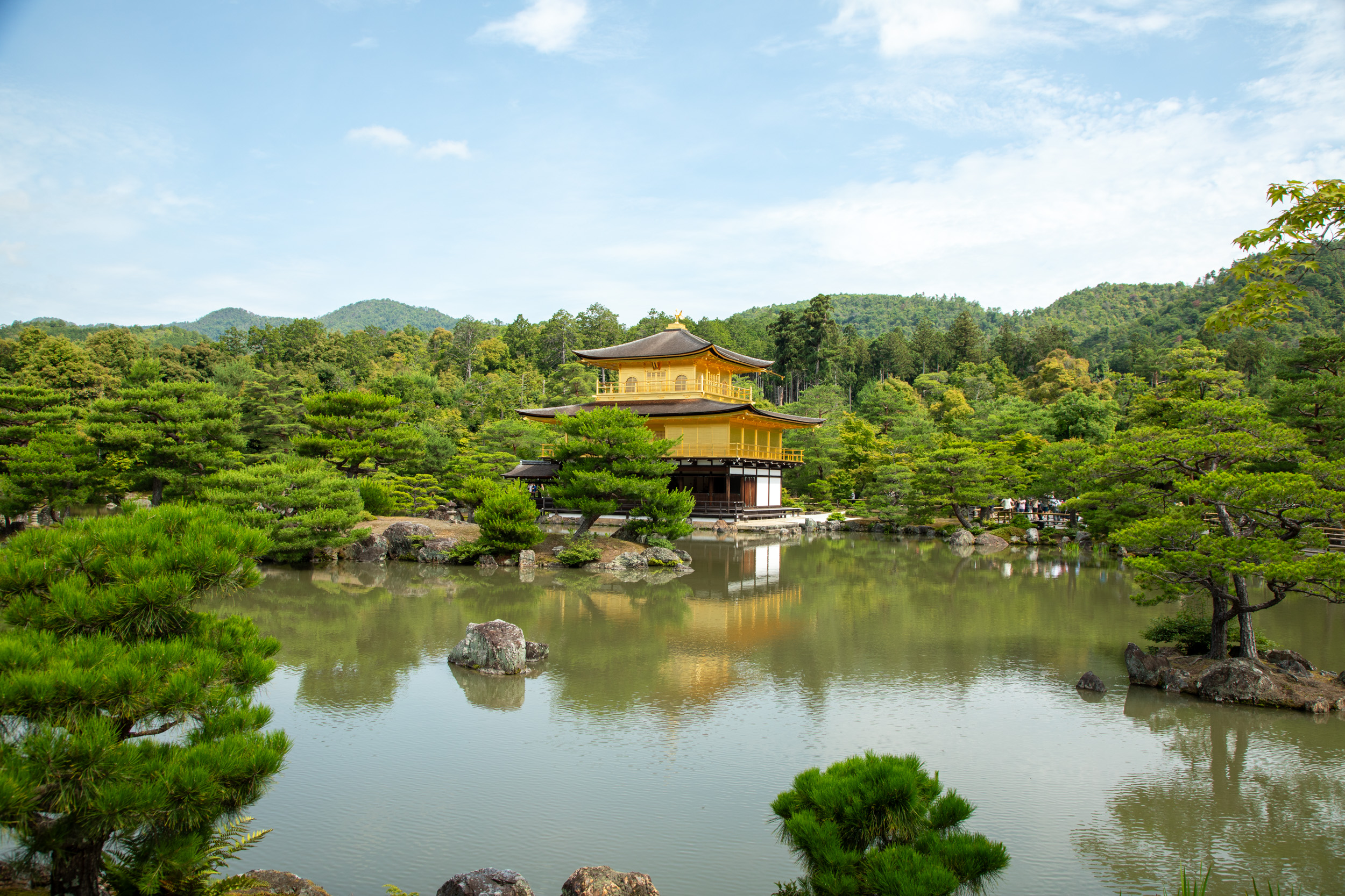À 9 heures pile, le gardien ouvre les portes et après la caisse, on se retrouve face à un plan d’eau magnifiquement arboré, et en face, ce temple à l’architecture traditionnelle recouvert d’or. Il n’y a pas encore beaucoup de monde mais quelques minutes après c’est déjà une autre histoire. On est content d’avoir eu le droit à ces instants de quiétude face à cette vue magnifique, on ressent a quel point ce paysage a été travaillé et façonné dans une idée de perfection.