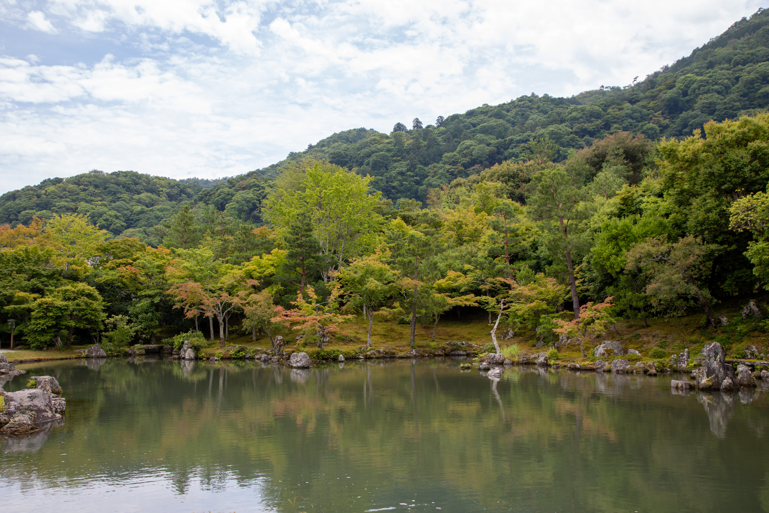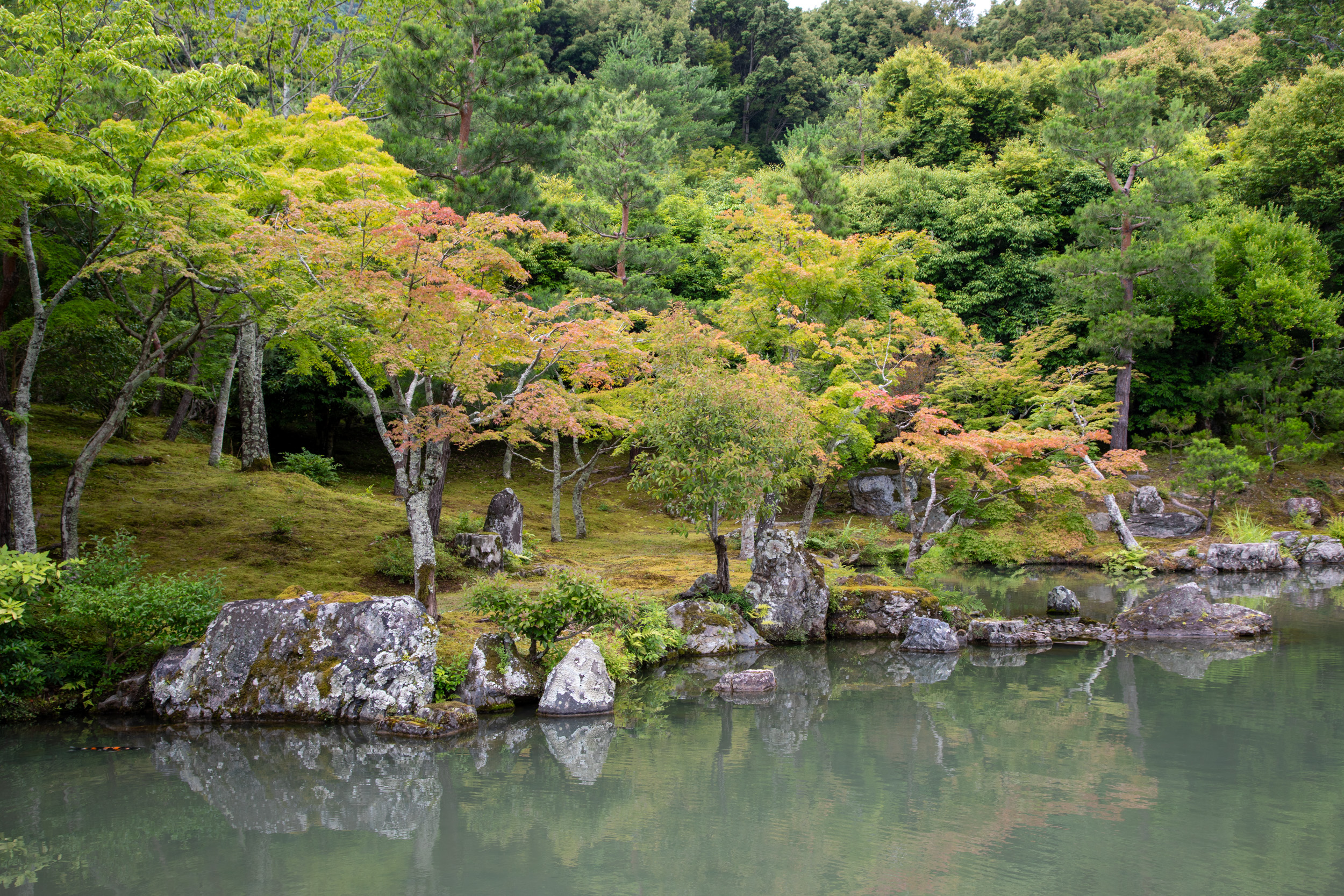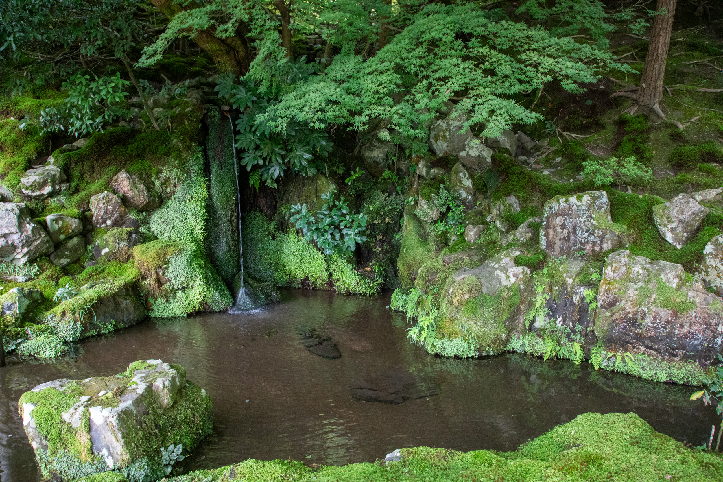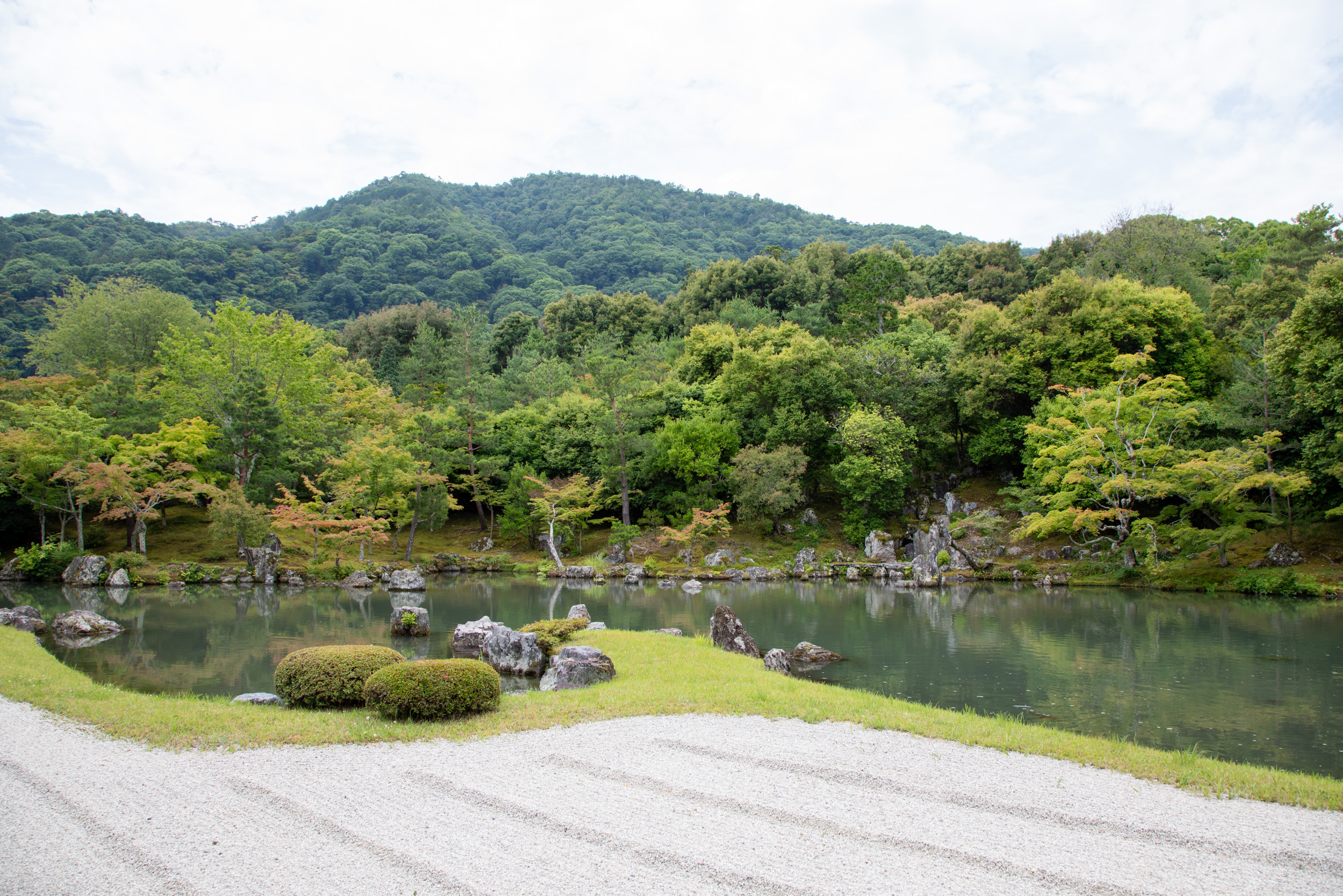 Il y a un joli plan d’eau qui vient ajouter une réflexion au jardin, cela face a la salle principale du temple ou de nombreuses personnes sont assises et contemplent la vue.