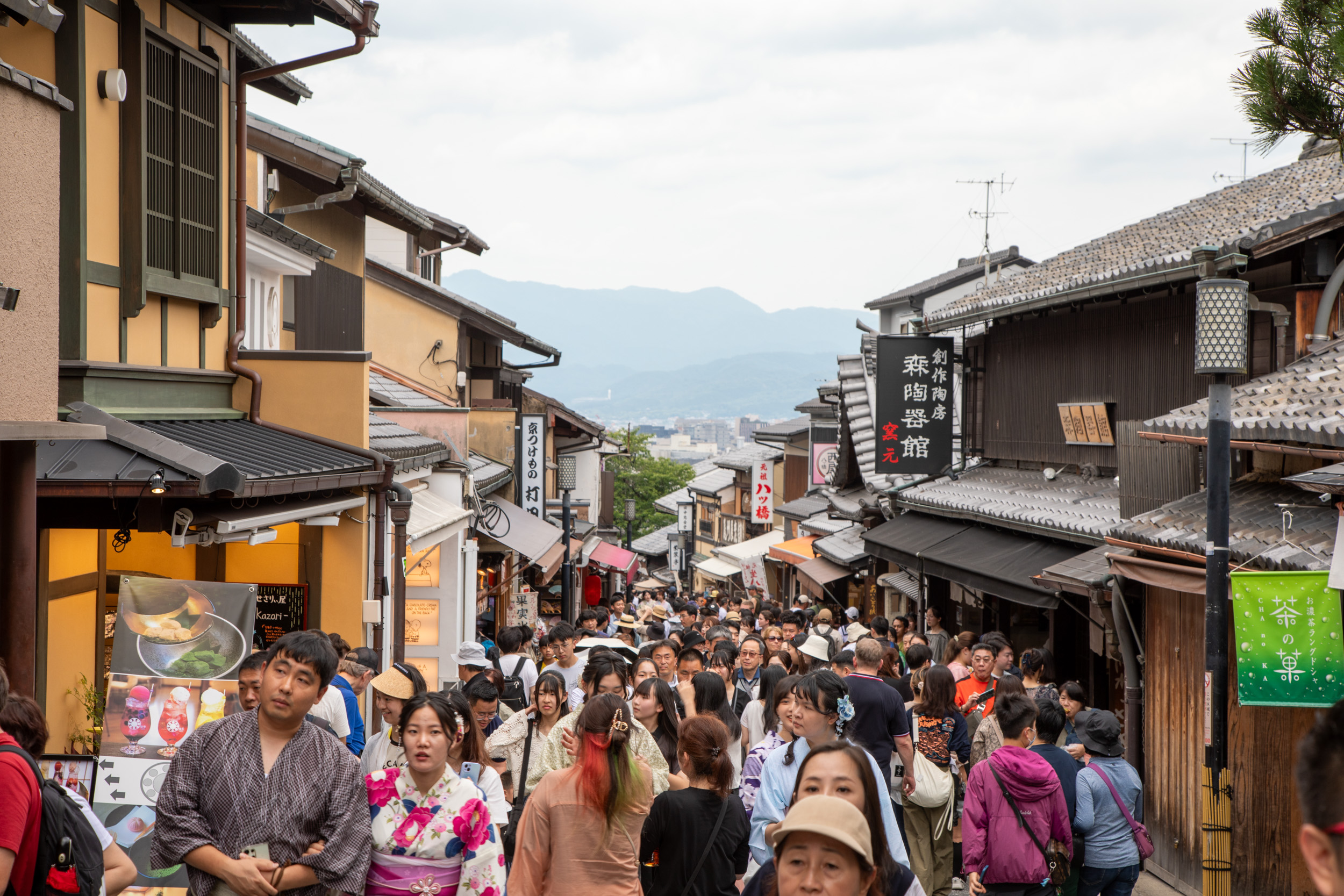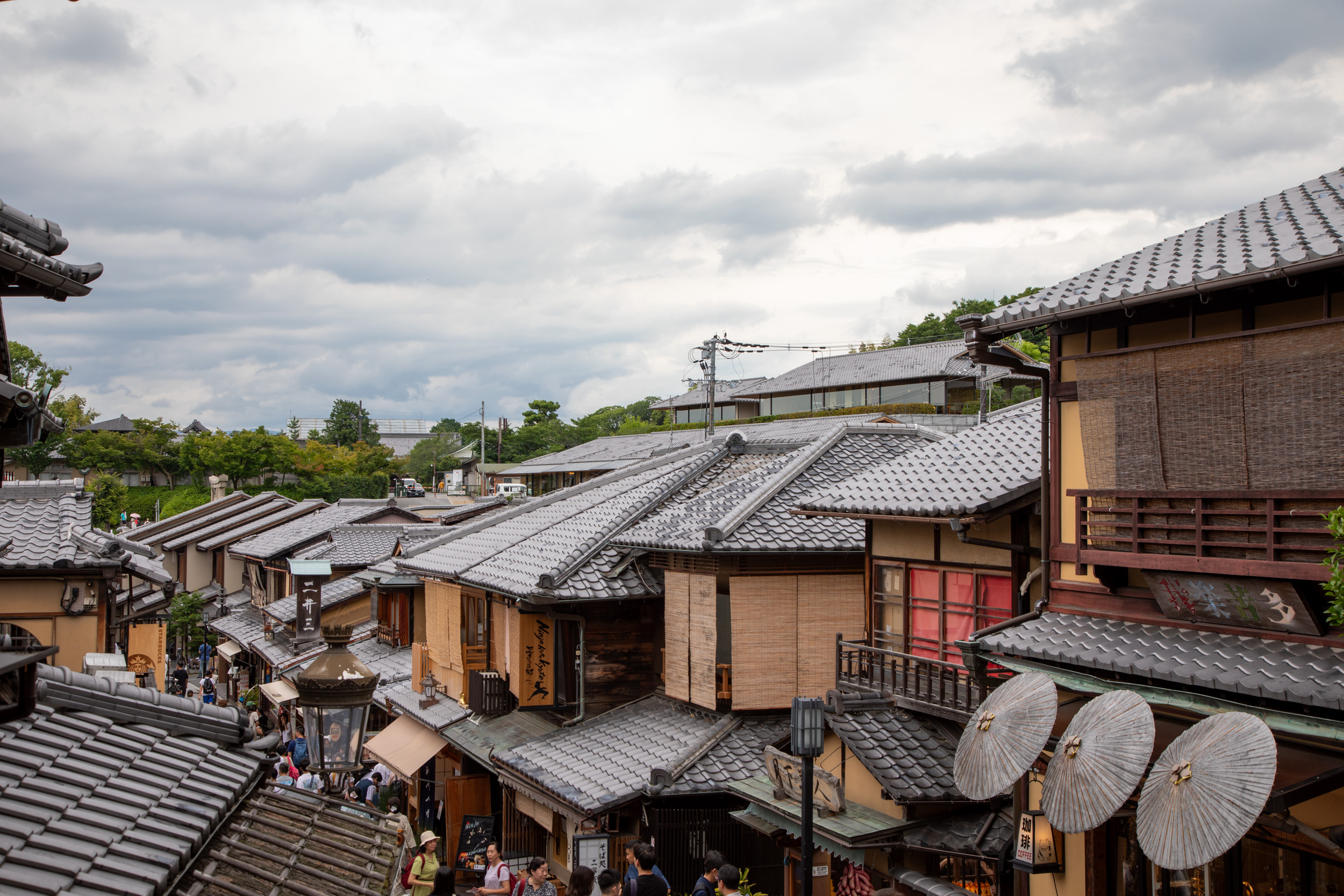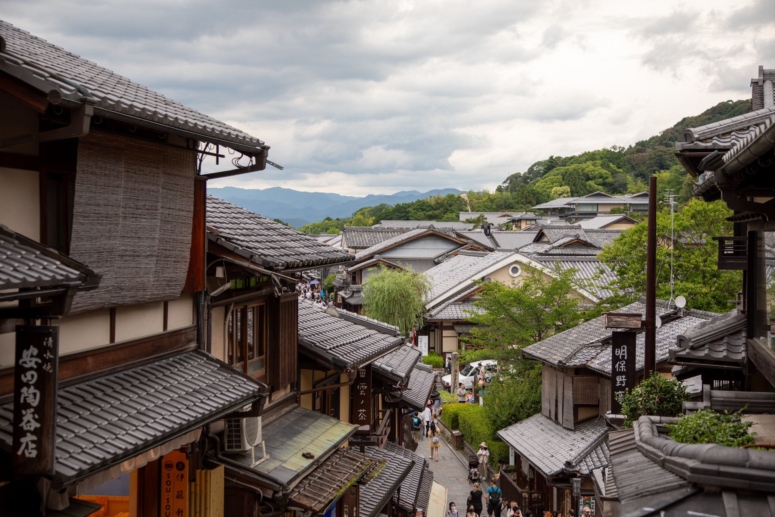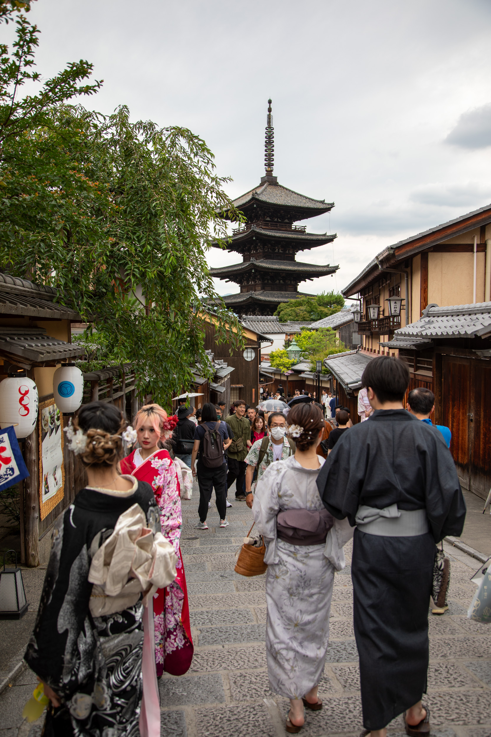 On grimpe les ruelles jusqu’à la rue de Sannenzaka qui donne un point de vue unique sur la pagode en bois qui semble trôner au milieu de la ville.