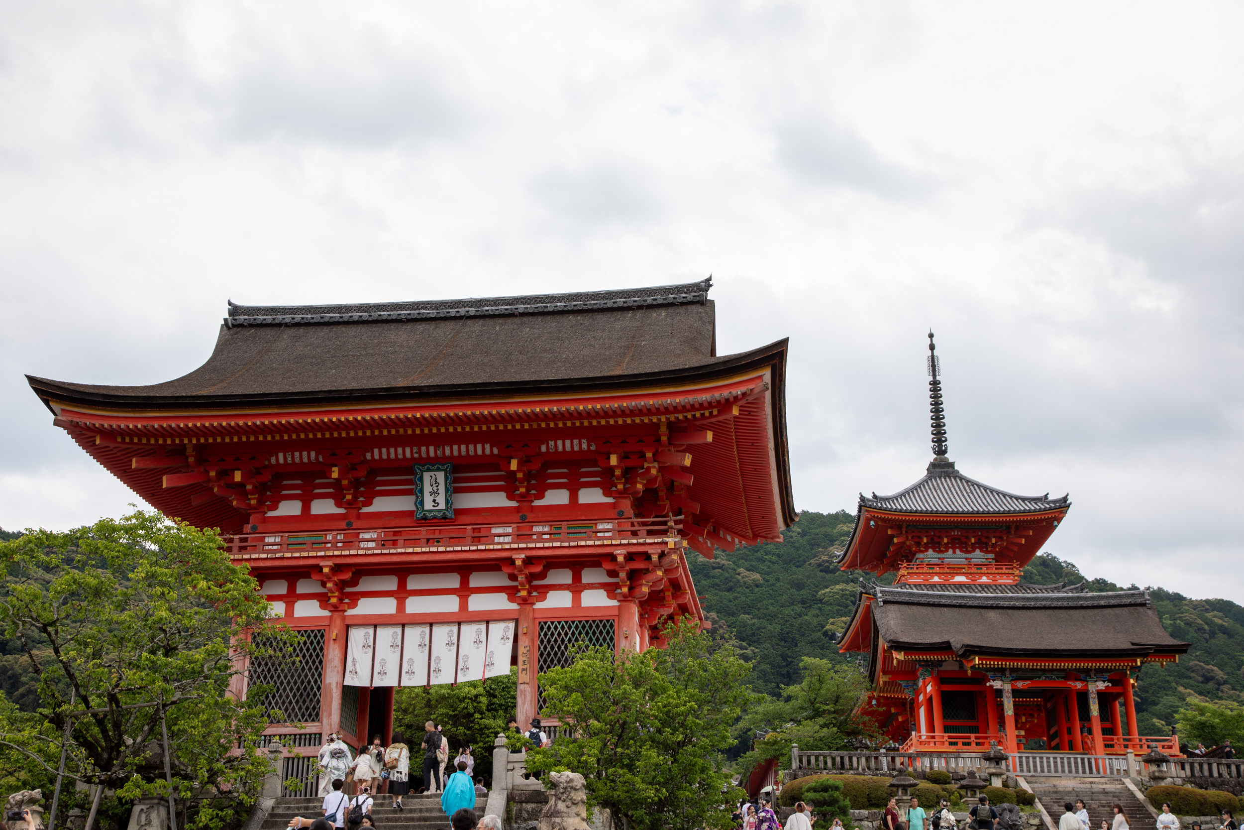 Avec ces quatre sites, on a pu passer une journée intense mais complète. Situé en hauteur de la vieille de Kyoto, le temple de Kiyomizu est tout simplement envoûtant et grandiose. Le taxi nous dépose au pieds du vieux quartier qui est piéton, il y a un monde de fou !