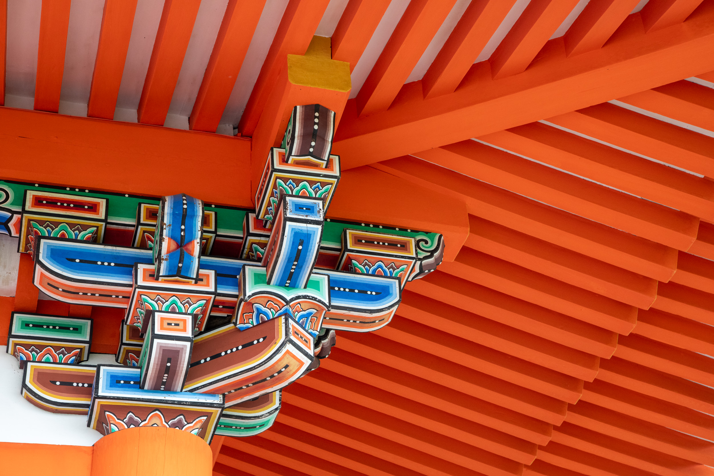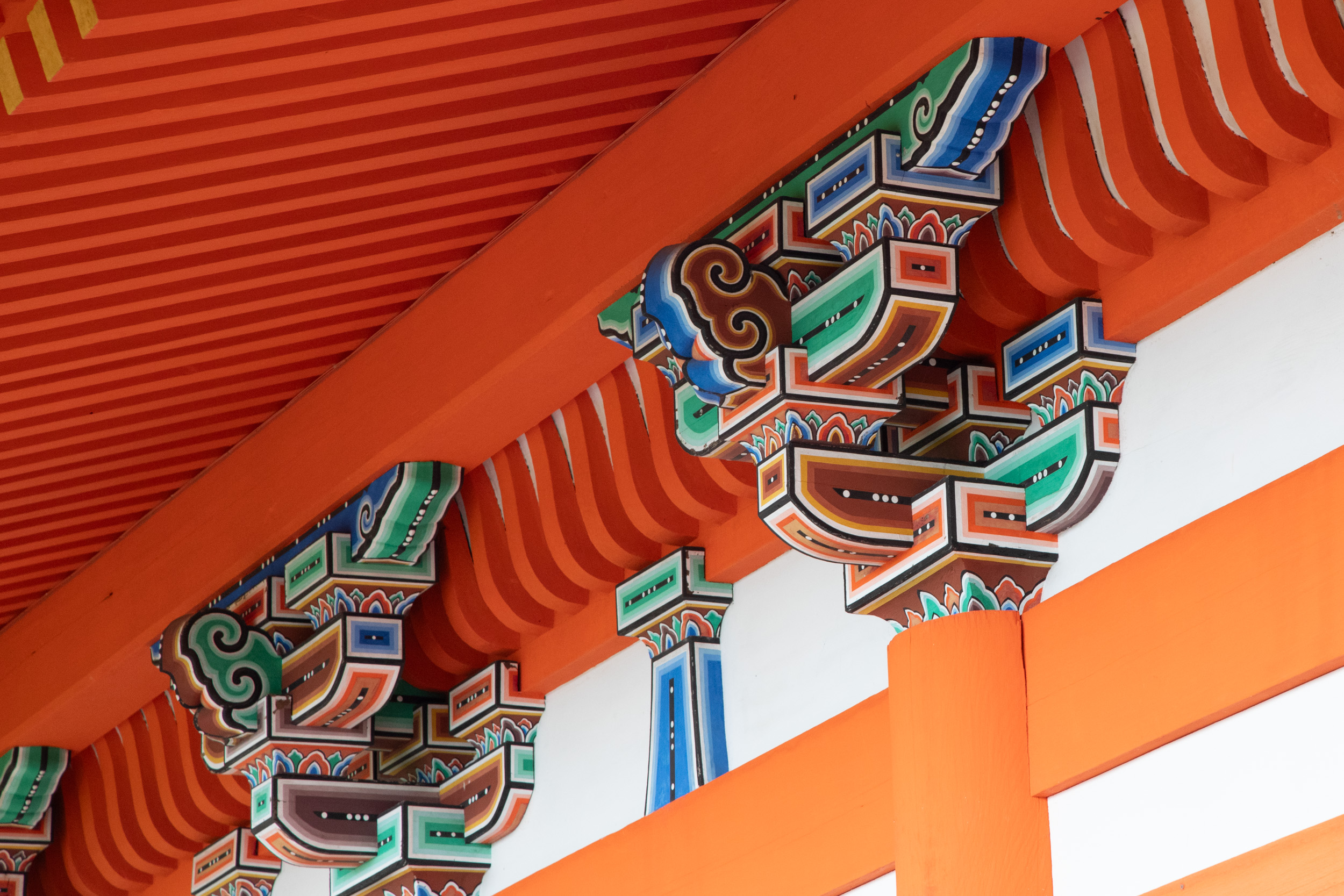 Après s’être frayé un chemin é dans les ruelles de la vieille ville bordées de maisons en bois, on arrive dans ce complexe religieux aux bâtiments peints en rouges.