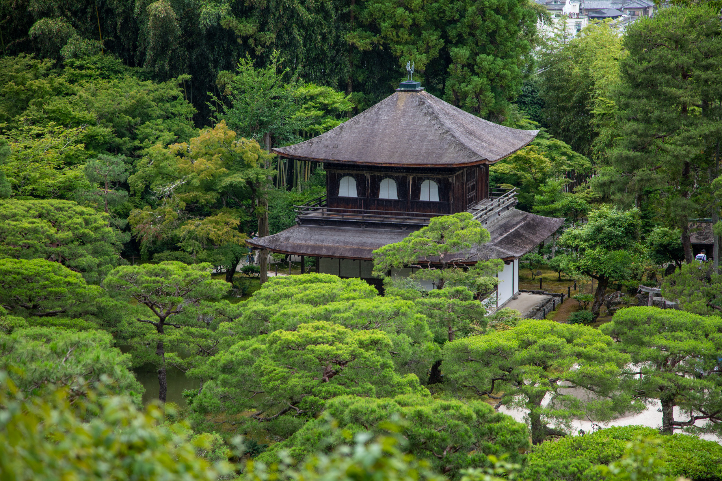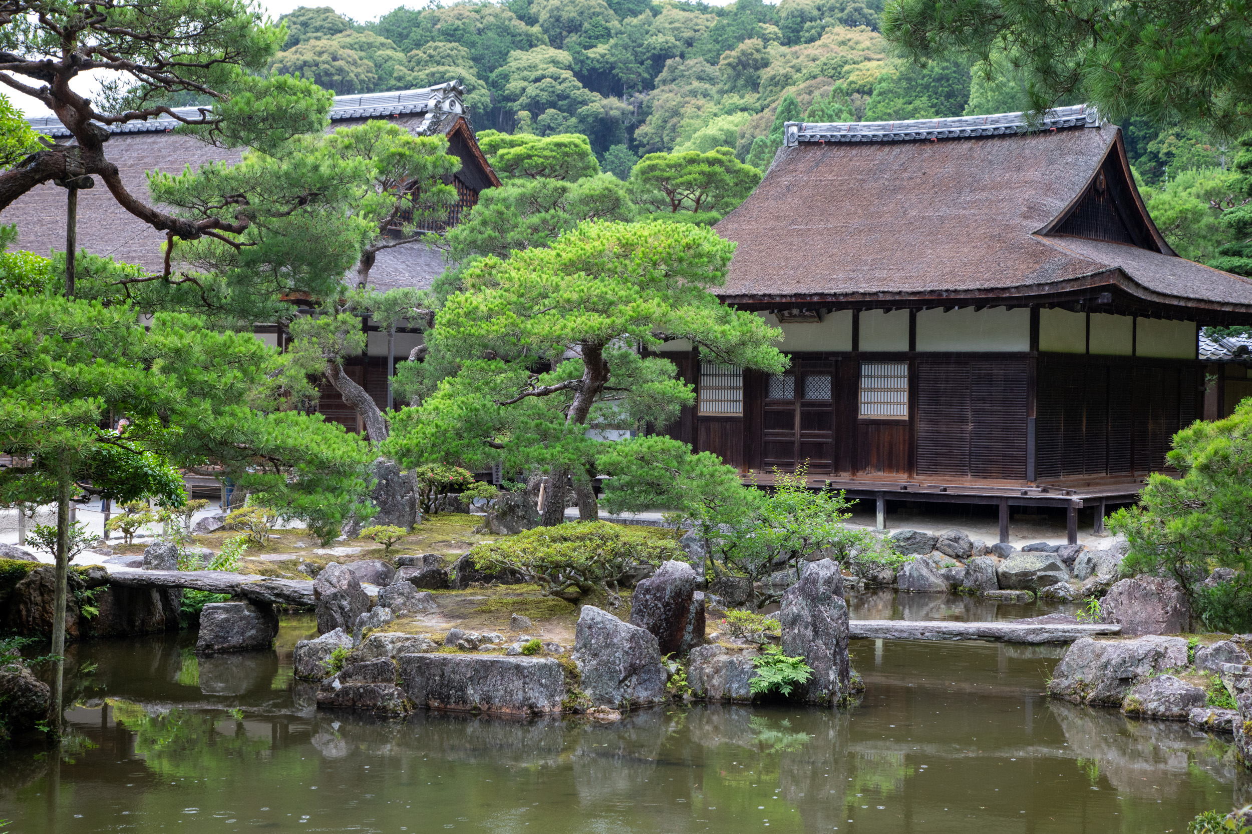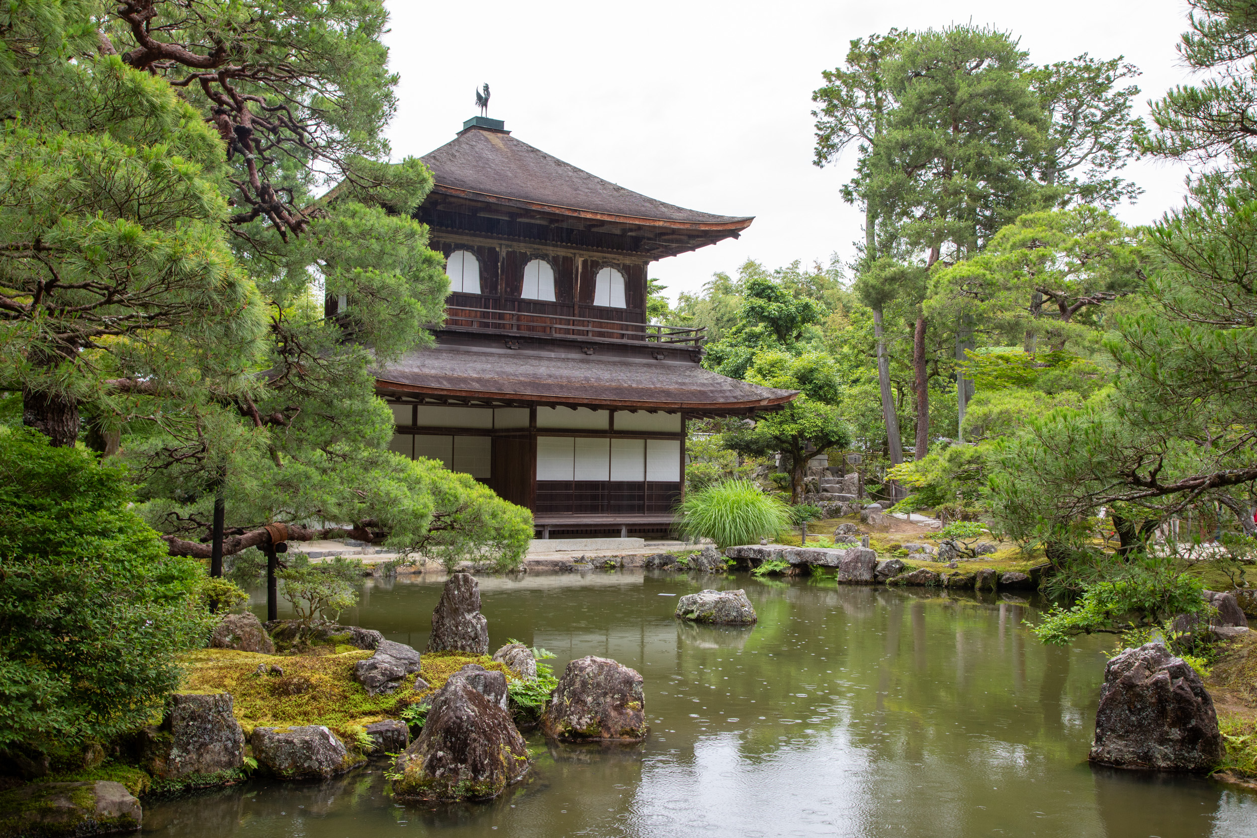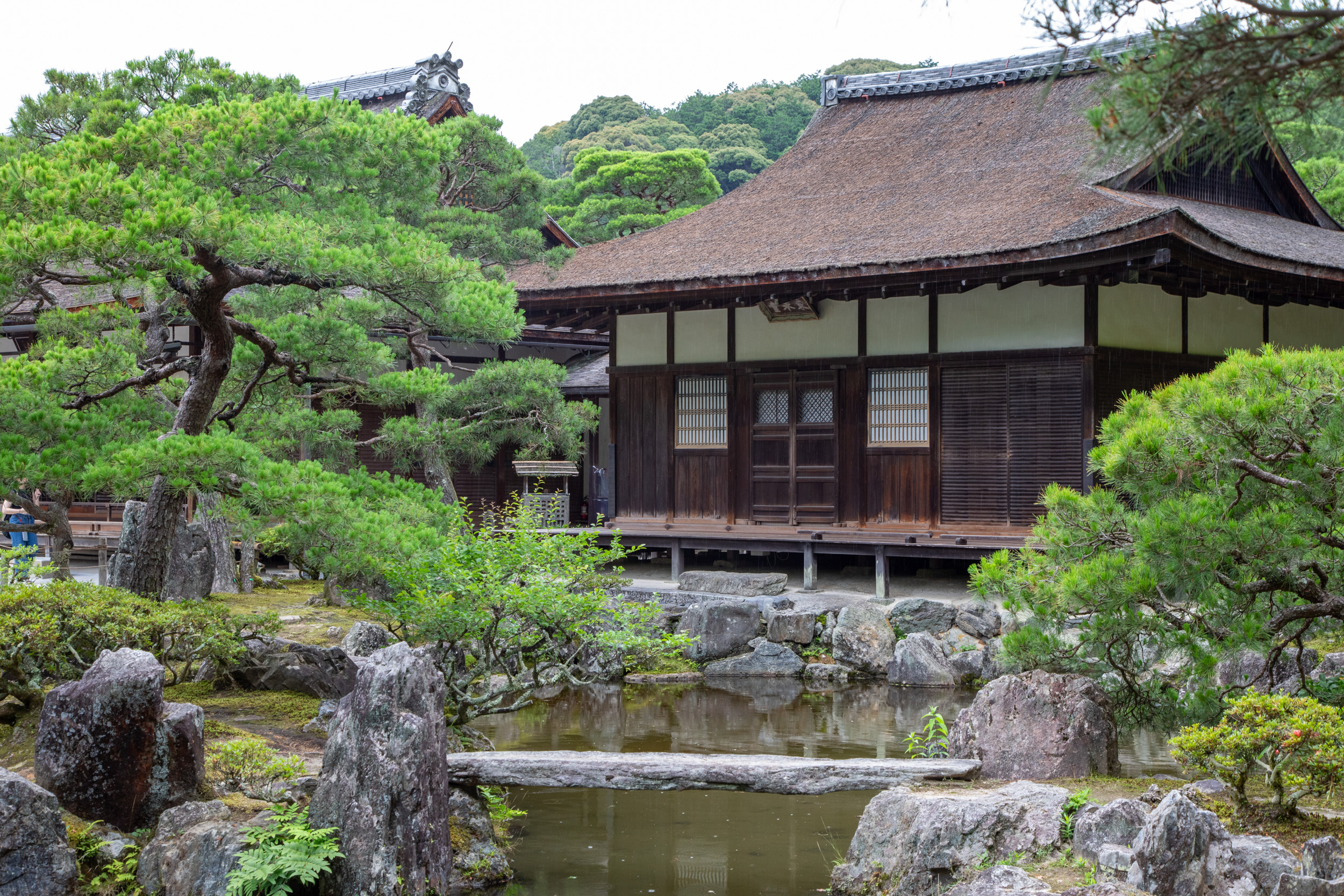 La pluie commence à tomber de plus en plus. Il faut dire qu’en Juin, la saison des pluie commence à être plus intense et c’est normal qu’il pleuve. Alors que le début de la visite du temple d’argent se faisait sous une légère bruine qui donnait un aspect mystique au lieu et me rafraichissait après les fortes chaleurs de la matinée, c’est beaucoup moins agréable avec les grosses gouttes.