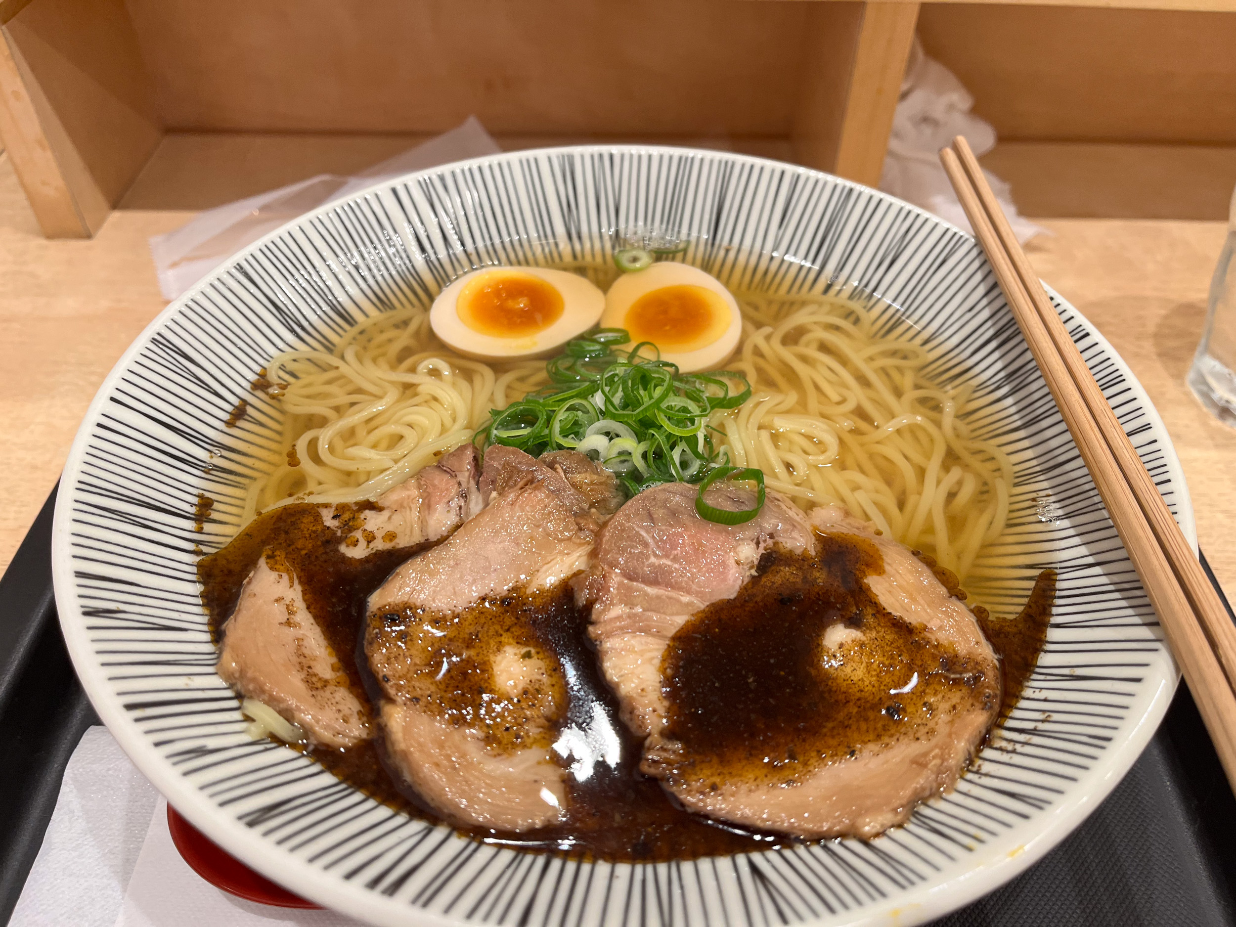 Je me dépêche de prendre un taxi qui attend à la sortie de la rue piétonne. Étant donné que la pluie est censée durer, je pars rejoindre la petite boutique de vente de kimono Ochikochiya que j’avais repéré. On entre dans une petite boutique qui ne paye pas de mine, il faut enlever les chaussures à l’entrée puis une vieille dame vient nous accueillir, elle ne parle pas beaucoup anglais mais on arrive à se faire comprendre. Il y a plusieurs types de kimono en vente, parmi elles il y a des pièces vintage, de type casual ou formal. En soie ou en coton, les prix sont très abordables, c’est même surprenant car j’ai l’habitude des prix chinois pour les tenues traditionnelles, ça peut valoir une fortune, ici les plus belles pièces sont dans l’ordre de la centaine d’euro en comptant les accessoires. Nous choisirons deux kimono de soie de type traditionnel, c’est sans doute les plus beaux mais aussi les plus chers de la boutique. Ils sont très détaillés avec de très beaux motifs et des belles couleurs. On recommande vraiment cette boutique de Kimono, c’est vraiment une très belle occasion pour acheter un souvenir de qualité. Le plus amusant reste le temps qu’il faudra à la dame pour plier et emballer les kimonos, elle fait cela avec une telle minutie avec des gestes lents et précis. Cela va presque nous faire mal au cœur de devoir déballer. Il est maintenant tard et la pluie ne faiblit pas, on décide de rentrer à Kyoto station pour dîner avant de retourner à l’hôtel et conclure cet court séjour dans la plus belle ville du Japon. Un plat de ramens simple fera bien l’affaire. Une fois encore, on est choqué par le gout des ramens dans ce restaurant quelconque !