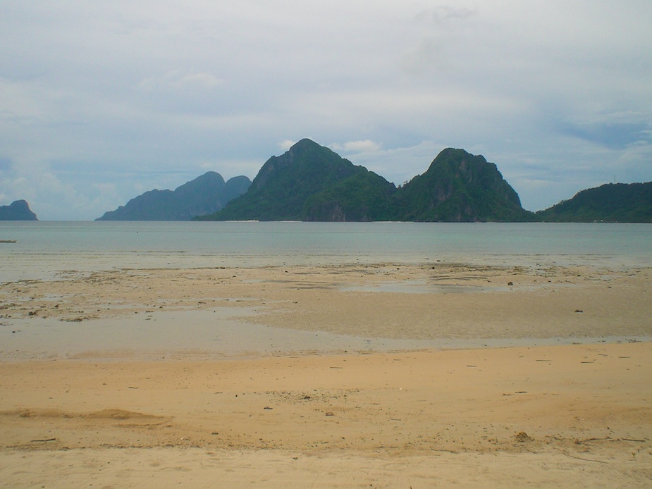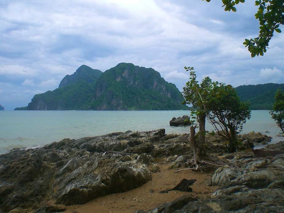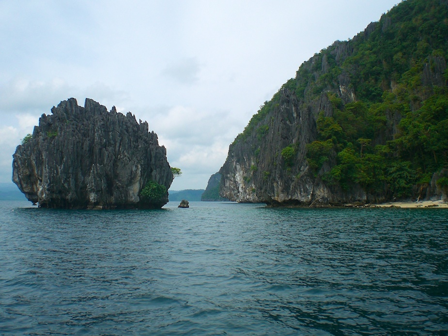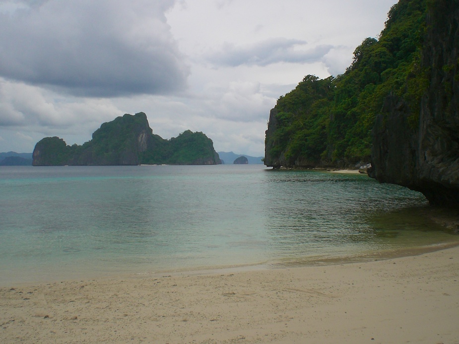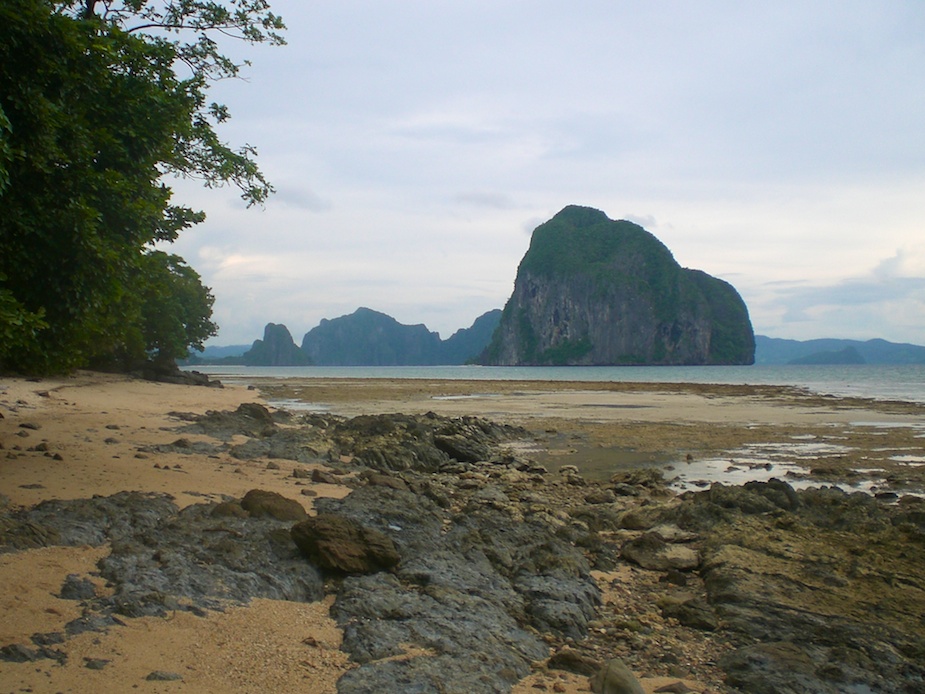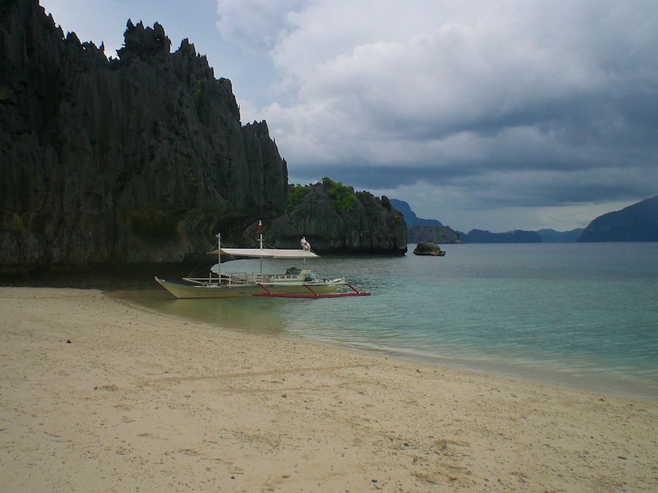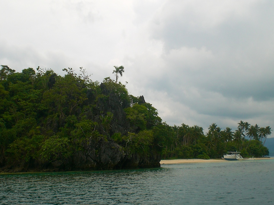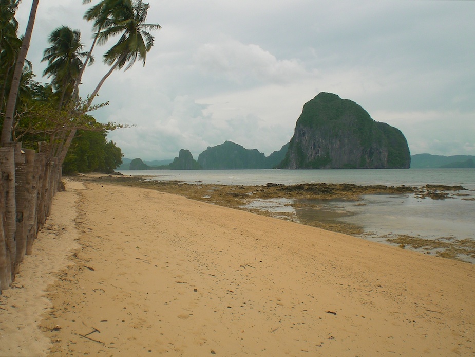 Lors de cette deuxième journée d'excursion, nous prenons un bateau pour les sites les plus emblématiques de la baie d'El Nido, des montagnes de karst et une mer bleue turquoise sont au programme mais aussi un repas sur la plage d'une île presque déserte. On est seulement dérangé par un très gros varan habitué d'obtenir les carasses de poulet que les visiteurs lui accorde.