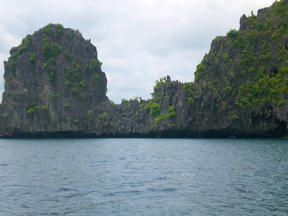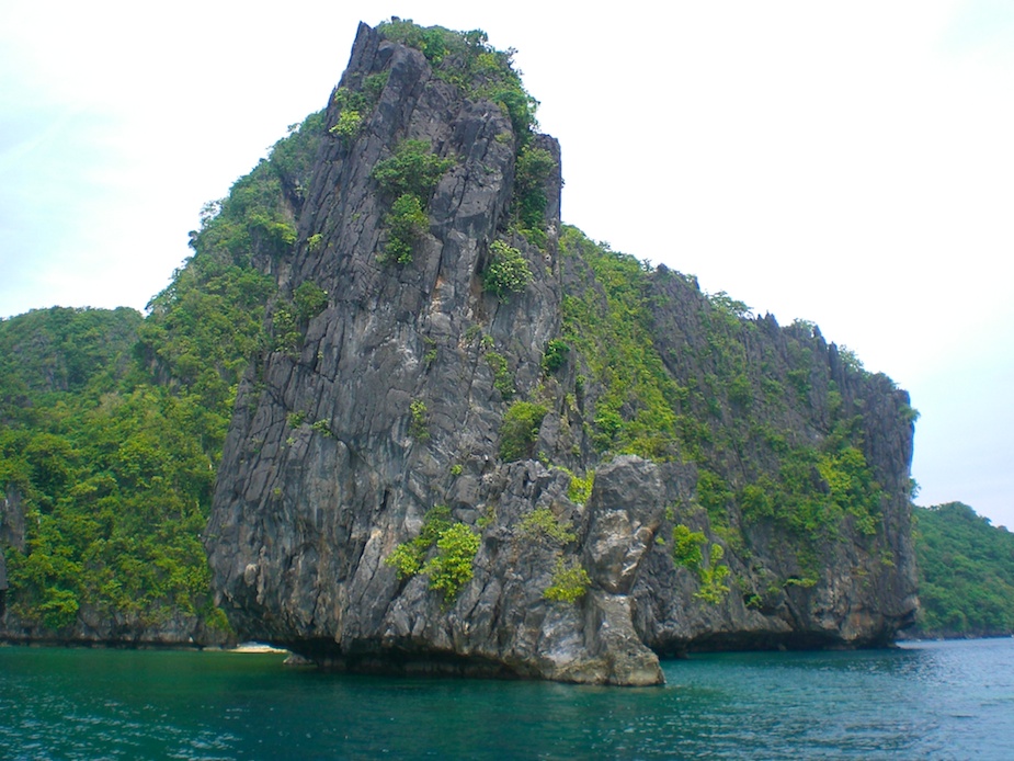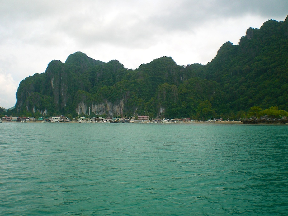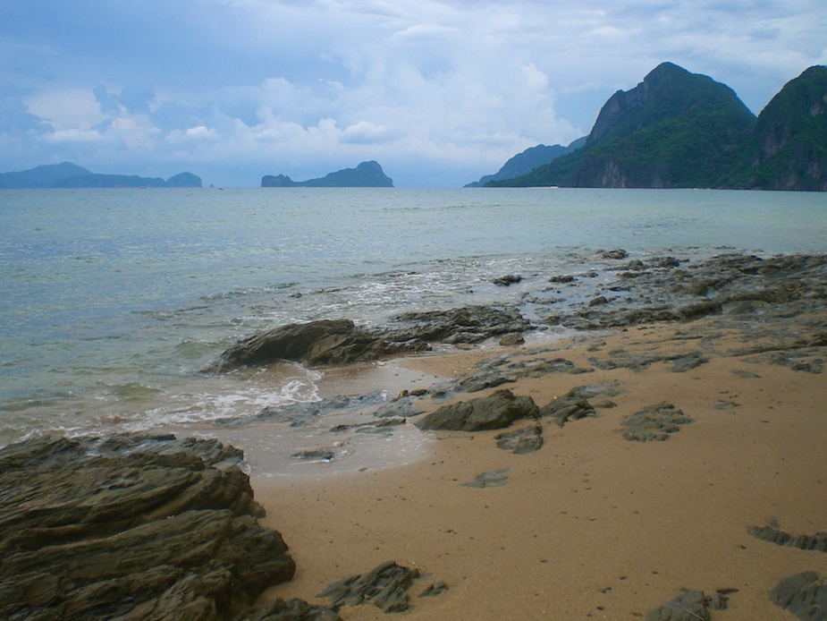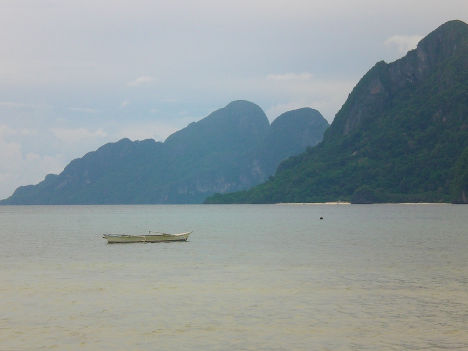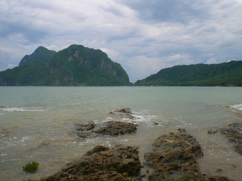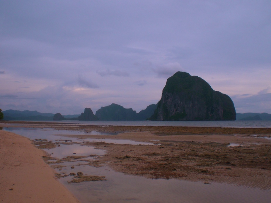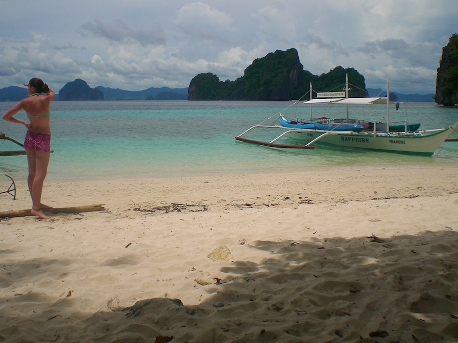 Lors de cette deuxième journée d'excursion, nous prenons un bateau pour les sites les plus emblématiques de la baie d'El Nido, des montagnes de karst et une mer bleue turquoise sont au programme mais aussi un repas sur la plage d'une île presque déserte. On est seulement dérangé par un très gros varan habitué d'obtenir les carasses de poulet que les visiteurs lui accorde.