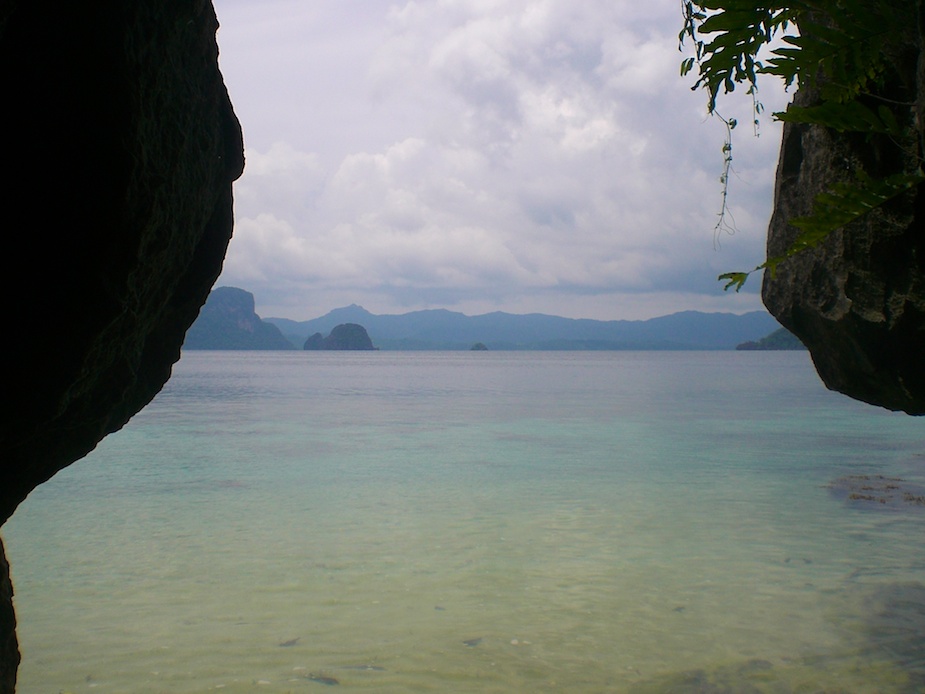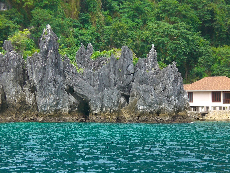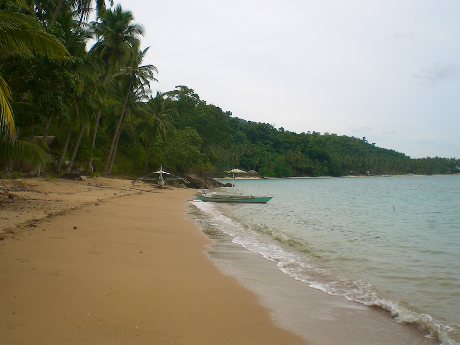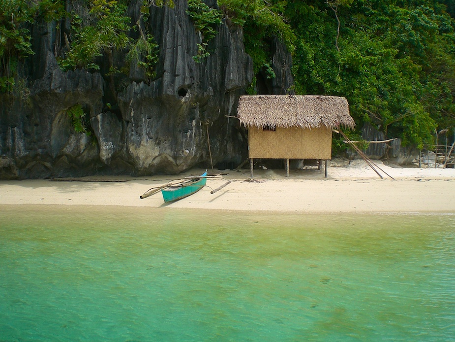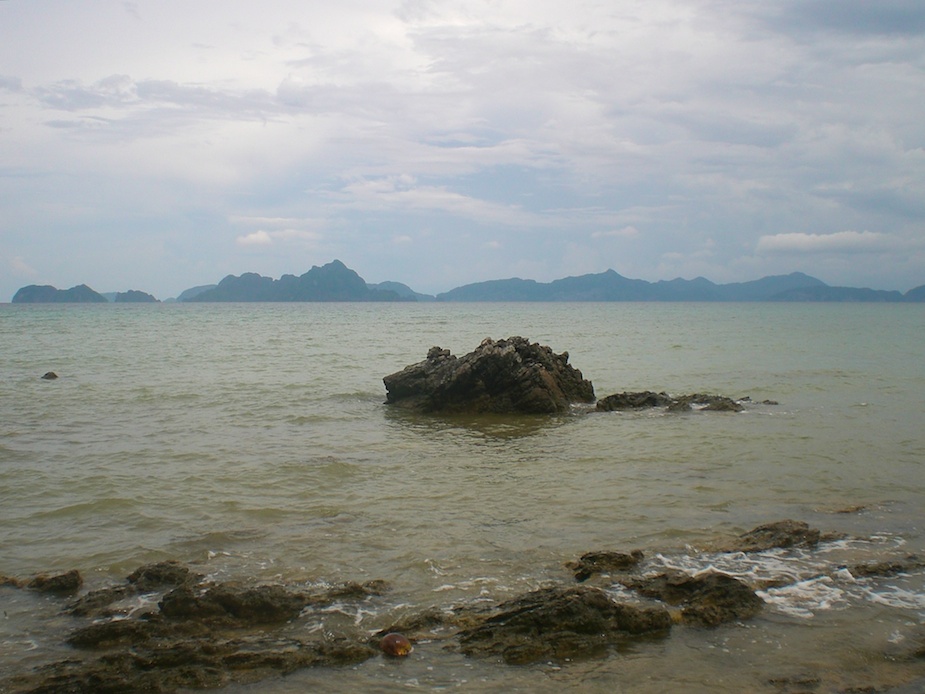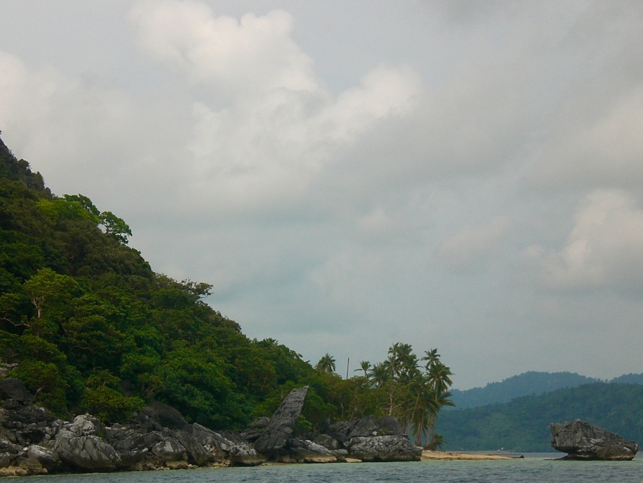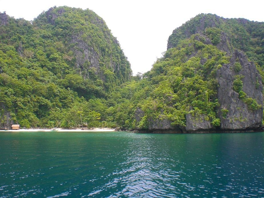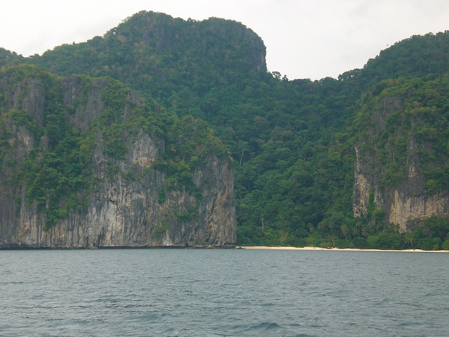 Lors de cette deuxième journée d'excursion, nous prenons un bateau pour les sites les plus emblématiques de la baie d'El Nido, des montagnes de karst et une mer bleue turquoise sont au programme mais aussi un repas sur la plage d'une île presque déserte. On est seulement dérangé par un très gros varan habitué d'obtenir les carasses de poulet que les visiteurs lui accorde.
