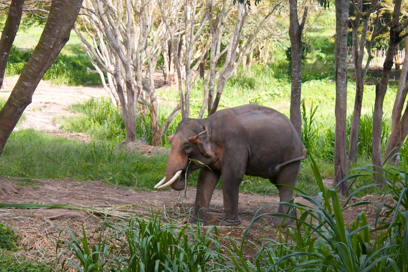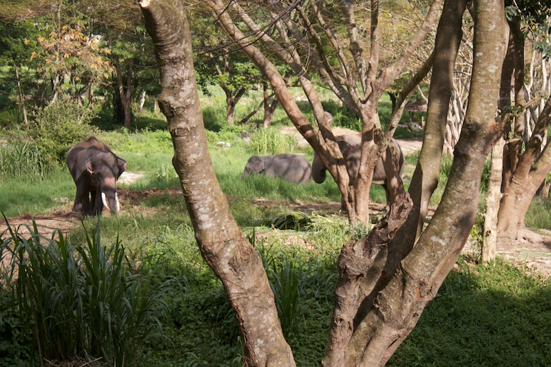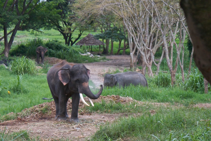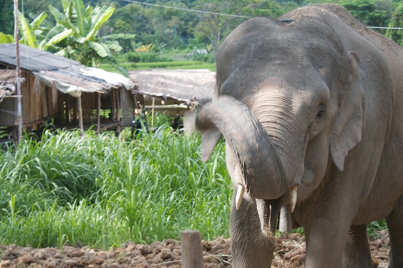 Les environs de Chiang Mai sont un paradis pour les amateurs de vacances nature. Nous louons des motos afin d’être plus libre et éviter les interminables négociations pour quelques bath avec les chauffeurs de tuk-tuk. Les routes de montagne s’offrent à nous, avec leurs lacets, leurs côtes, et la vue panoramique sur les vallées en contrebas. Le tour que nous effectuons est assez classique depuis et vers Chiang Mai. Mais nous avons la chance de croiser sur notre chemin, sous la route, un troupeau d’éléphants qui appartient à une ferme proche. Les pachydermes sont nourris avec des bambous, incroyable de voir à quelle vitesse ils font disparaître 3 grands pousses de bambous. Nous apercevrons aussi dans les environs de Chiang Mai une ferme à tigre, une ferme à serpent (avec une bonne dose d’adrénaline).