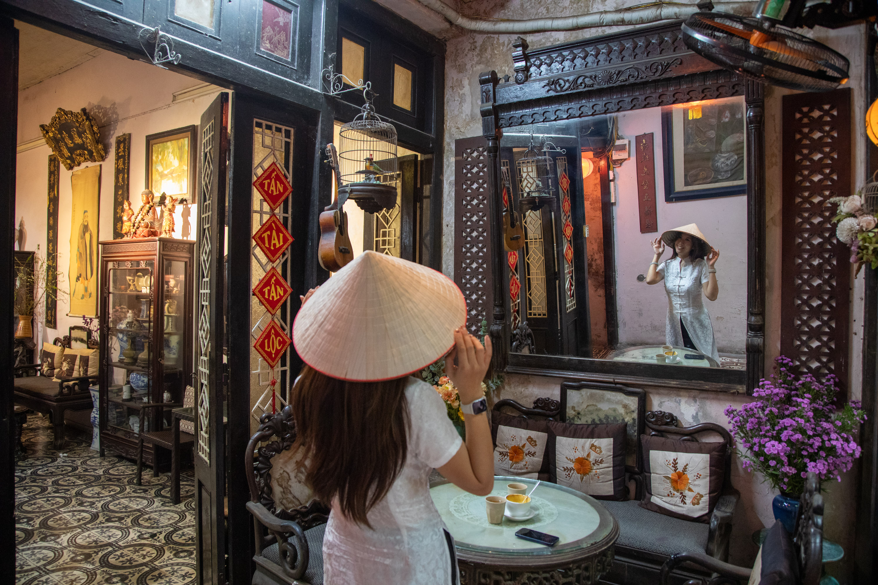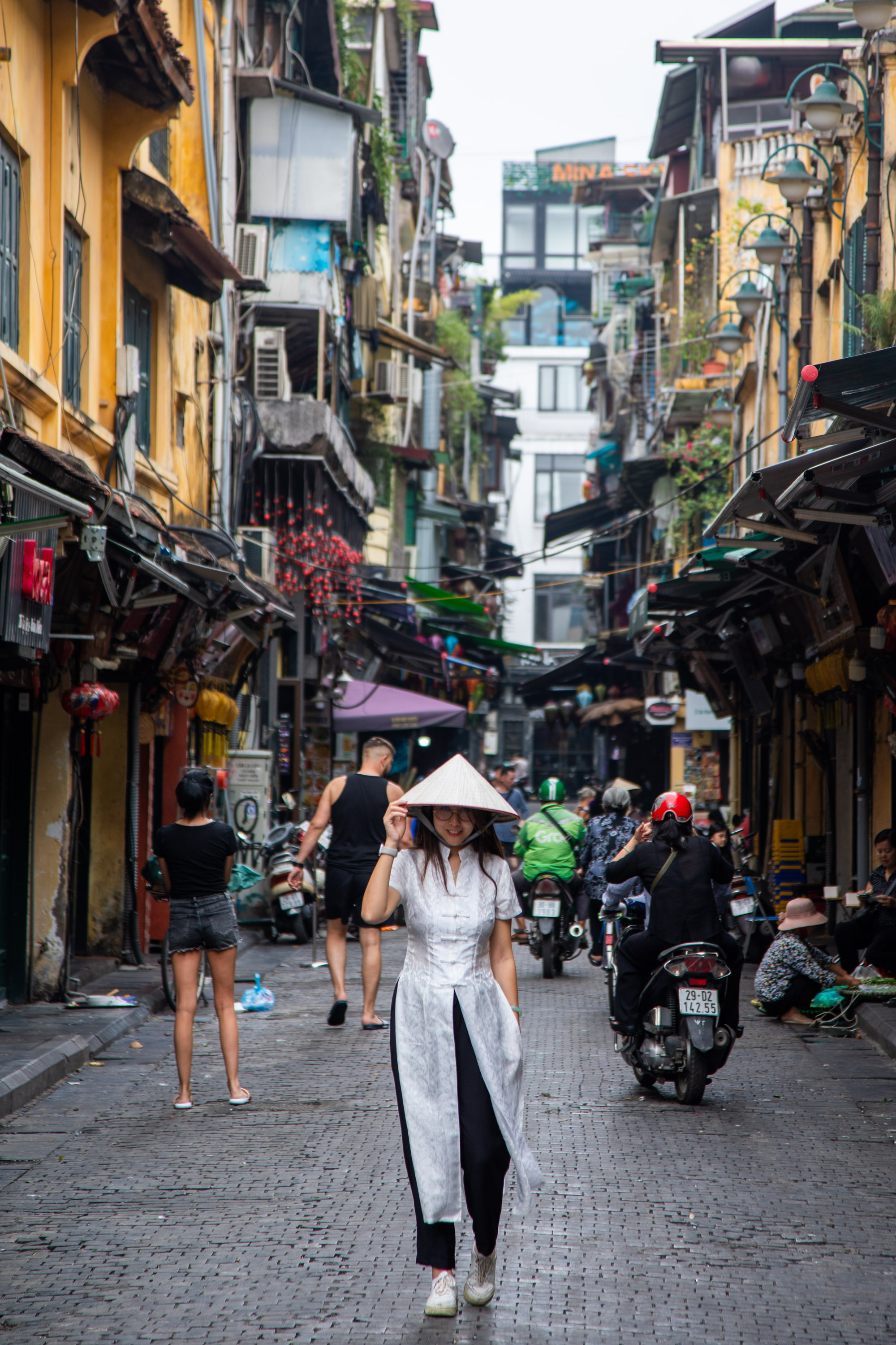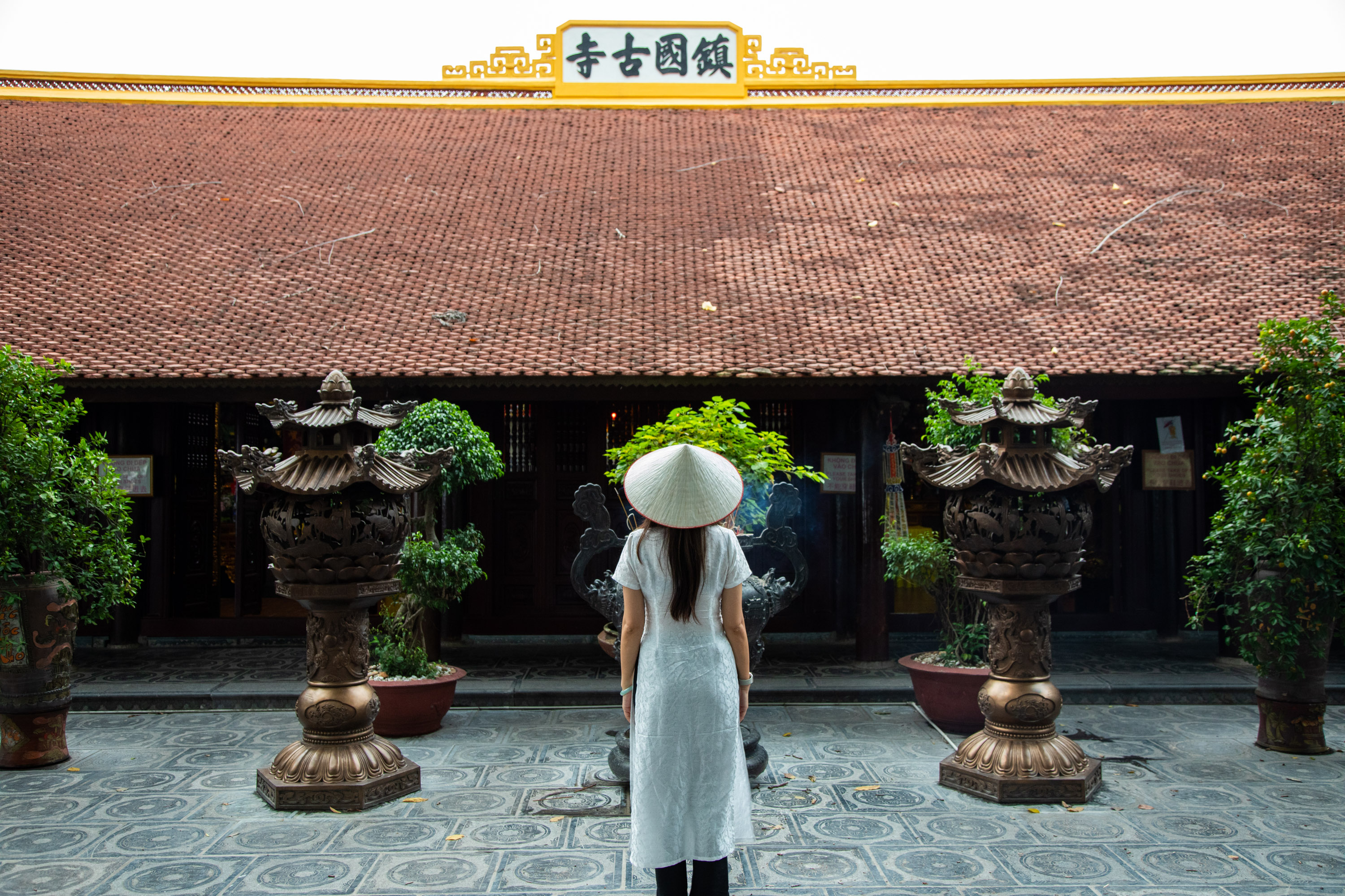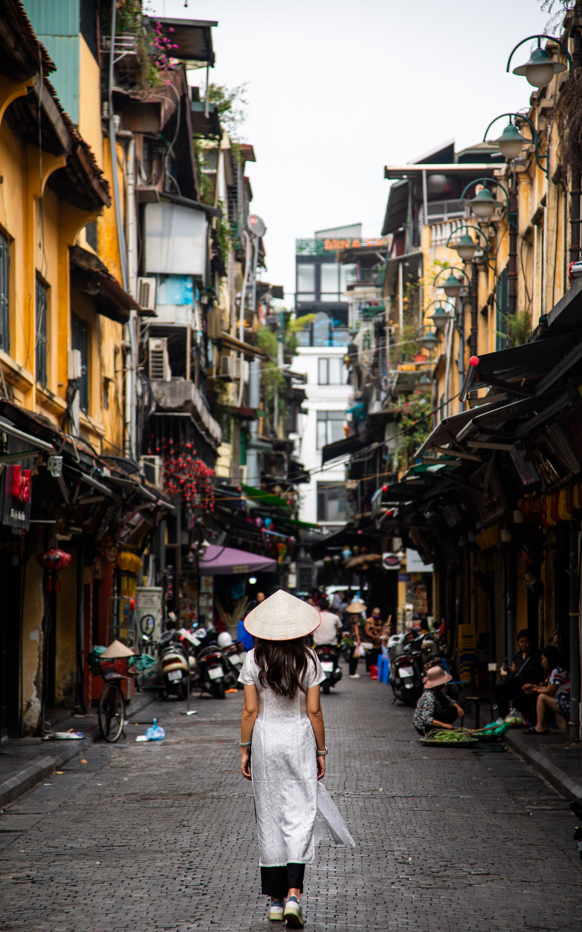 Le lendemain nous continuons notre déambulation dans les rues d’Hanoi habillé de la nouvelle Ao Dai en soie blanche faite sur mesure, le costume traditionnel est tout aussi adapté au cadre et les images sont captivantes.