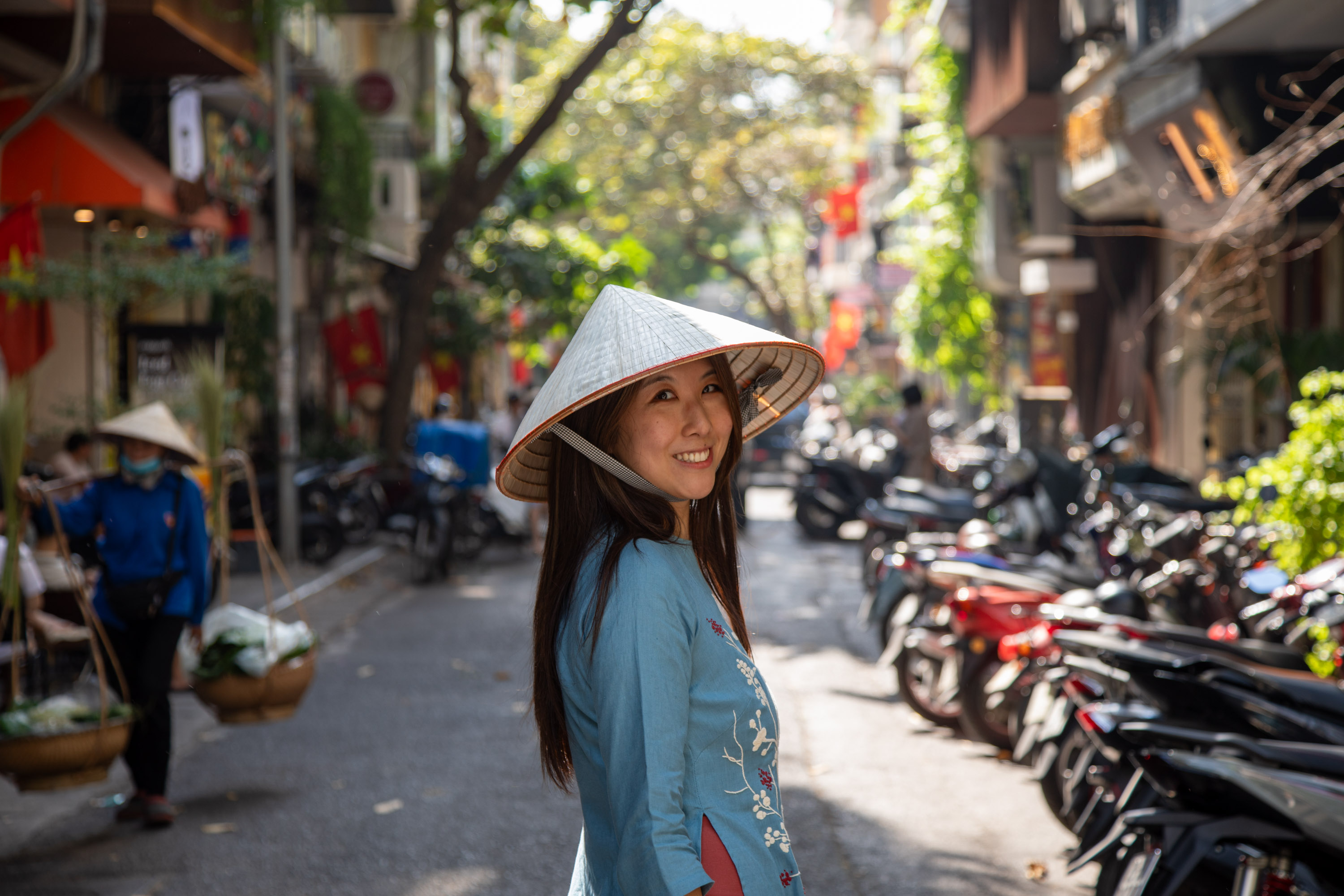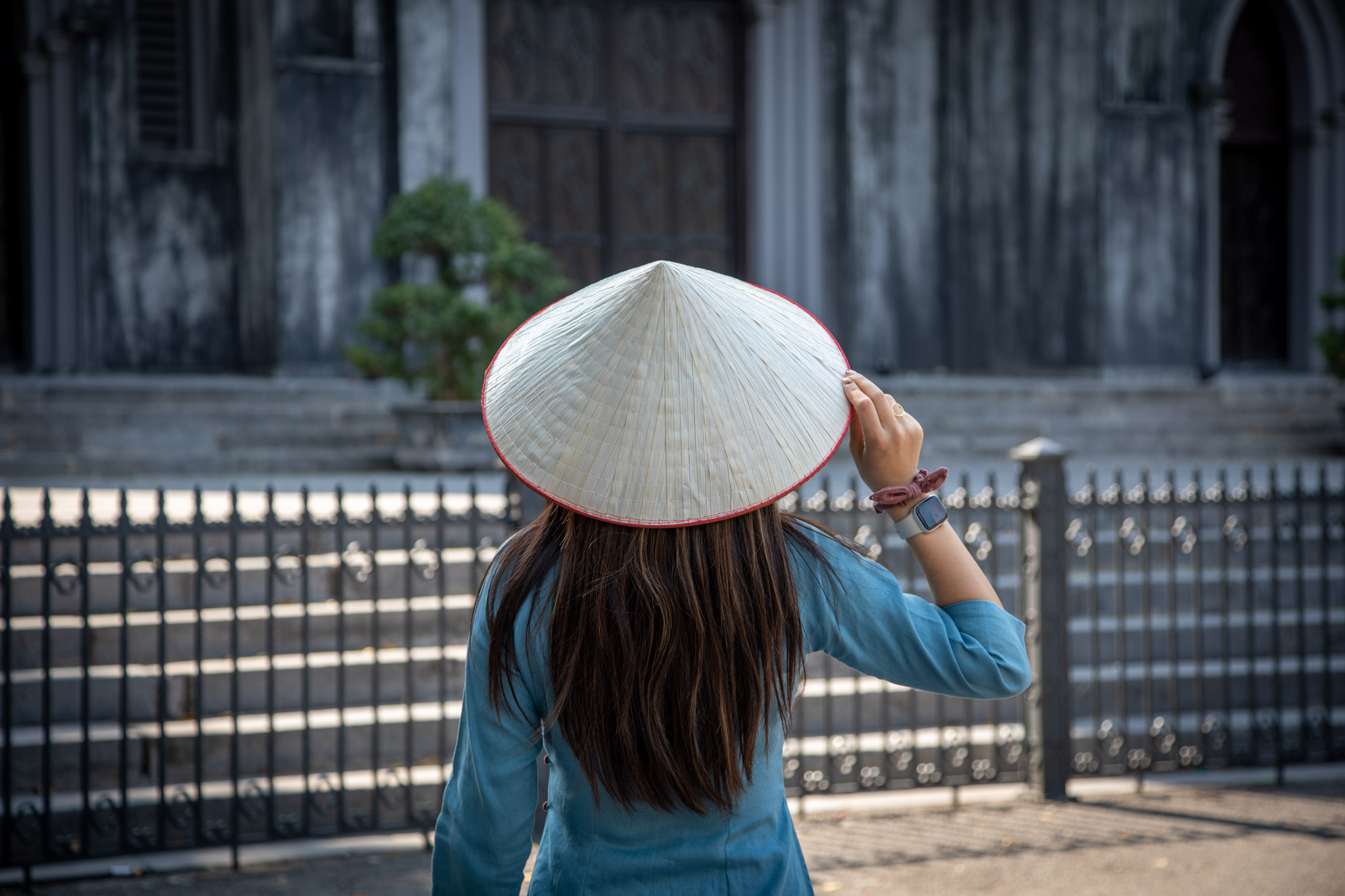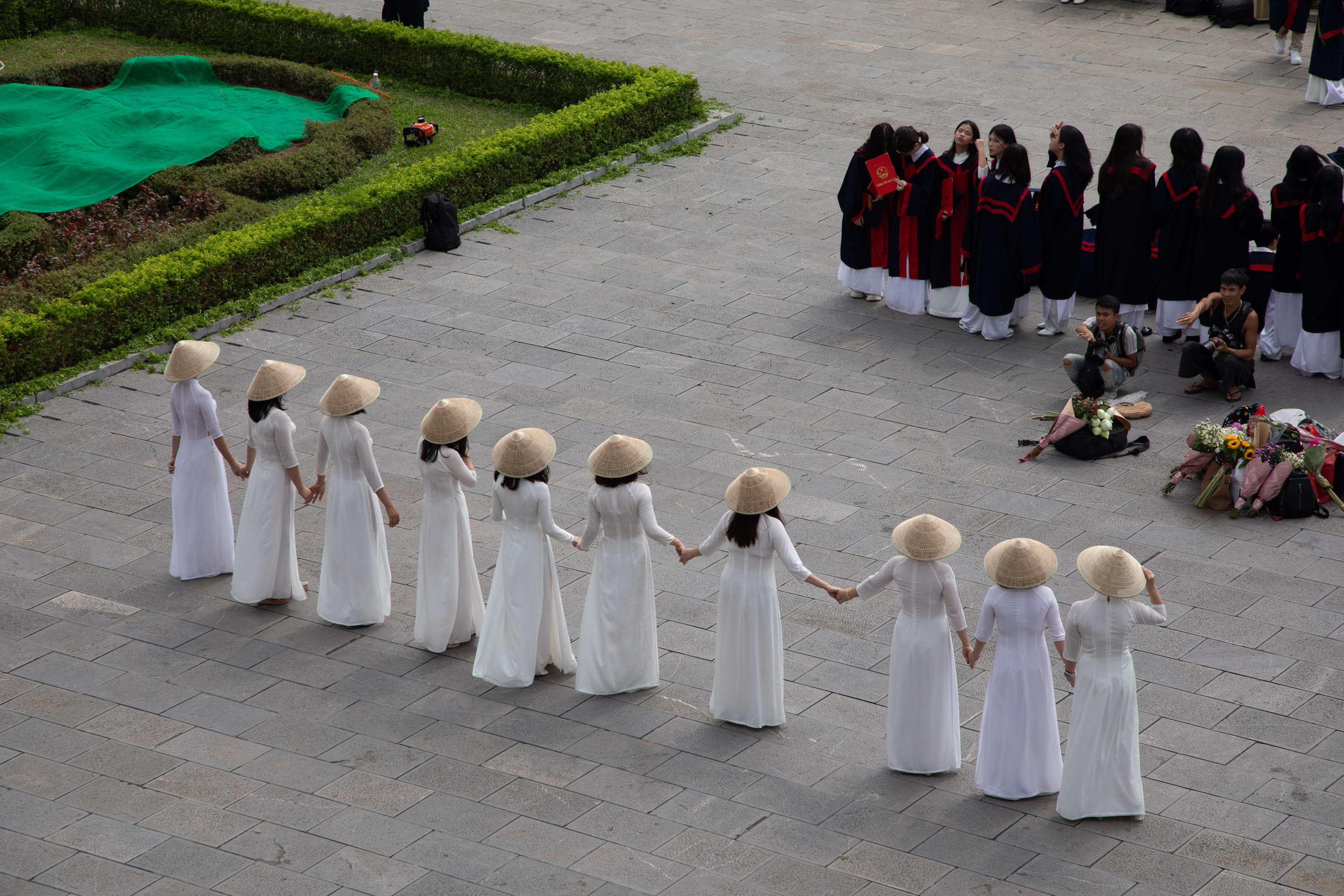 Il y a beaucoup de jeunes diplômés qui viennent se prendre en photo en Ao Dai blanche traditionnelles, il y a une ambiance festive. Que ce soit la robe ou le chapeau c’est tellement proche en terme de style que celle de ma copine qu’on comprend pourquoi elle passe pour une locale, elle se fait aborder en vietnamien pendant tout le séjour dans le pays.