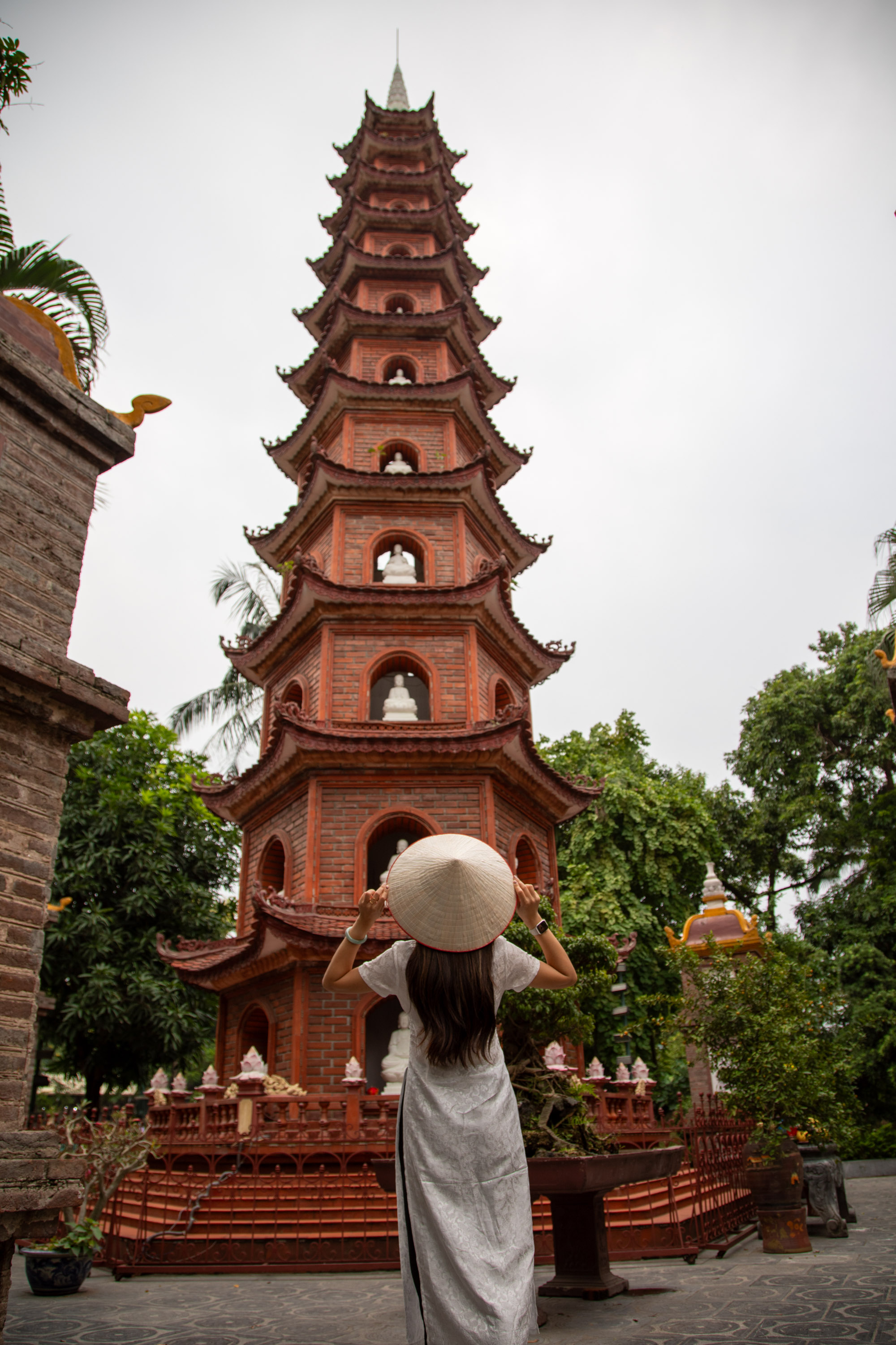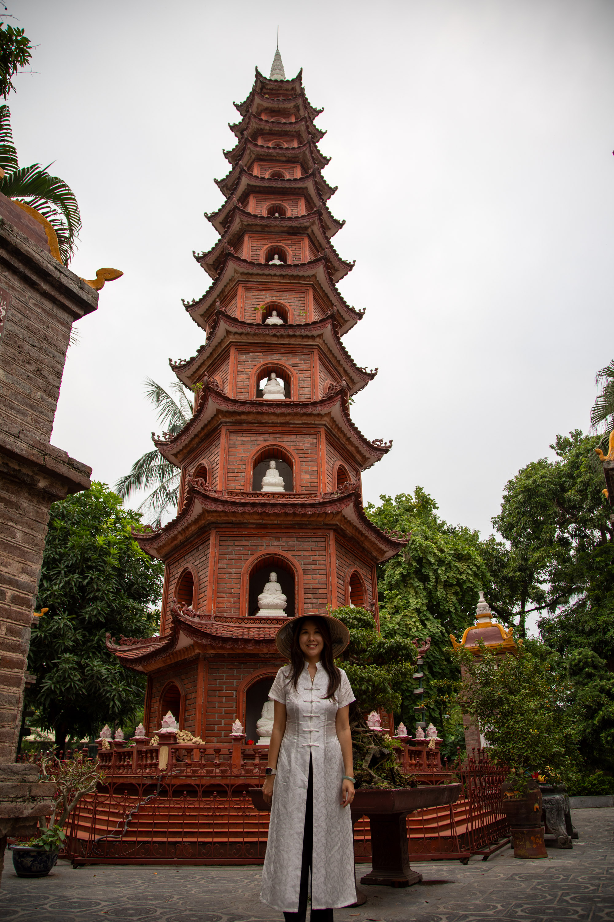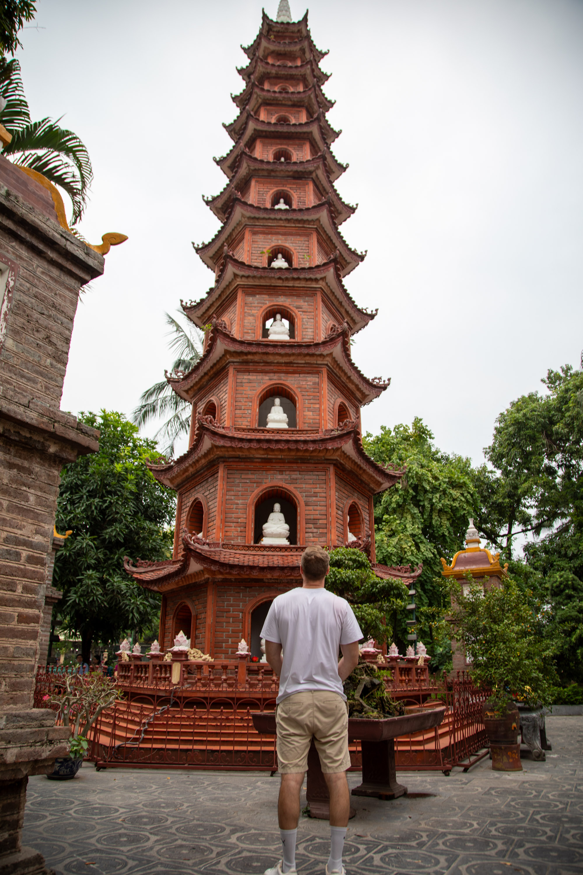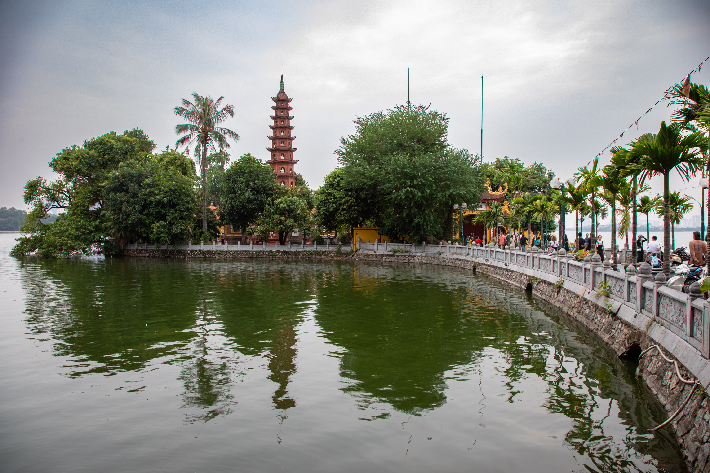 Après cette pause, on repart visiter les monuments d’Hanoi. On part en direction du lac de l’Ouest pour visiter la pagode de Tran Quoc. C’est un monument vraiment différent et immanquable, la pagode en brique rouge est posée sur une presqu’ile sur le lac.