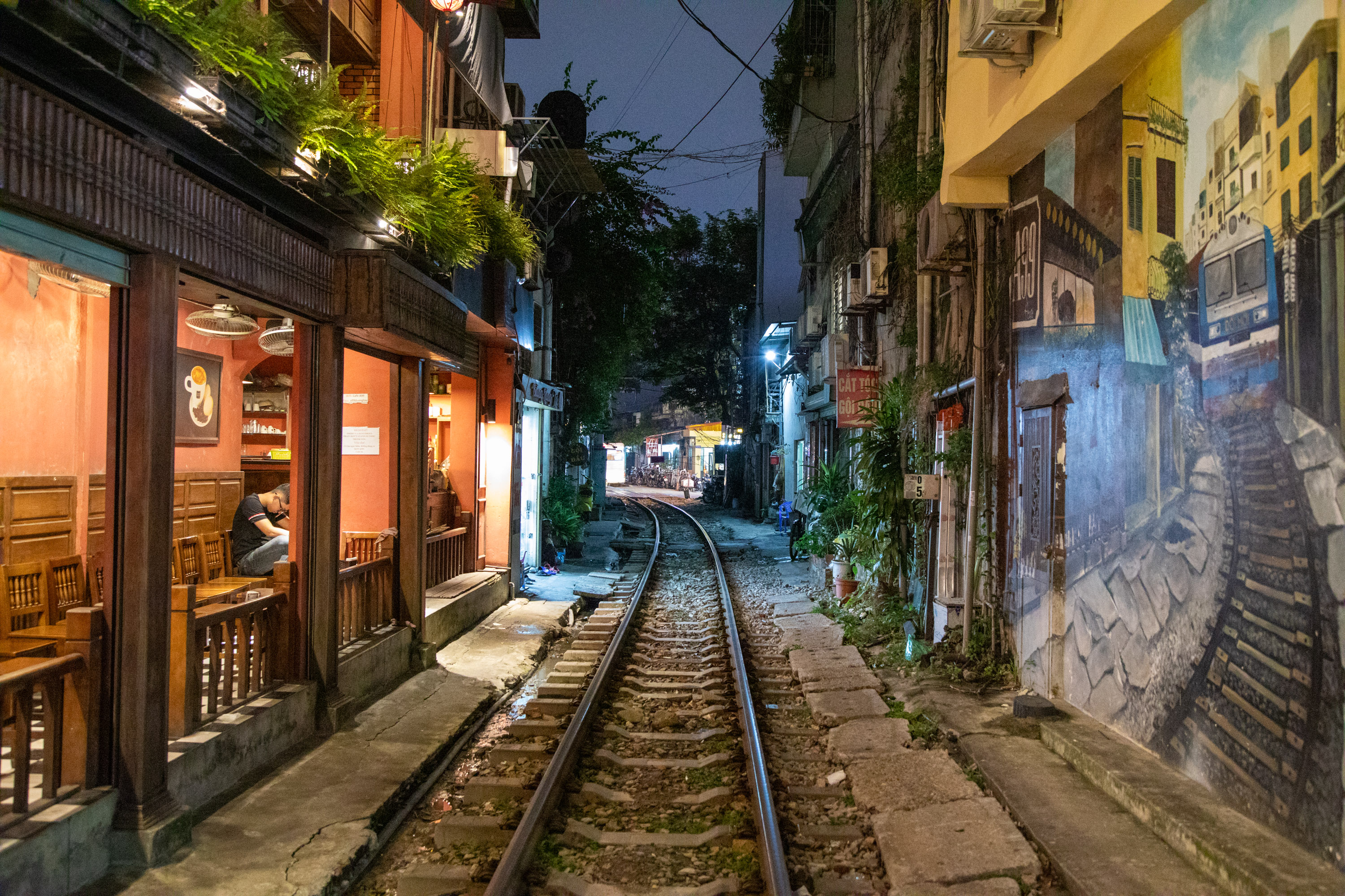 Par hasard on passe devant la train street qui est très jolie aussi de nuit.
