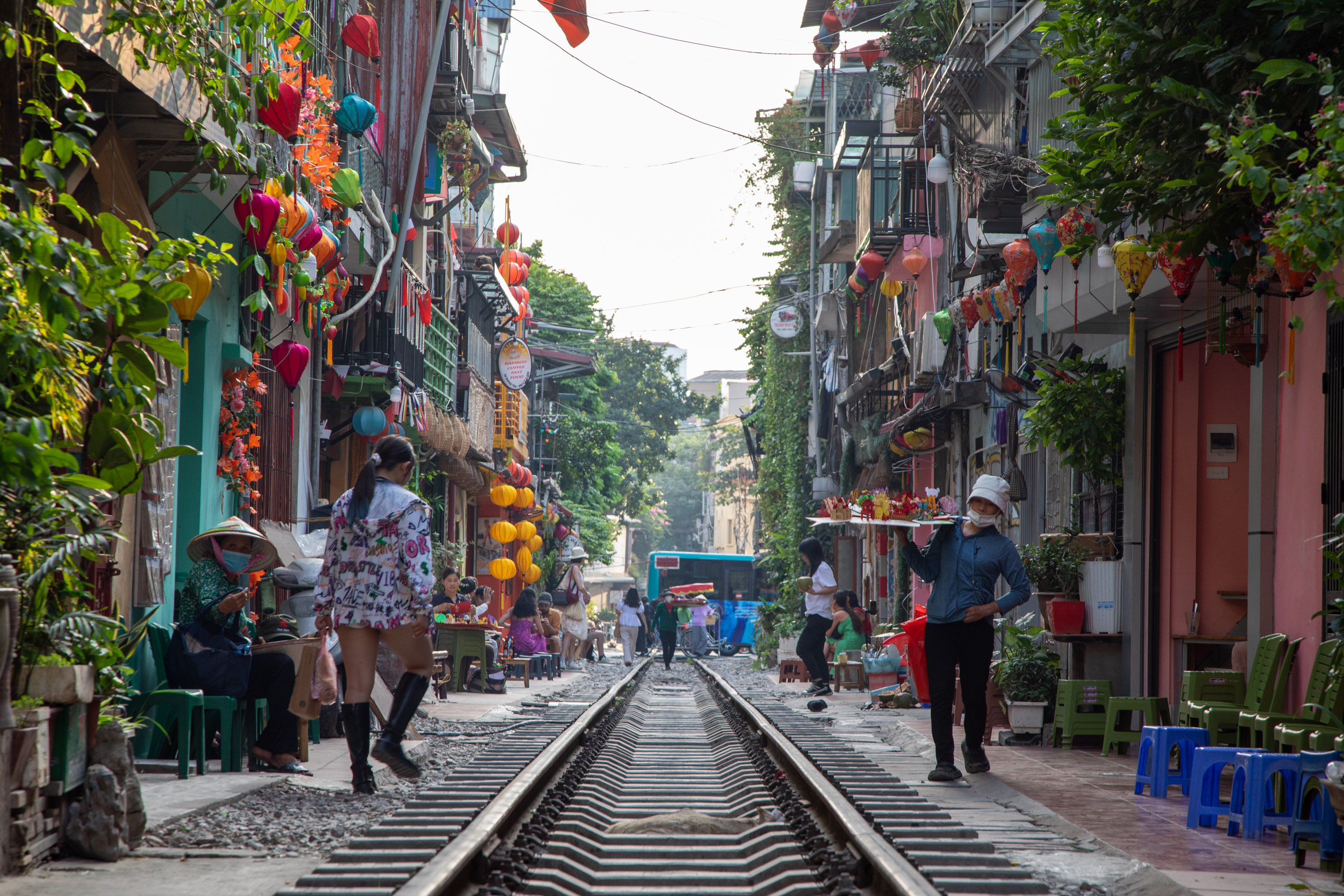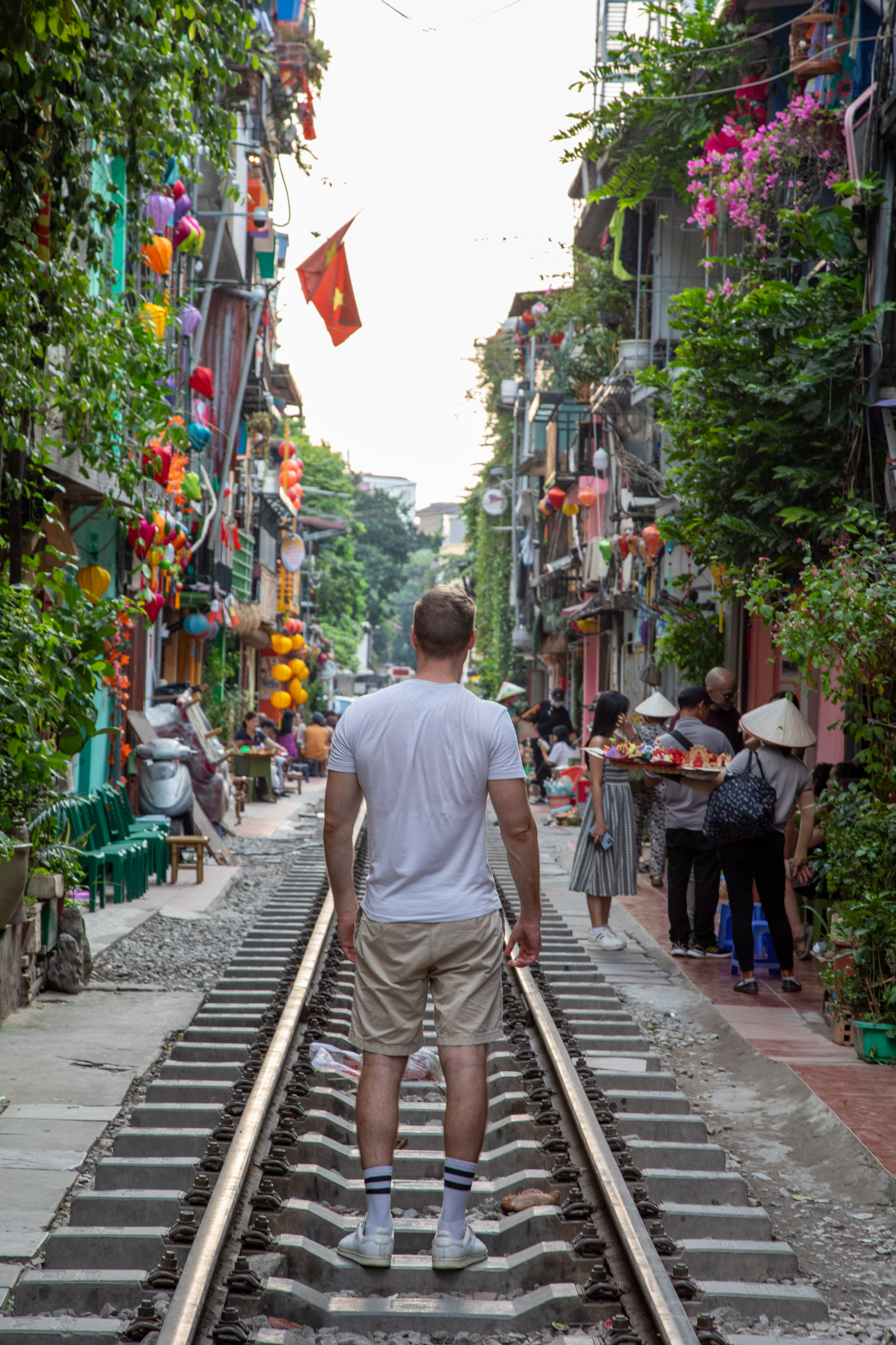 Sans avoir prévu, on se retrouvé au niveau de la fameuse rue du train, cette rue est très connue car les rails passe au milieu des habitations et les trains circulent toujours sur ces voies. C’est devenu un des endroits les plus connus d’Hanoi et un incontournable dans la ville. Alors, il faut savoir que maintenant la rue est fermée par des policiers et gardée. Il est quand même possible de passer si on va consommer dans un des innombrables petits bars qui bordent les rails.