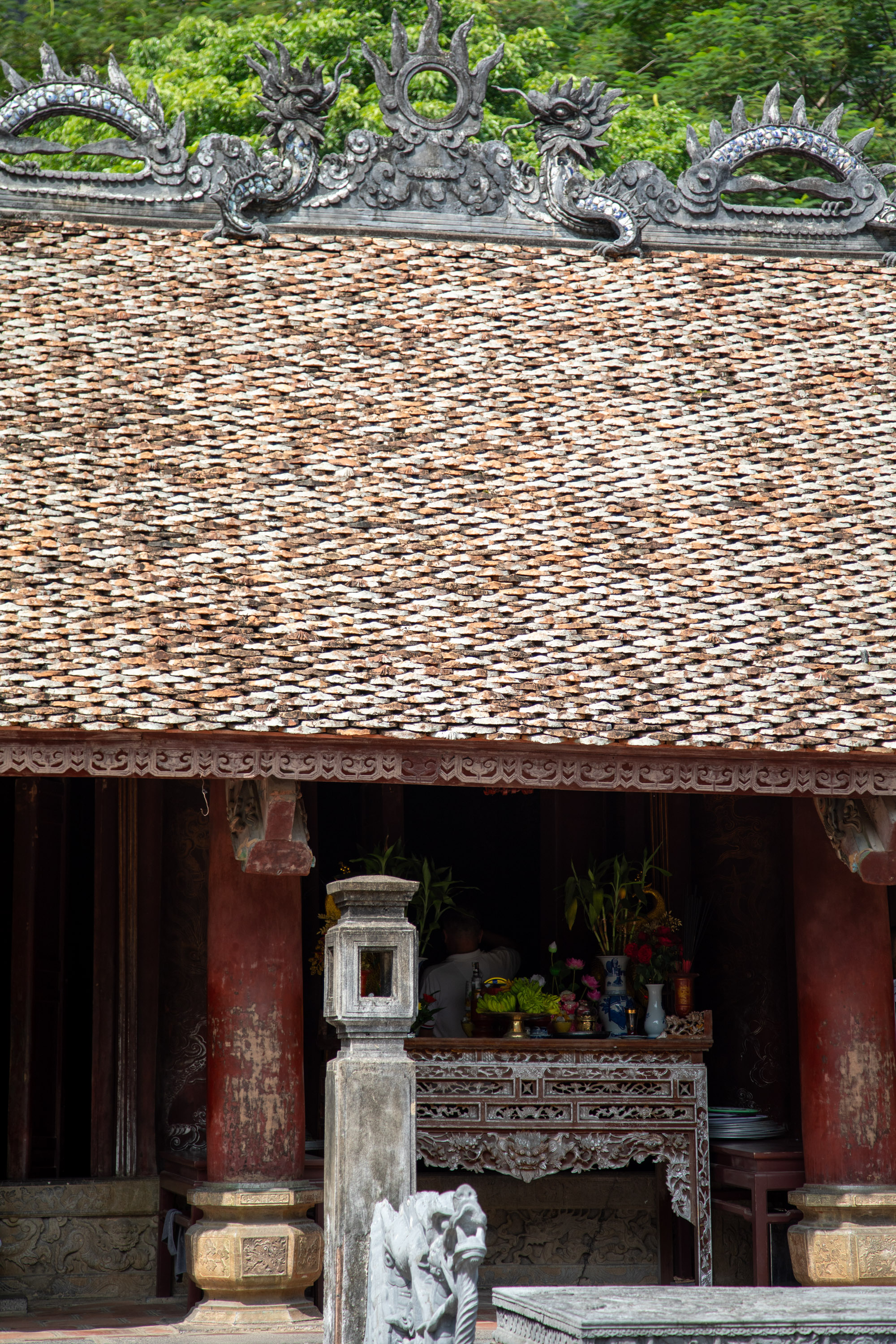 Départ matinal devant notre hotel avec un minibus qui va nous emmener pour une journée vers Ninh Binh. Nous aurions pu choisir la manière compliquée en rejoignant Ninh Binh avec un bus et en s'organisant soi-même mais nous restons trop peu de temps dans le pays. Après coup d'ailleurs on ne peut que vous recommander, ca vaut vraiment le coup de pouvoir organiser sa journée soi-même et de dormir dans la campagne environnante qui est magnifique. Après un peu plus de deux heures de route, on arrive à la première étape du jour, l'ancienne capitale de Hua Lu. Nous visitons les vestiges de la première capitale du Vietnam, fondée lorsque le pays a obtenu son indépendance de la puissance chinoise.