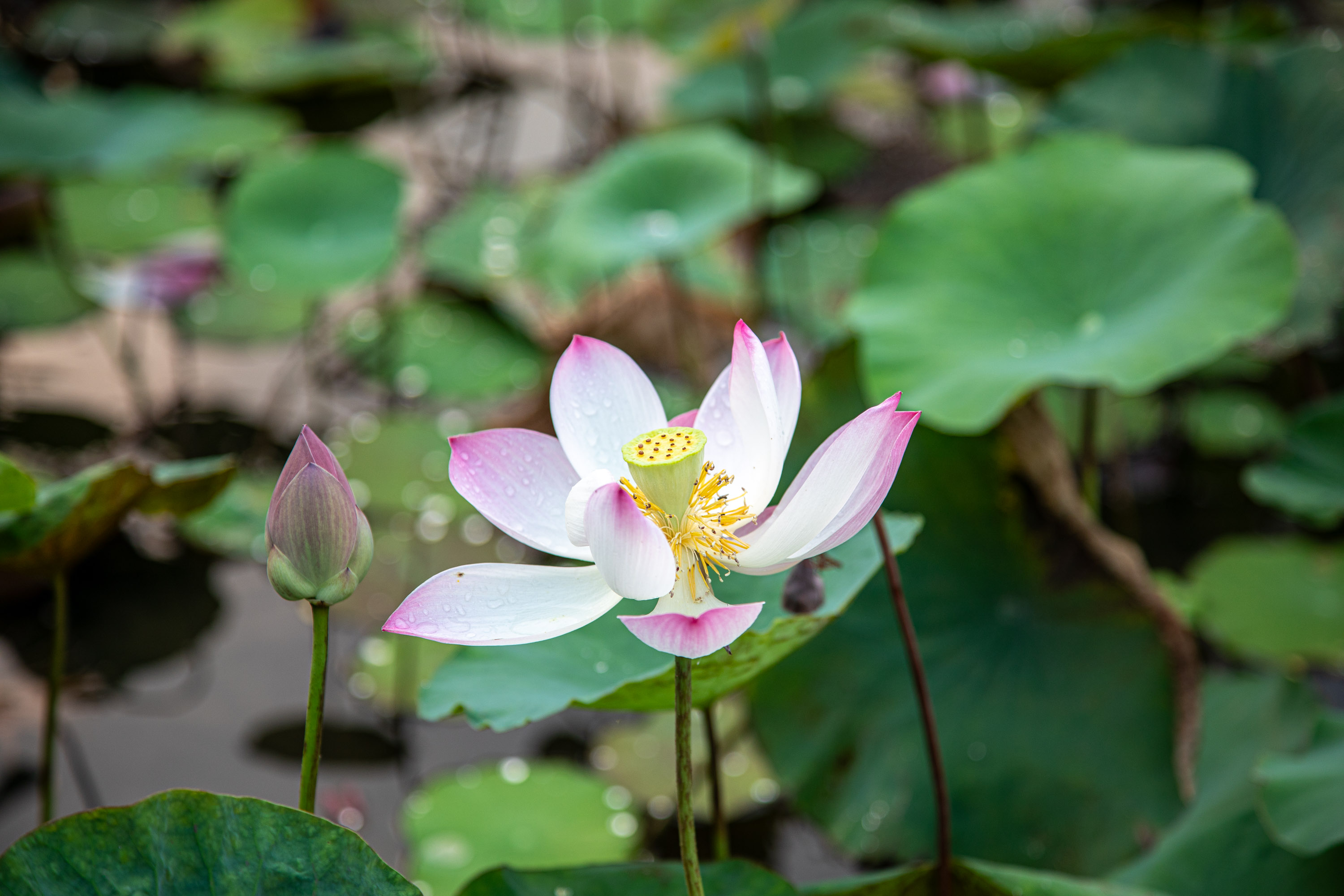 On peut faire de très belles photos des fleurs de lotus et des feuilles.