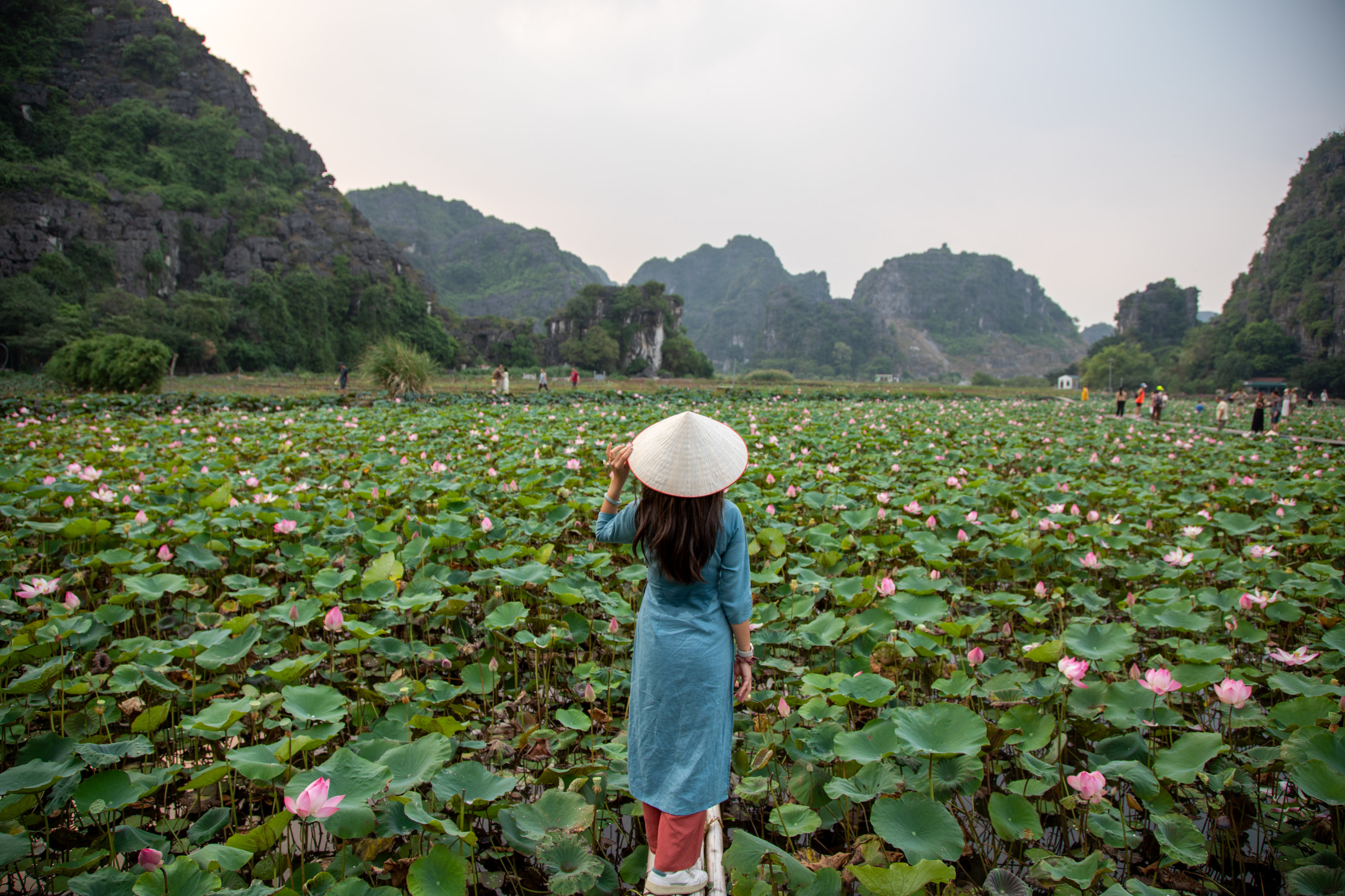 Après la redescente lente mais sure, on peut découvrir un immense champs de lotus juste à l'entrée de Mua Cave, il ne faut vraiment pas le rater.