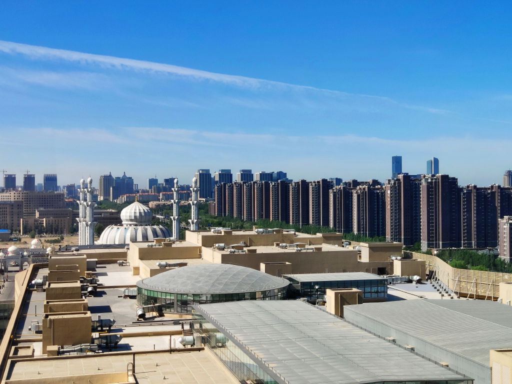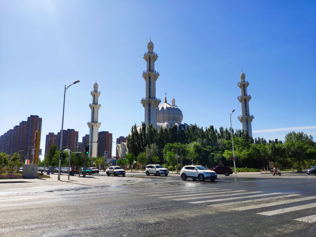 Départ matinal de Yinchuan, et belle vue depuis la chambre de l'hotel sur les nouveaux quartiers de la ville. Mise à part la mosquée, cela ressemble à n'importe quelle grande ville chinoise moderne avec ses grands ensembles.