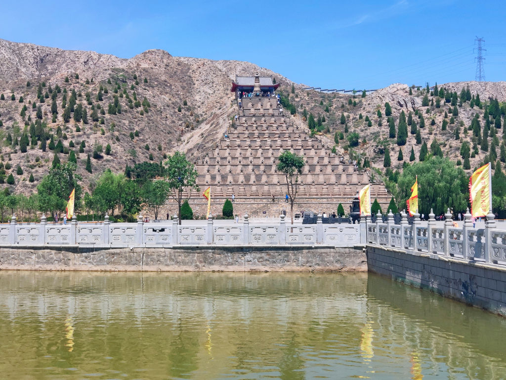 Après deux heures de route sur une des autoroutes chinoises toutes neuves, nous arrivons sur ce site qui est très touristique. Il faut d’abord traverser le site du barrage de Wuzhong, construit dans les années 1960 dans des conditions rudimentaires, les photos sur le chemin témoignant de l’ampleur du chantier.