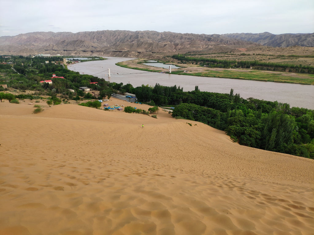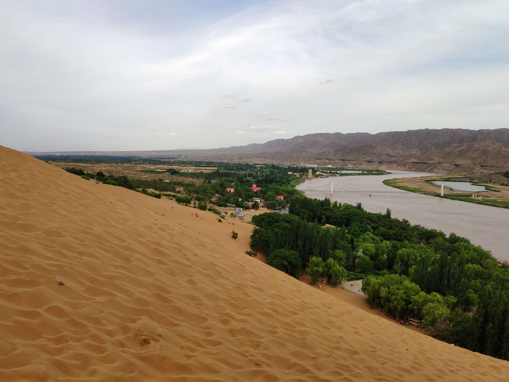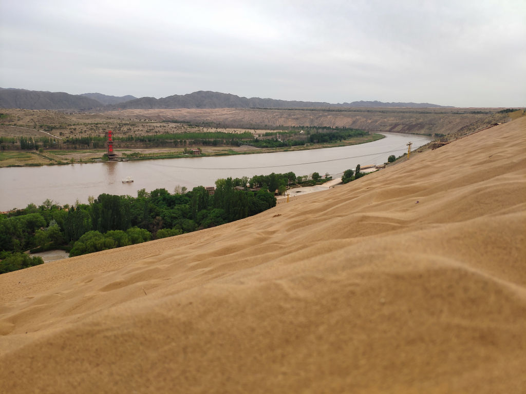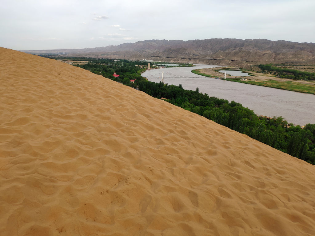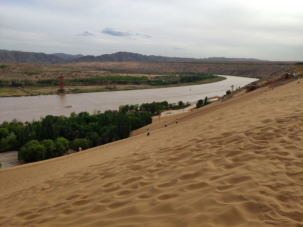 Cette dune qui borde le Fleuve Jaune est immense. On a l’impression que l’on pourrait tomber dans le fleuve tellement elle est abrupte.