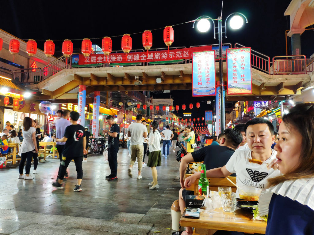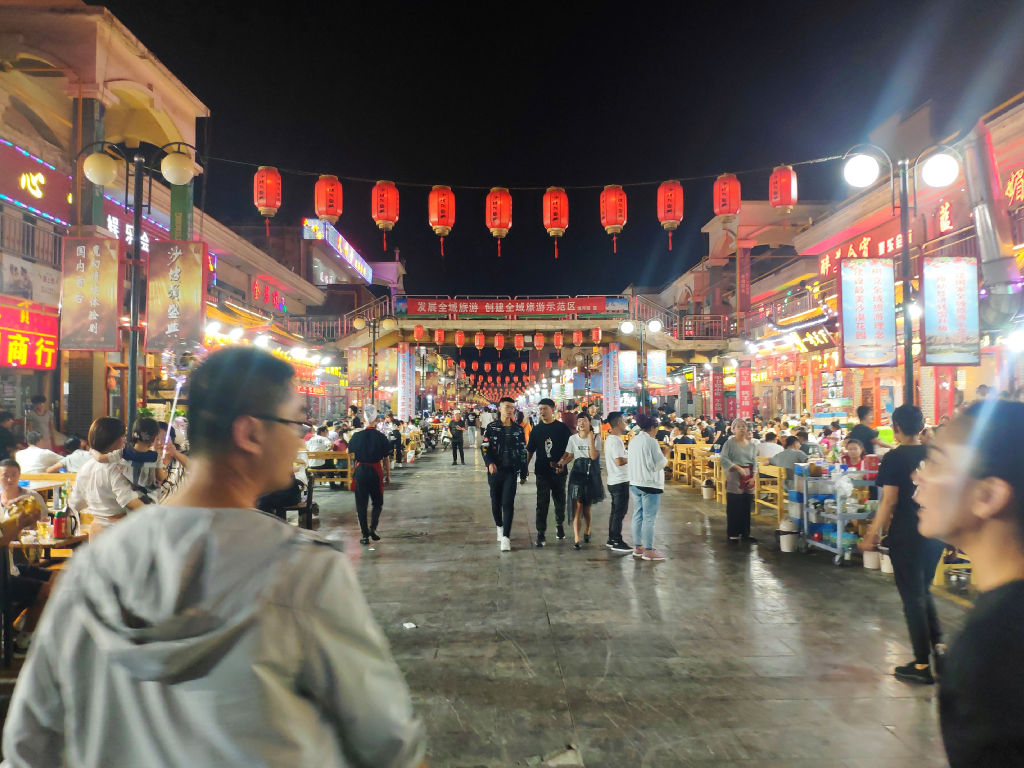Nous dinerons dans le marché de nuit de Zhongwei, qui est particulièrement animé, avec des tables installées dehors pour accueillir les touristes affamés après cette journée sous le dur soleil du Nord-Ouest en quête de leur ration de brochettes de mouton.