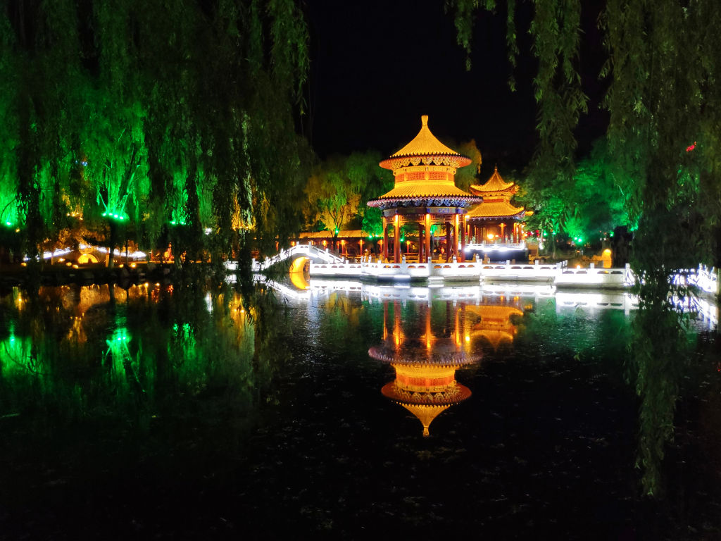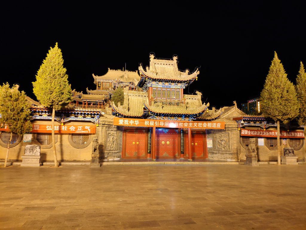 La ville de Zhongwei abrite aussi un magnifique temple très bien éclairé la nuit.