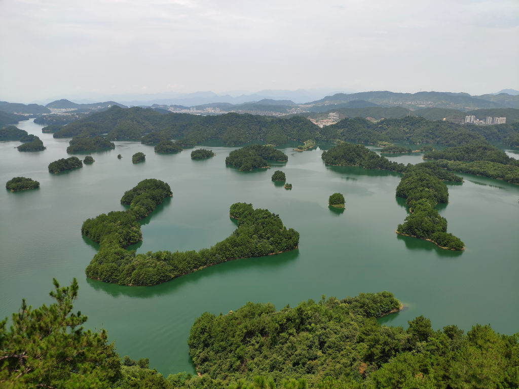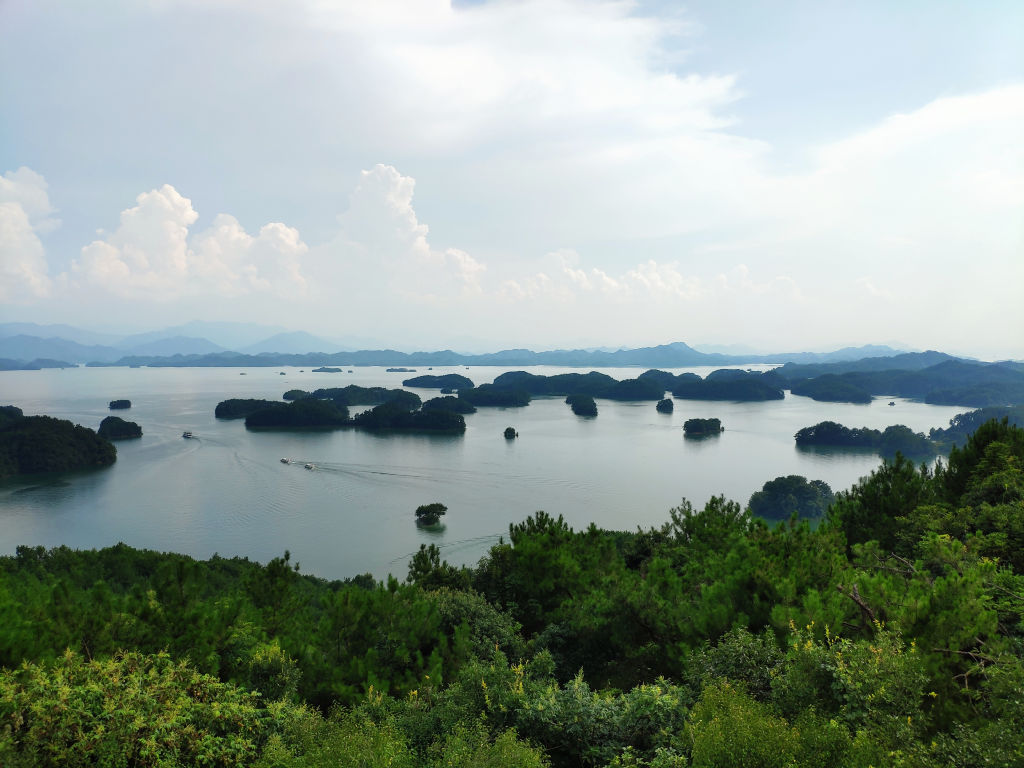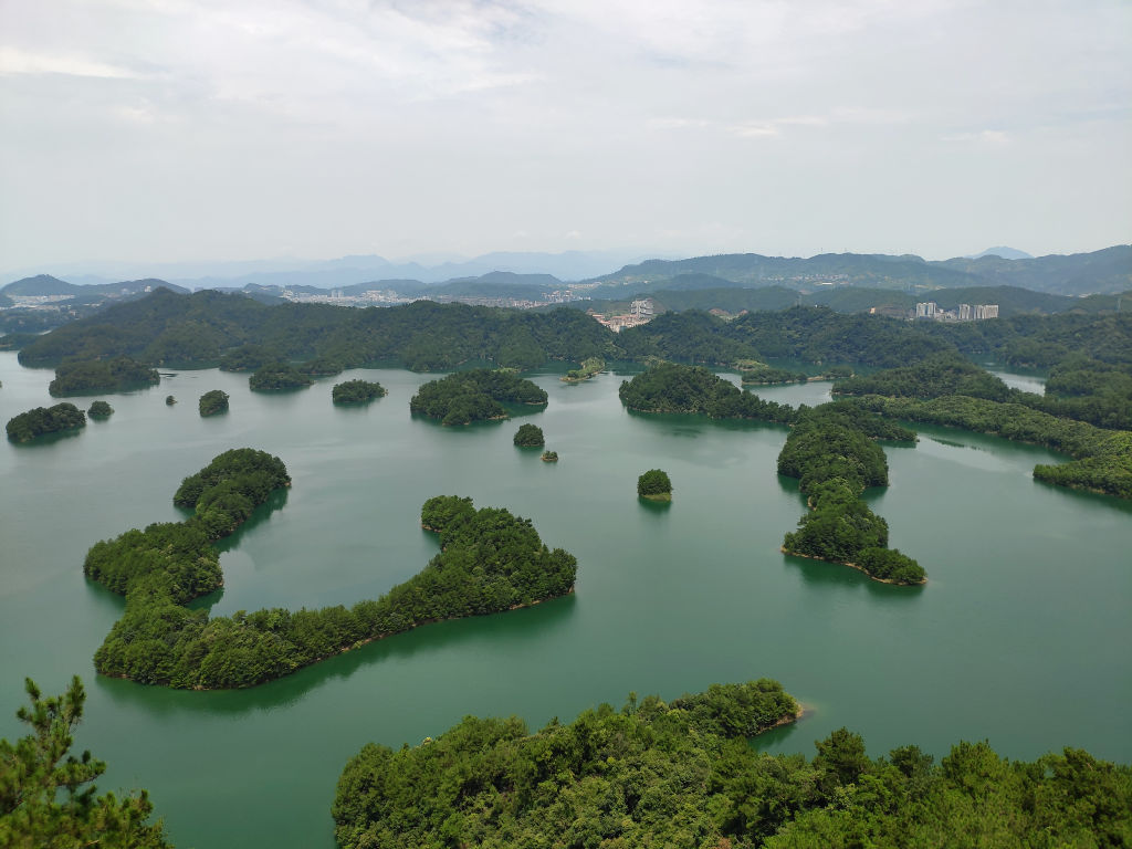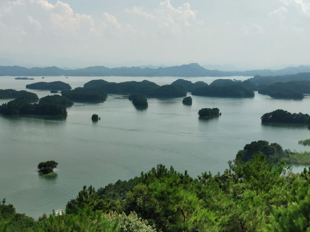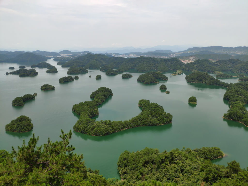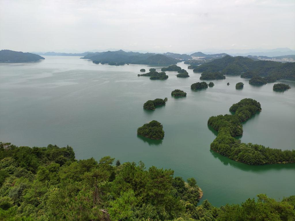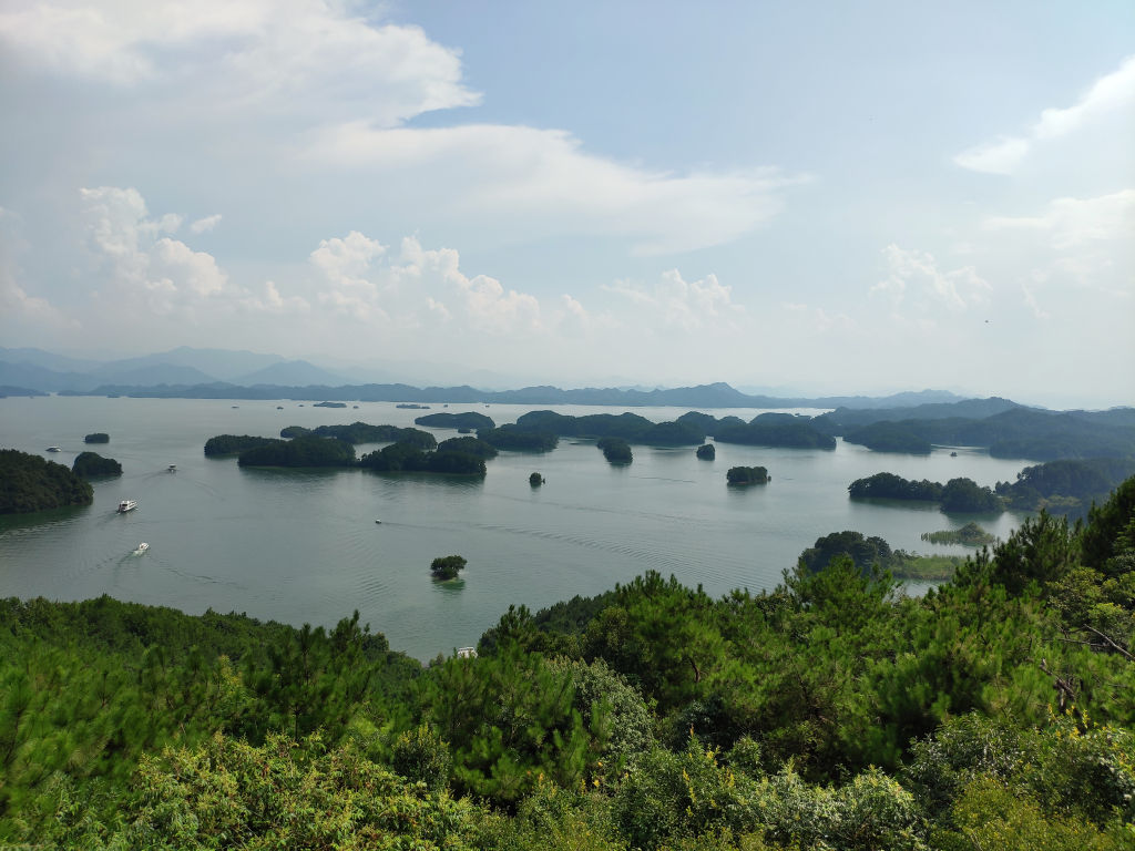 Depuis le belvédère, on a une des vues classiques de Qiandaohu, c'est splendide.