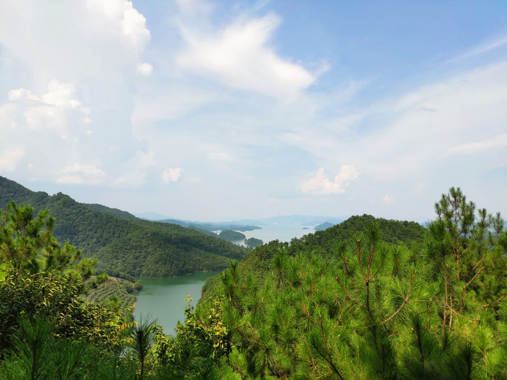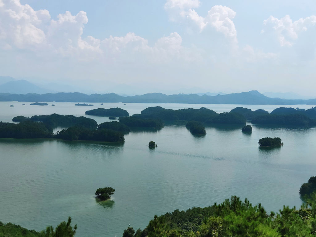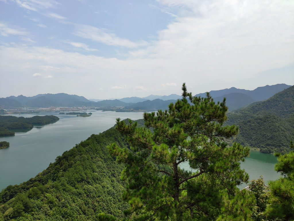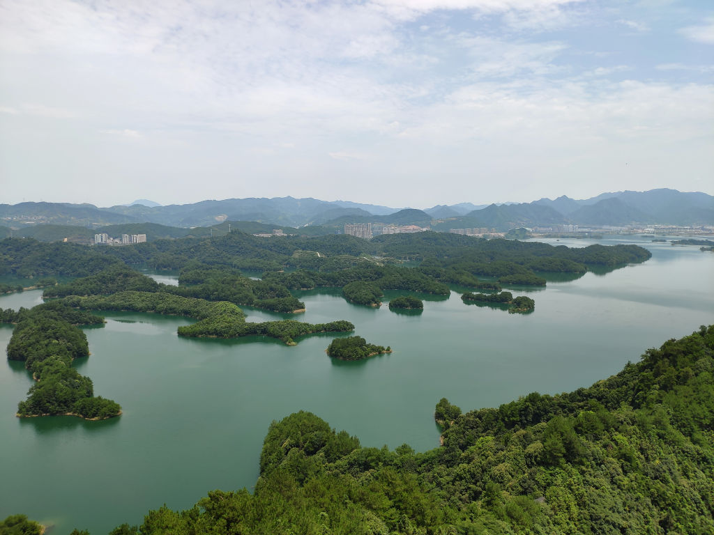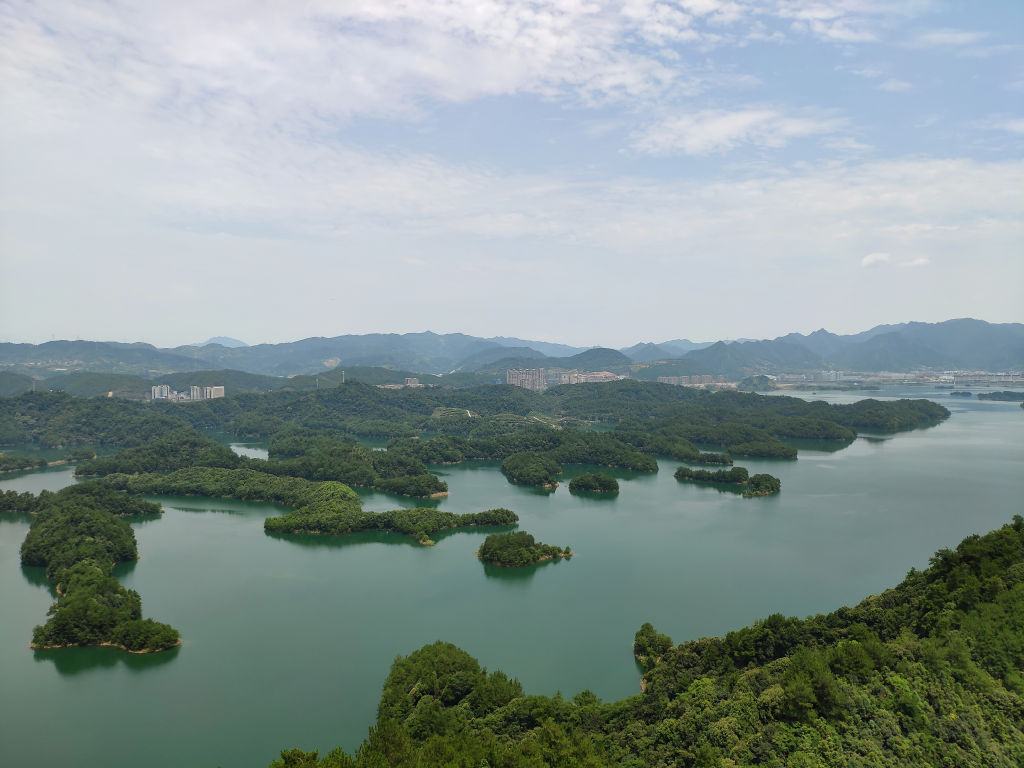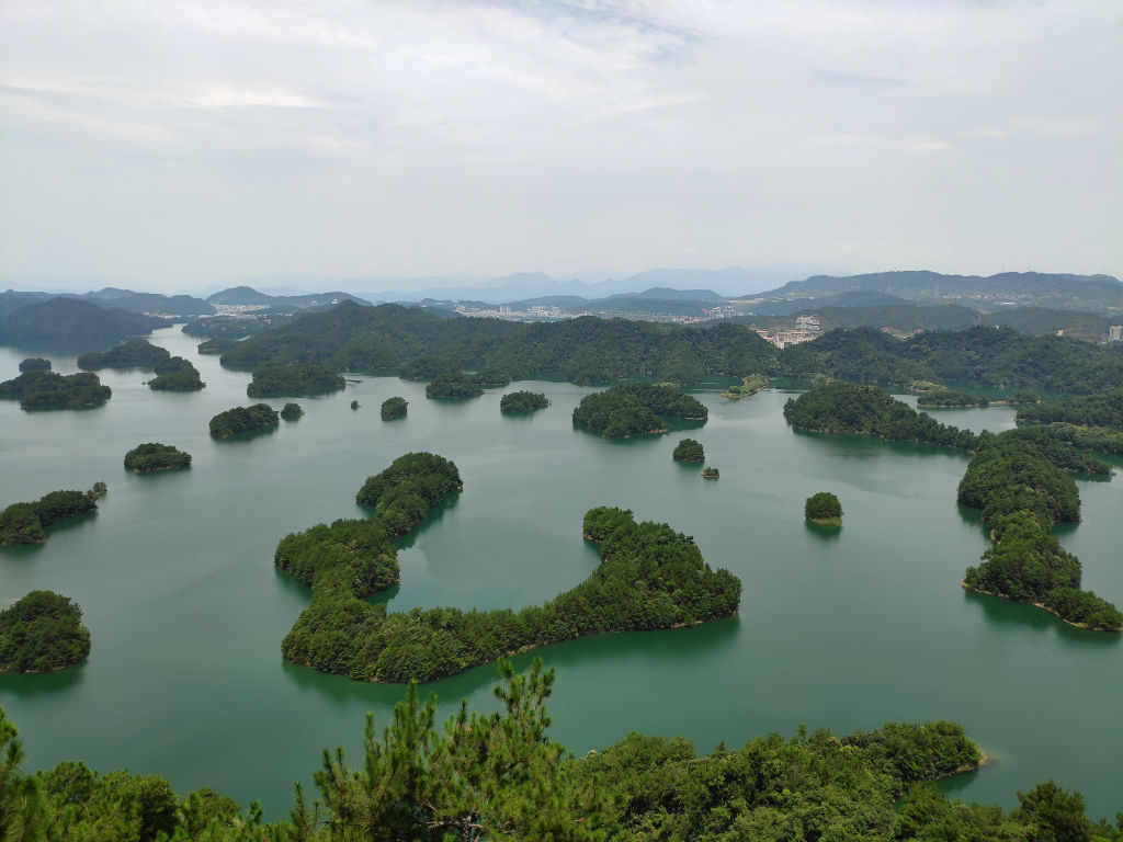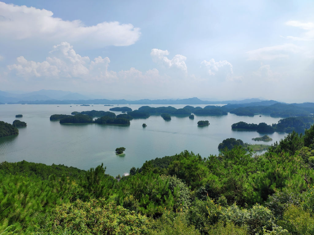 Depuis le belvédère, on a une des vues classiques de Qiandaohu, c'est splendide.