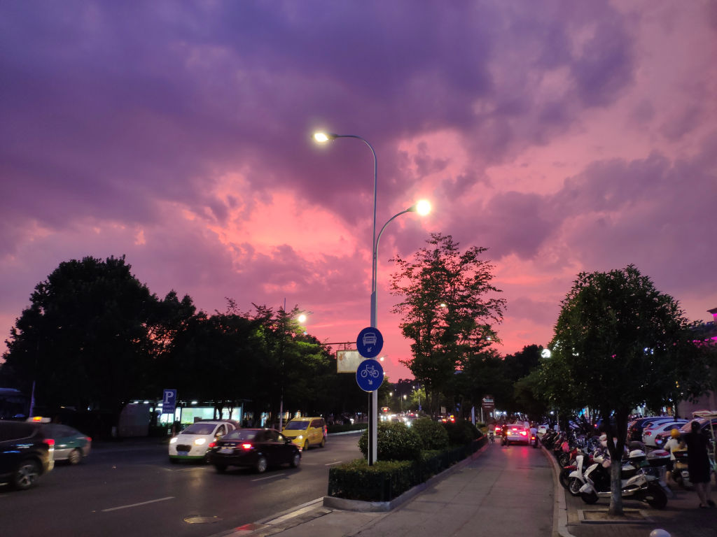Comme hier, on se donne comme objectif avant de rentrer en soirée sur Hangzhou de se baigner dans le lac. Pour le gouter, on part en ville boire un café et on remarque que des gens se baignent ici depuis les berges du lac sur la place principale. On part se changer dans les toilettes du Starbucks et on fait comme tout le monde et on se jette à l'eau. Bien sur, un étranger qui se mêle à foule joyeuse ne passe pas inaperçu, et le garde censé empecher les gens de se baigner ici restera tout le temps à me regarder pour voir si je ne coule pas. L'eau est toujours aussi chaude et donc difficile de se rafraichir, mais le coucher de soleil est du même acabit que la veille sauf qu'on le regarde depuis une plateforme immergée, on est très bien installé.