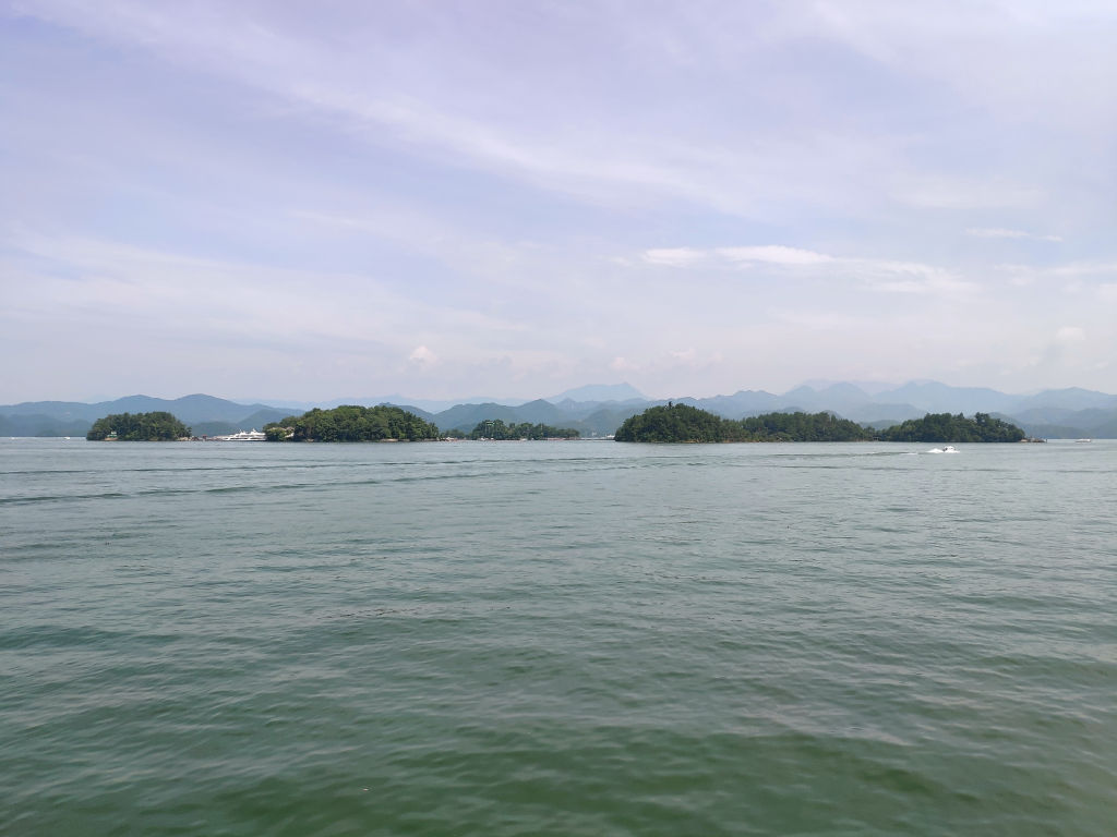 Un peu plus de 2 heures de route de Hangzhou se trouve le lac des mille îles, Qiandaohu en chinois, créé par une retenue et qui a créé un paysage vraiment étonnant d'un immense lac parsemé de très nombreux îlots, je n'ai pas compté si il y avait vraiment mille îles, mais pour sur elles sont plusieurs centaines. De nombreux resorts colossaux ont été construit autour du lac et sont parfaits pour un week-end loin de la ville.