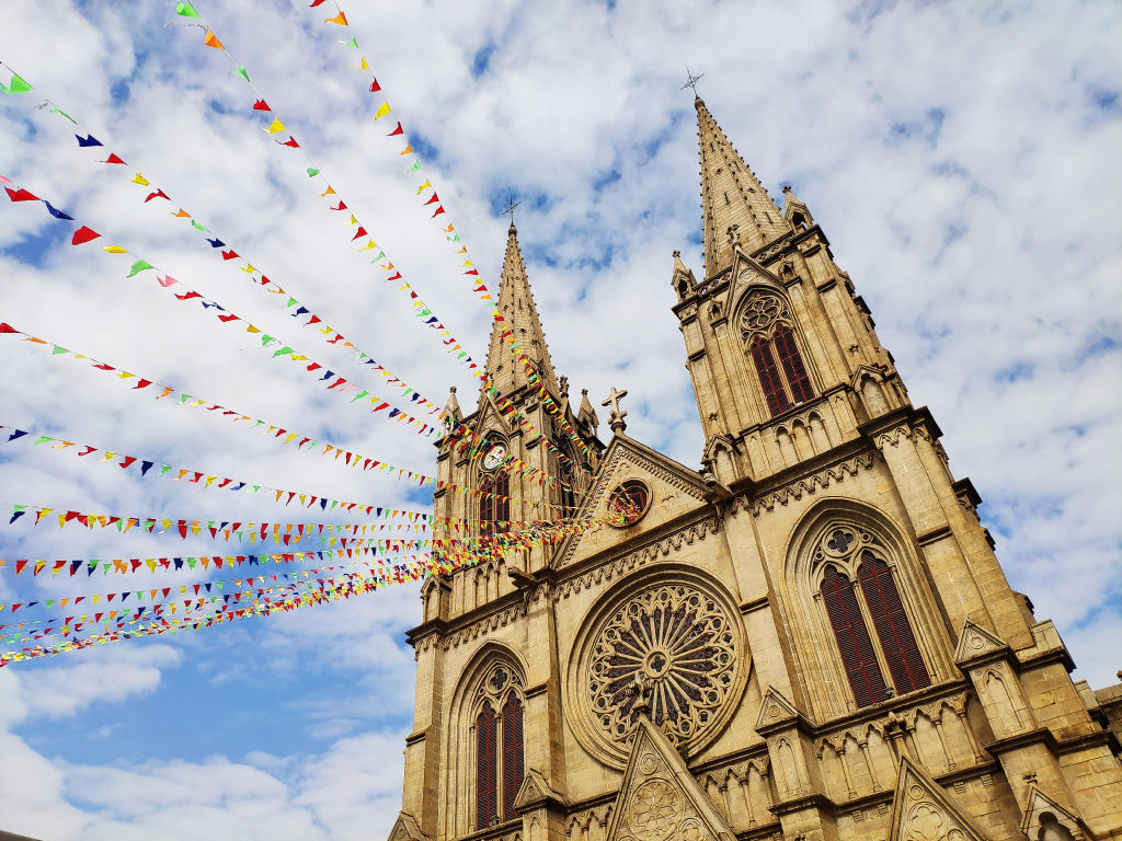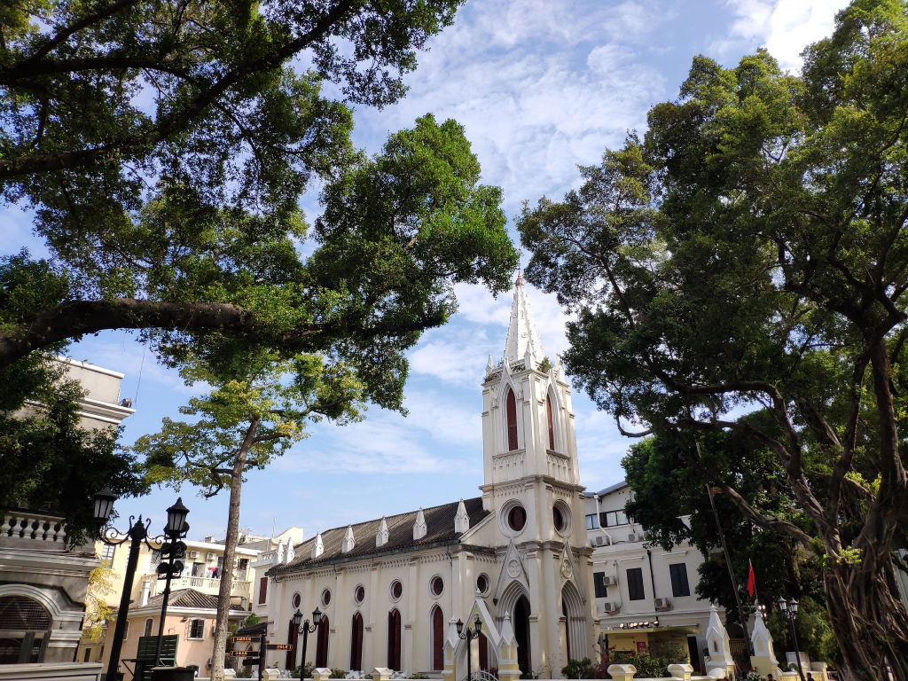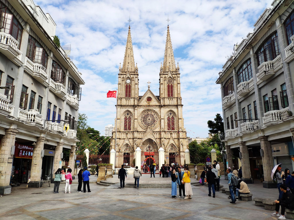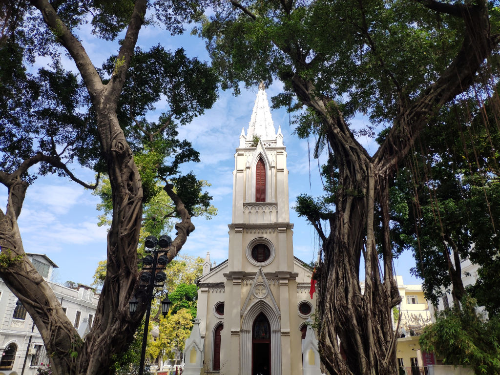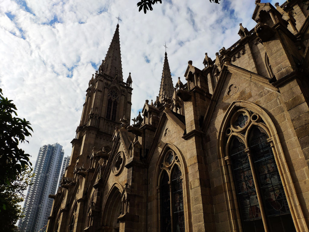 A Guangzhou on peut visiter un autre vestige du passage des Européens, il s’agit de la plus grande église en pierre de Chine qui se trouve pas très loin de Shamian. Quel décalage de tomber sur cette cathédrale ici. Un office est en cours dans l’église donc on ne peut pas rentrer, mais les décorations sont magnifiques.