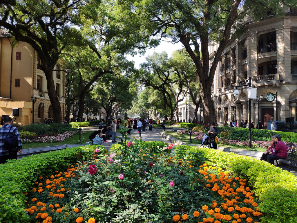 Le site historique qui m’a le plus impressionné à Guangzhou et qui me semble vraiment incontournable est l’île de Shamian dans l’Ouest de la ville. Après la seconde guerre de l’opium, cette bande de sable a été réquisitionnée par les puissances européennes qui ont édifié des bâtiments de style colonial, ceux-ci ont été très bien restaurés. On a l’impression d’être transporté en Amérique centrale. Les arbres banyans avec leurs branches racines qui tombent sont magnifiques.