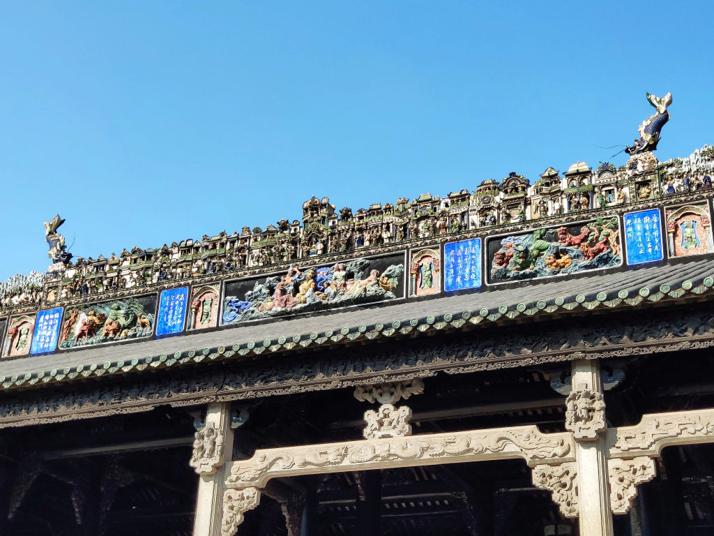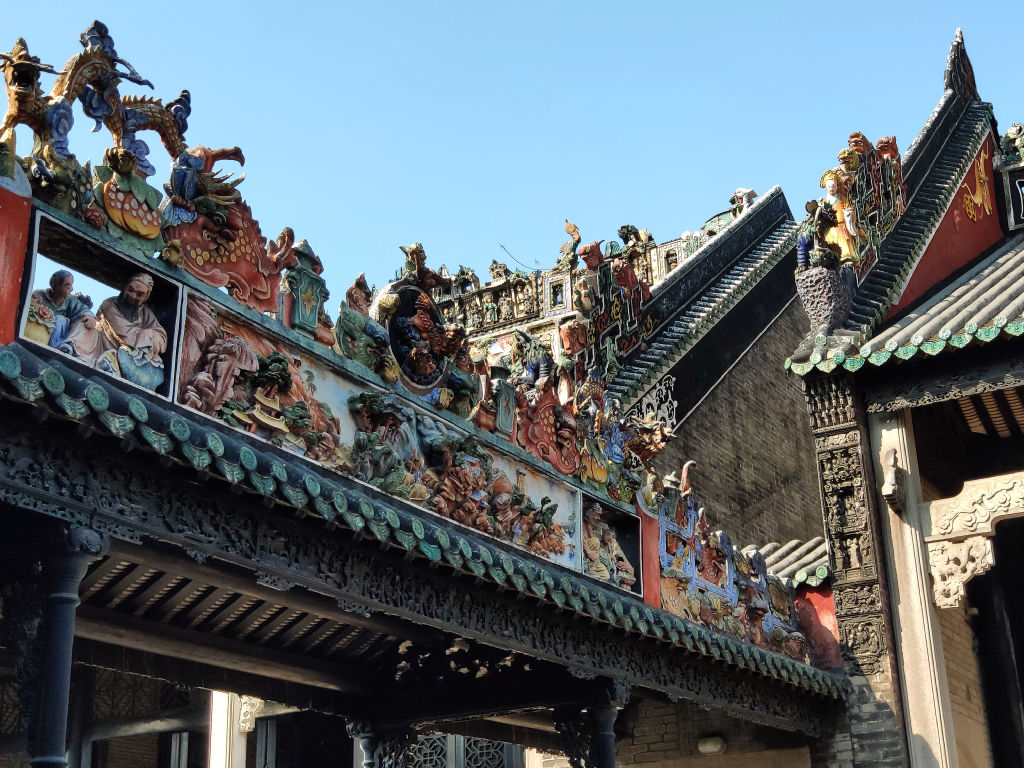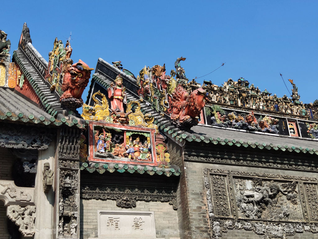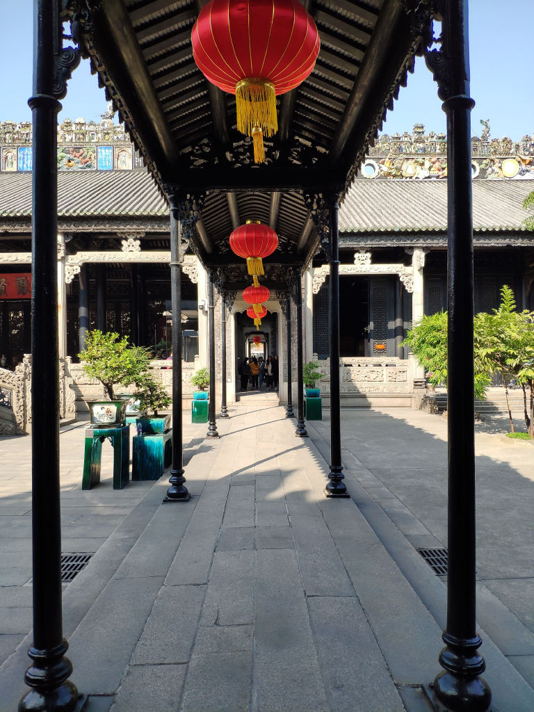 La maison du clan de Chen est par contre vraiment intéressante. Cet ensemble de bâtiments qui abrite un musée payant sur la culture de Lingnan est vraiment magnifique et lui aussi très bien restauré avec des décorations sur les toits colorées comme je n’en avais jamais vu auparavant.