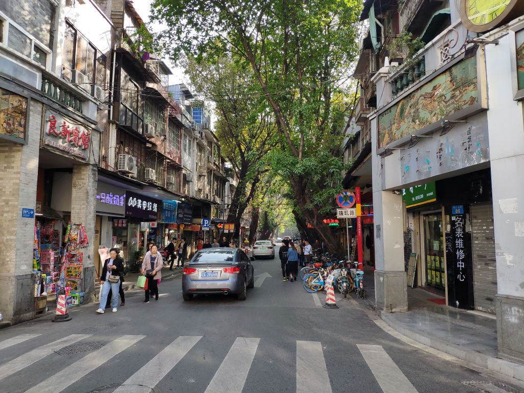 La rue piétonne commerçante de Shangxia jiu road semble bien désuète aujourd’hui à l’heure de centres commerçants géants climatisés, les bâtiments sont ici aussi un peu décrépis et les magasins somme toute plutôt bas de gamme avec des marques de troisième zone. C’est en décalage, un peu anachronique en fait. Mais la foule dense qui déambule, les haut-parleurs pour appâter le chaland, ça vaut le coup d’y passer pour se mêler à la foule des badauds. Même si on a un peu l’impression que chacun est arrivé là sans savoir pourquoi, peut-être que ce sont des touristes qui ont vu une recommandation dans un guide périmé qui fait que le mythe de cette rue commerçante s’entretient de lui-même.