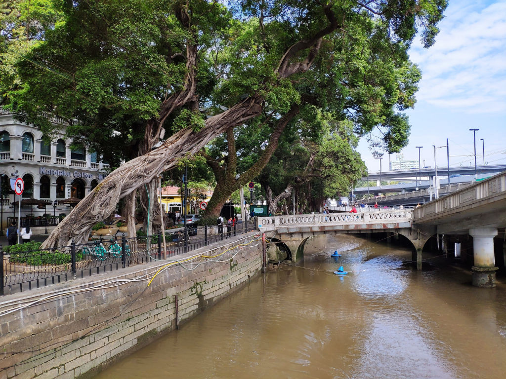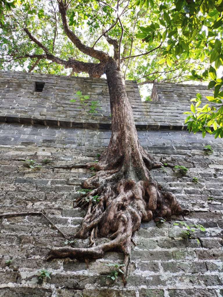 Un vestige de la muraille de Guangzhou. En plusieurs points on trouve ces arbres qui ont percé le mur.