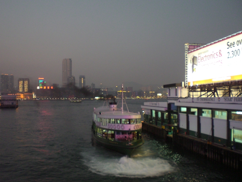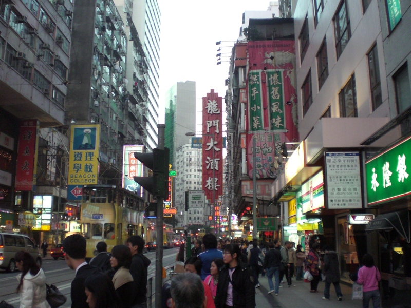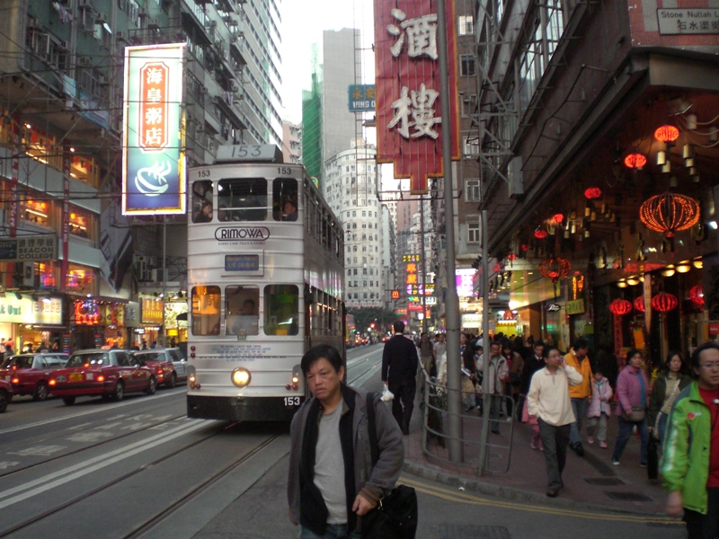 Nous trouverons une auberge derrière le célèbre centre de convention. L’île est séparée du continent par la mer, quelques centaines de mètre de mer d’un bleu étonnamment clair quand on voit tout le trafic maritime ici. La mer magnifie la ville et lui donne ce coté charmant et envoûtant. La traverser par l’un des mythiques bateaux de la compagnie de Star Ferry relève du retour vers le futur tout comme traverser le Nord de l’île dans le tout aussi fameux tramway à deux étage, lent mais unique au monde. Une autre caractéristique de Hong Kong est sa verticalité, sa densité, ce qui explique le nombre de panneaux d’affichages qui brillent la nuit le long des rues. Toutes ses couleurs, tous ces alphabets chinois, thaï, européen, …