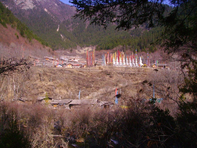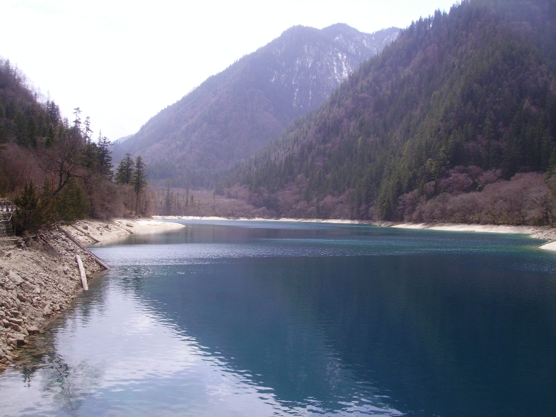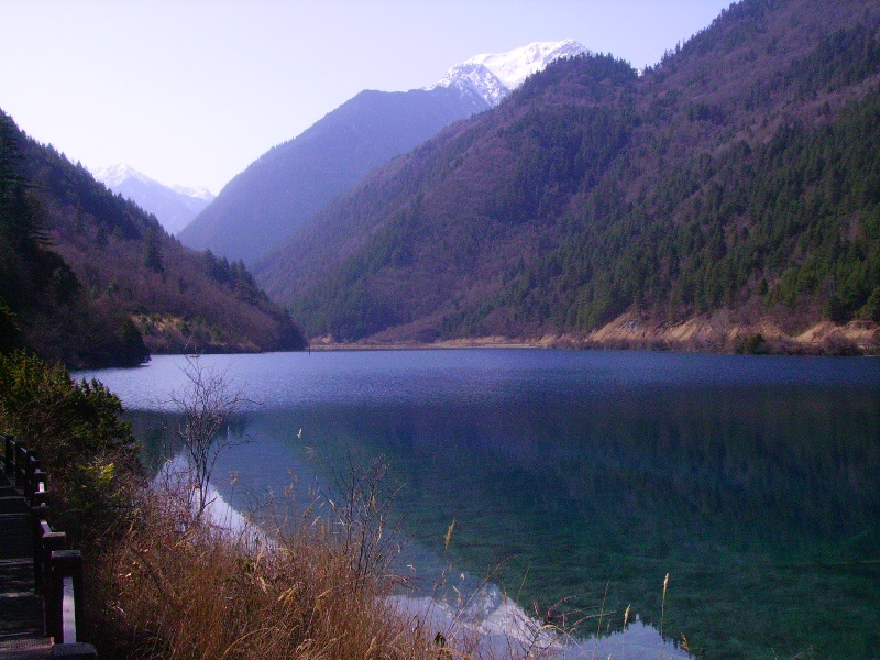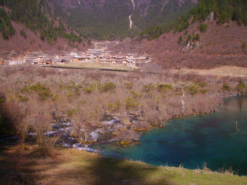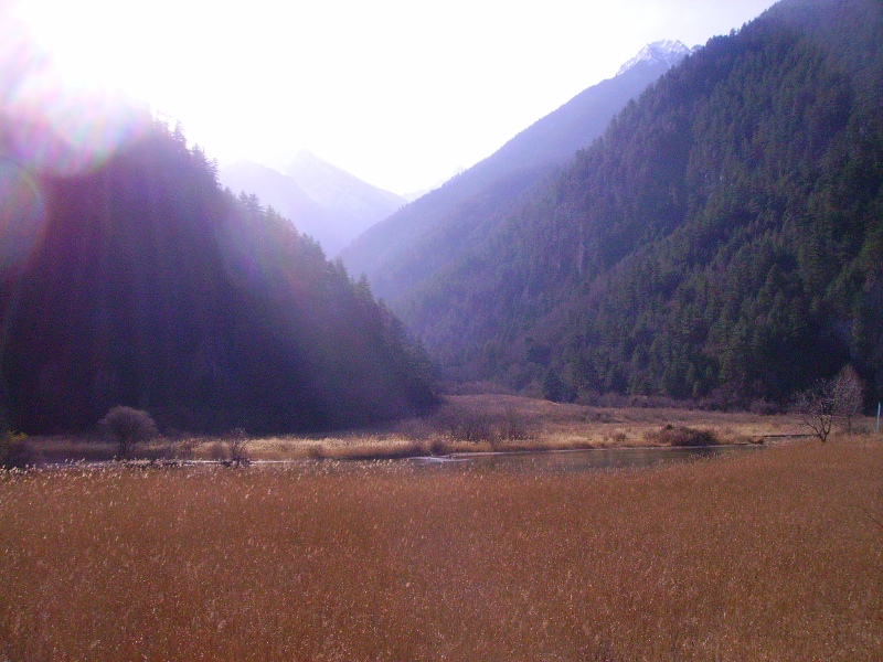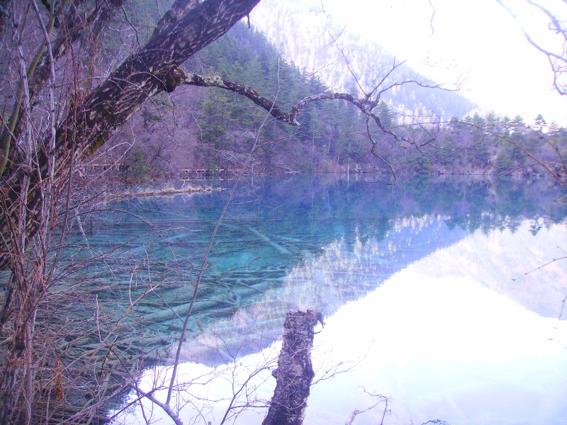 Départ aux aurores pour profiter pleinement de la journée dans le parc national de Jiuzhaigou, réputé en Chine pour ses lacs aux couleurs d’un bleu profond et ses montagnes de sapins aux cimes enneigées. Jiuzhaigou se traduit par "neufs villages de la vallée" approximativement, cela correspond en fait aux neufs villages tibétains qui se trouvent au cœur même du parc. Le sentier fait en tout plus de 40 kilomètres, il y a un premier sentier qui part de l’entrée jusqu’à peu près à la moitié du chemin. A ce moment il faut faire son choix entre deux vallées. Celle de l’Ouest contient les lacs les plus beaux je choisirai donc celle là.