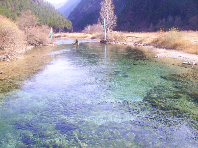 J’avais peur que les photos qui présente Jiuzhaigou soient retouchées, il me paraissait impossible que l’on puisse trouver un bleu si pur dans l’eau. Pourtant je fus vraiment impressionné par les paysages et il me semble que c’est vraiment l’endroit le plus extraordinaire de mon voyage au Sichuan.