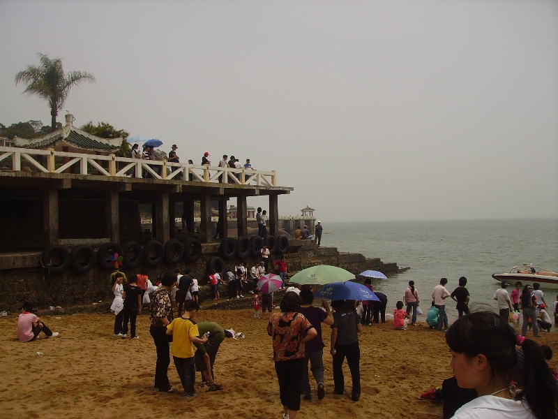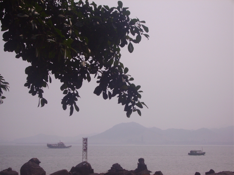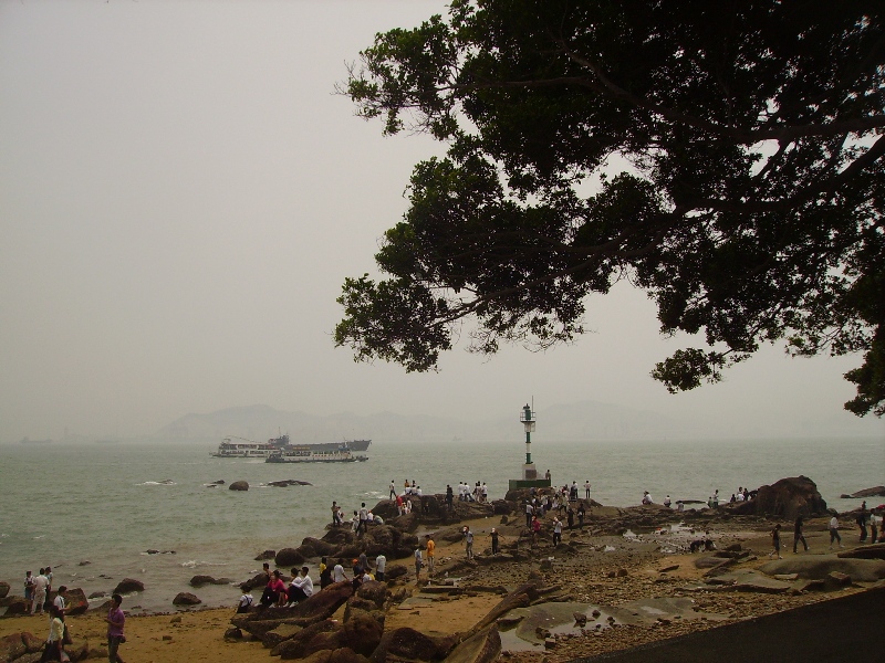 L’île de Gulangyu située juste à une centaine de mètre de Xiamen a été peuplée par les colons au XIXe siècle. L’architecture des bâtiments rappelle le vieux continent, même si mon avis sur l’intérêt de l’île est plus que mitigé. En effet, toutes les rues sont une suite de boutiques qui vendent les mêmes produits pour les touristes qu’ailleurs en Chine : crocodiles en bois, thé, ombrelles, chapeaux, thé, masques, vêtements typiques, etc. Les bâtiments sur l’île ne présentent pas non plus un grand intérêt. Il y a bien sur le tour de l’île qui mérite le détour pour voir la plage et la mer en Chine. On a alors une vue sur les bateaux porte containers colorés, un port, etc. Effectivement Xiamen est une place qui compte de plus en plus en terme de commerce international, cette vue en est la preuve.