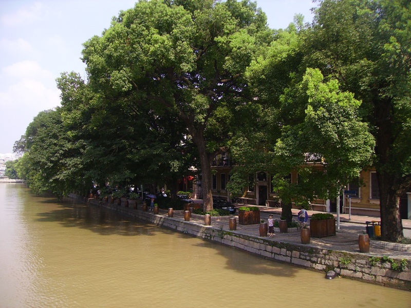 L’île de Shamian est une relique du passé colonial de Canton, lorsque les européens dans leur furie d’expansion capitalistique à la fin du XIXe ont commis des atrocités dans le monde entier et notamment en Chine. La Chine qui depuis accuse les occidentaux de l’avoir affaibli avec les guerres de l’opium et l’ouverture de ses ports aux bateaux étrangers. Shamian est donc une petite île au Sud Ouest de Canton que les européens, surtout Français et Anglais ont utilise comme port pour leur commerce dans la région du delta de la rivière des perles. Majoritairement interdite aux voitures, c’est un havre de paix et de tranquillité autour de bâtiments au style occidental et à la végétation luxuriante. Les personnes âgées y font leur tai qi ou leur gym, ils jouent aux échecs (chinois bien sur) et discutent ensemble. Cet endroit à l’écart de la densité de population de Canton, est à mon goût bien plus intéressante que Gulangyu (à Xiamen) autre île colonisée par les occidentaux en Chine, surtout par cet aspect relaxant…
