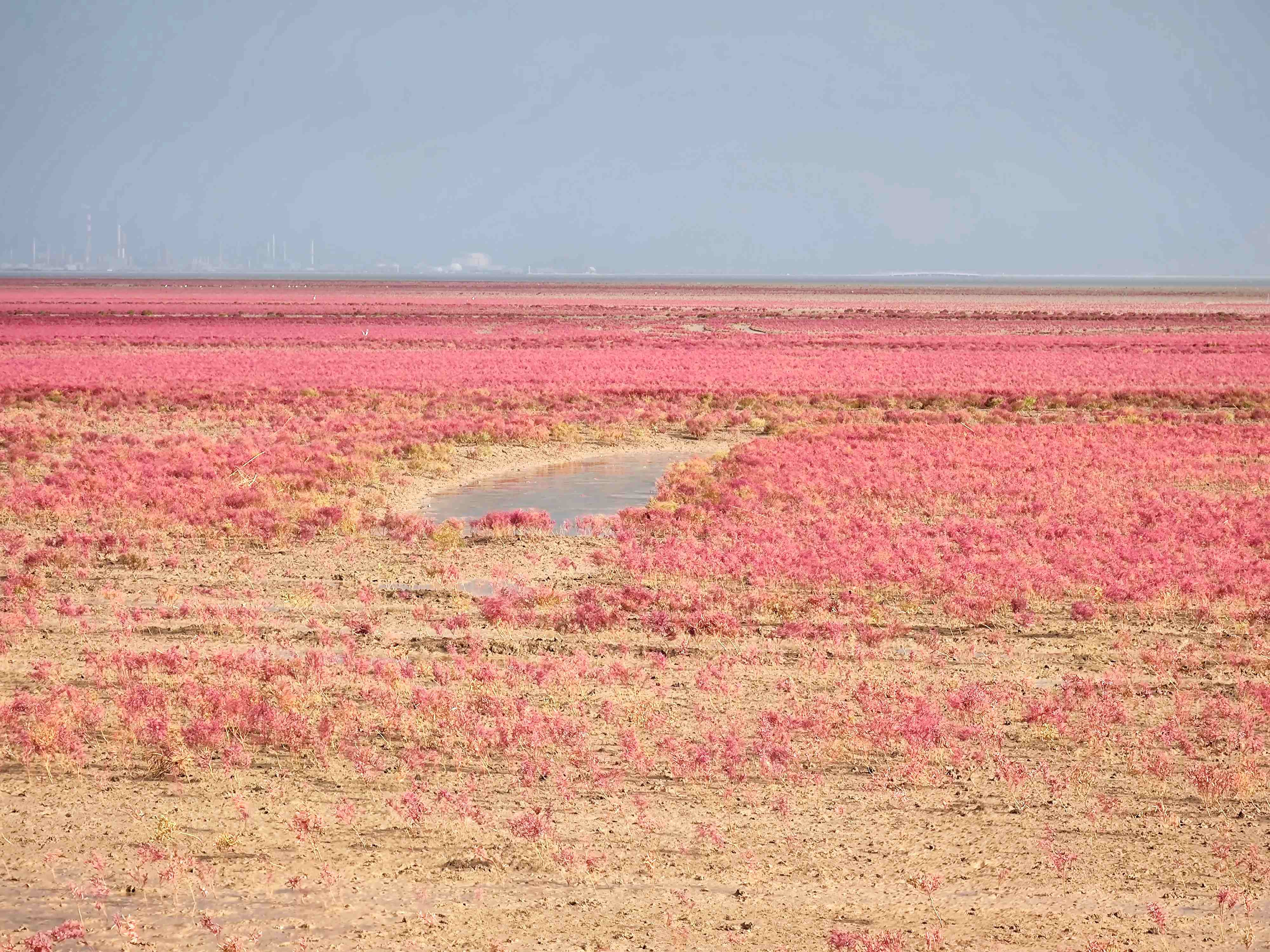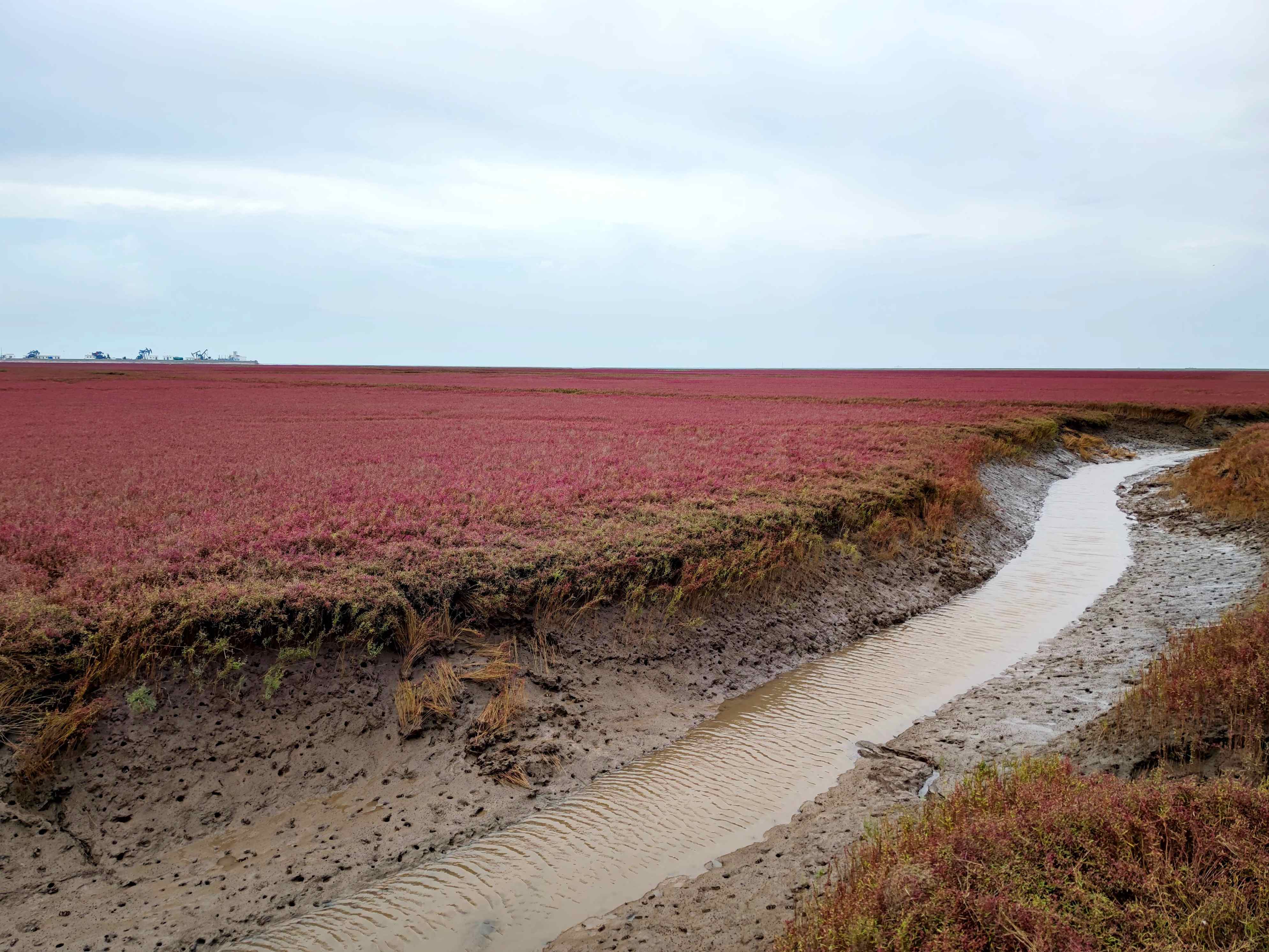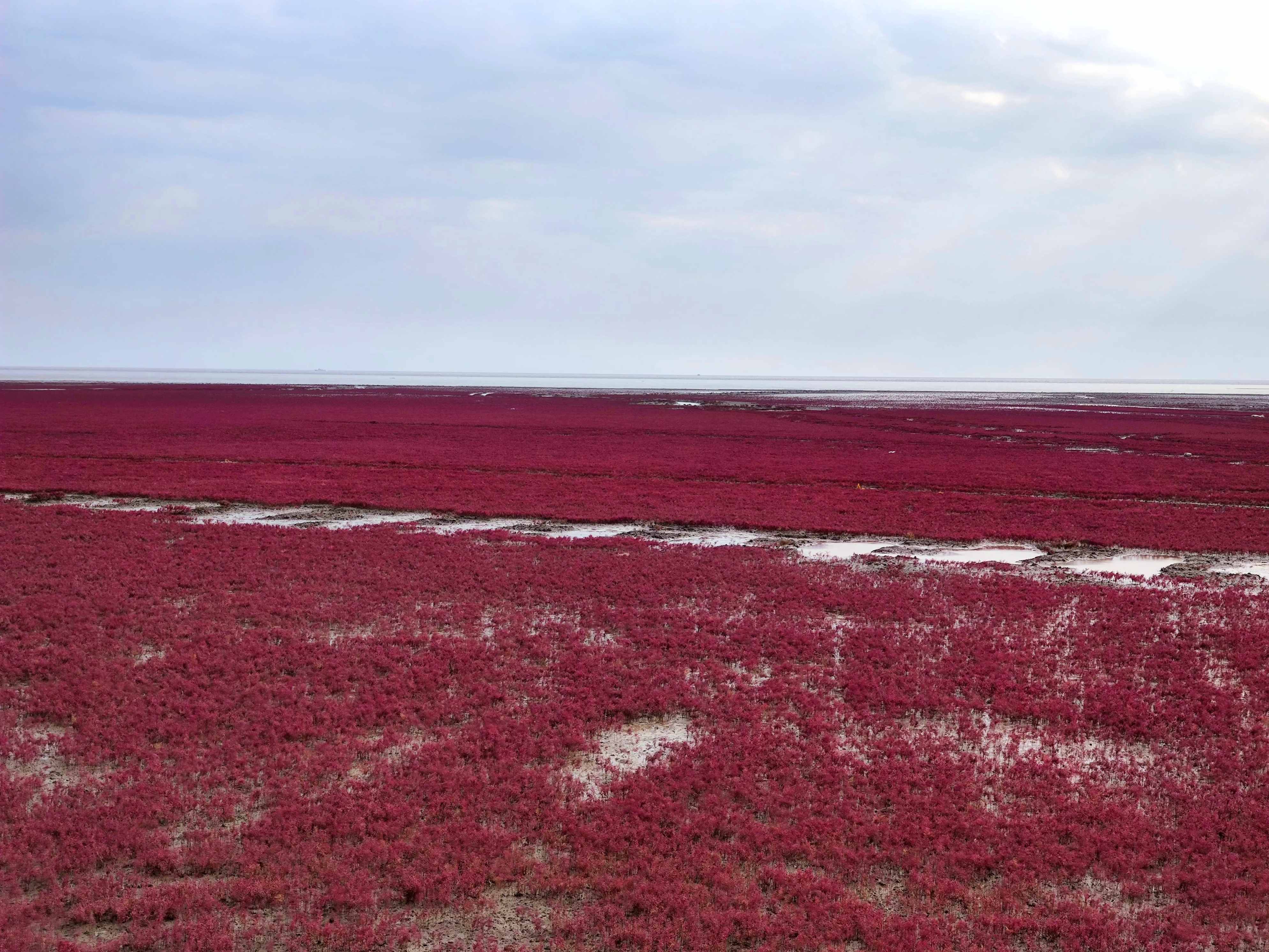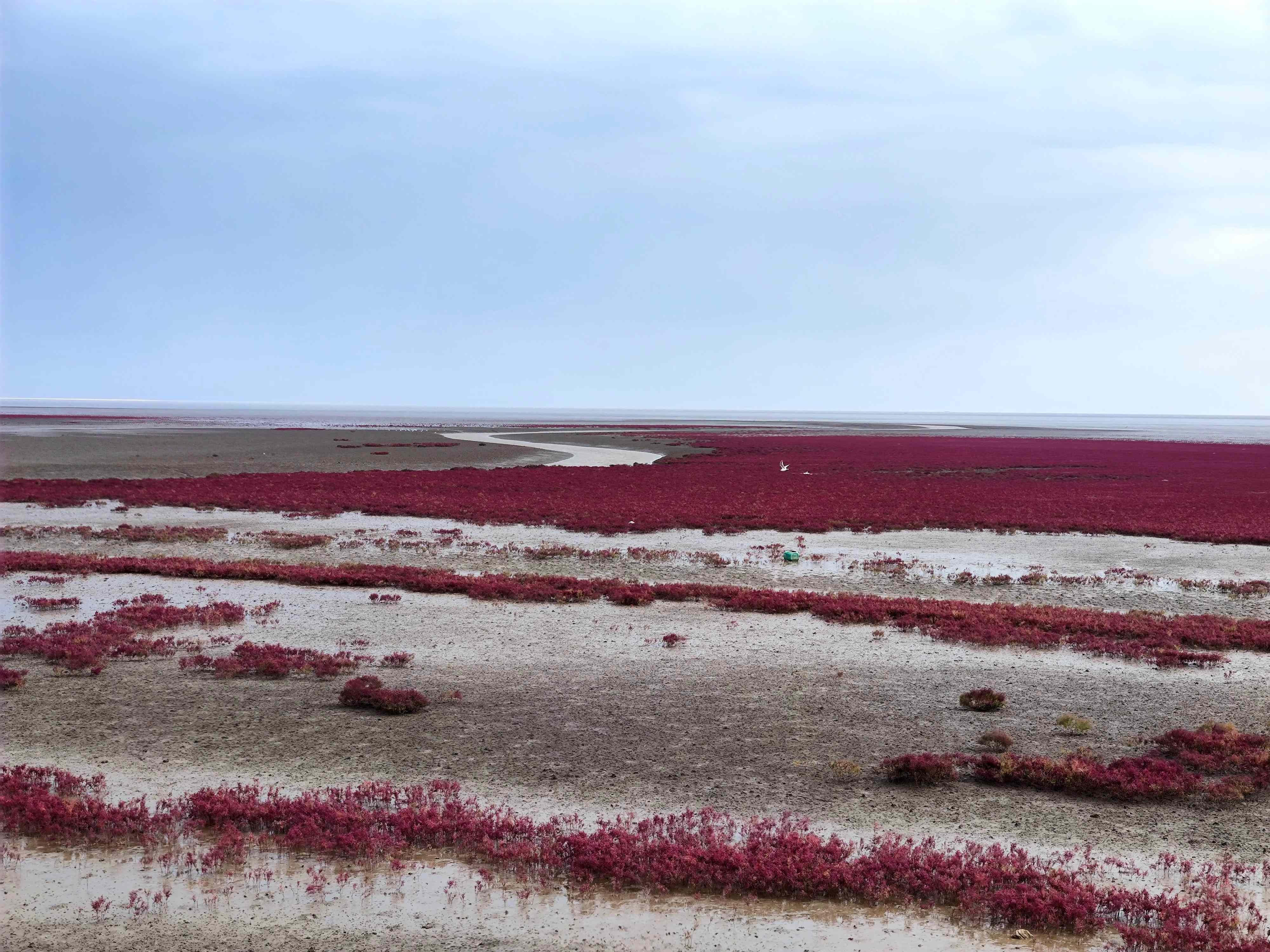 Dans la province maritime du Liaoning du Nord Est de la Chine se trouve un phénomène naturel étonnant récemment révélé par des sites de voyage comme Tripadvsior, c’est la plage rouge de Panjin. Cette « plage » est en fait une grande étendue de terre mouillée par les marées dans l’estuaire du Liaodong sur laquelle poussent de petites plantes dont les feuilles prennent une teinte rouge en automne. Cette particularité se retrouve à différents endroits de la mer de Bohai, notamment dans l’estuaire du Fleuve Jaune dans le Shandong, mais c’est à Panjin que la zone a été aménagée, c’est la principale attraction de Panjin, une ville industrielle relativement prospère tournée vers la pétrochimie
