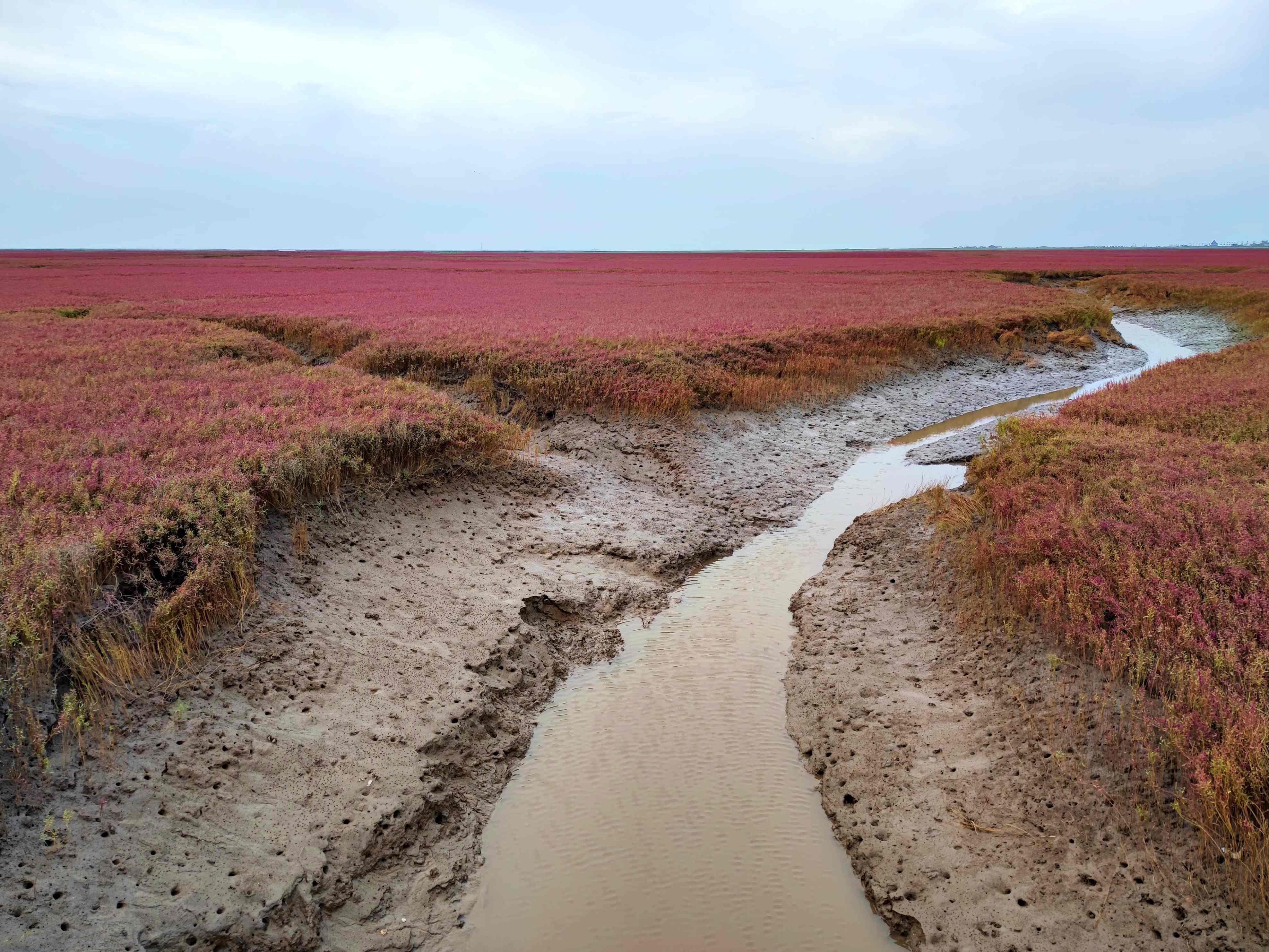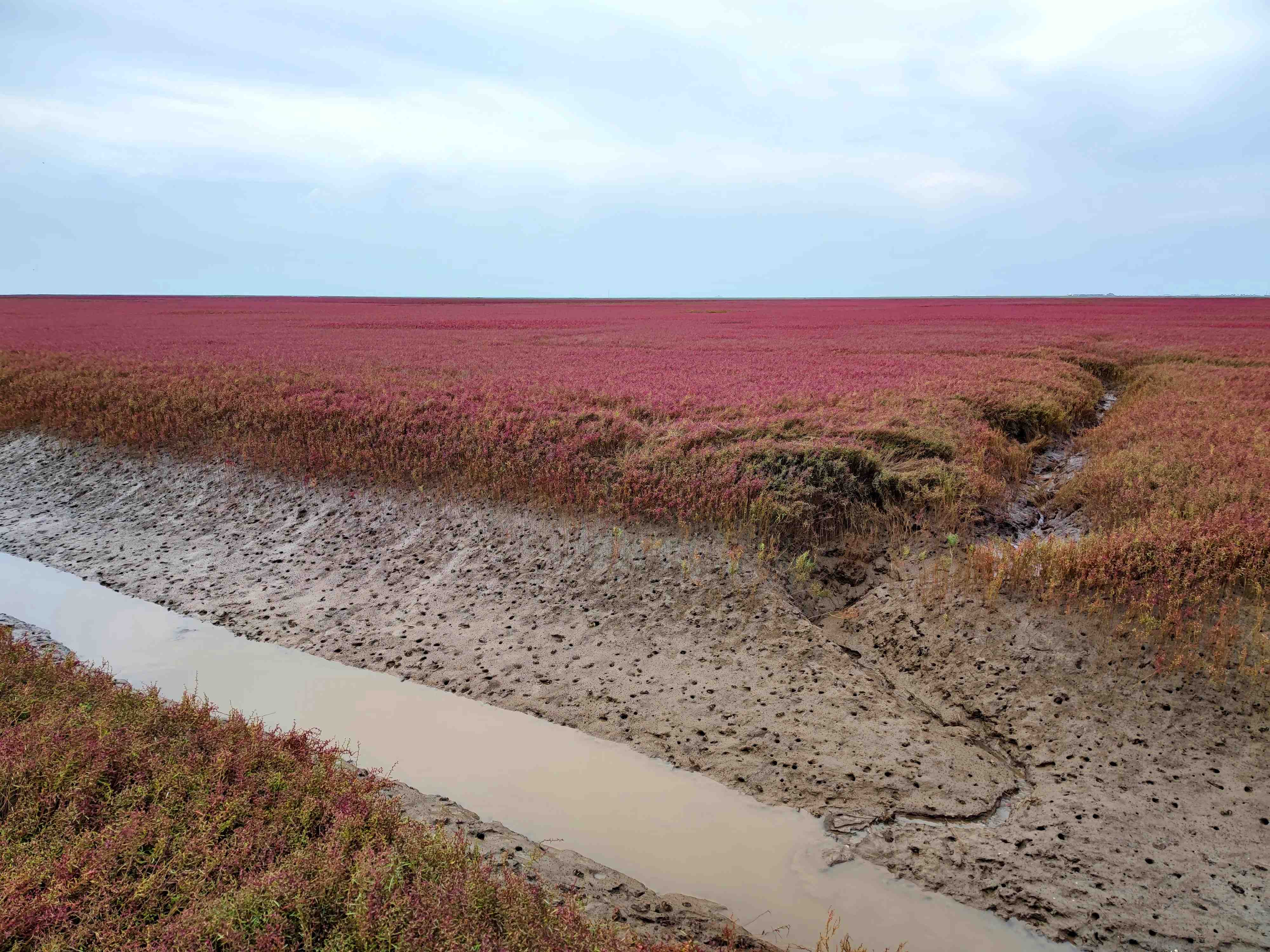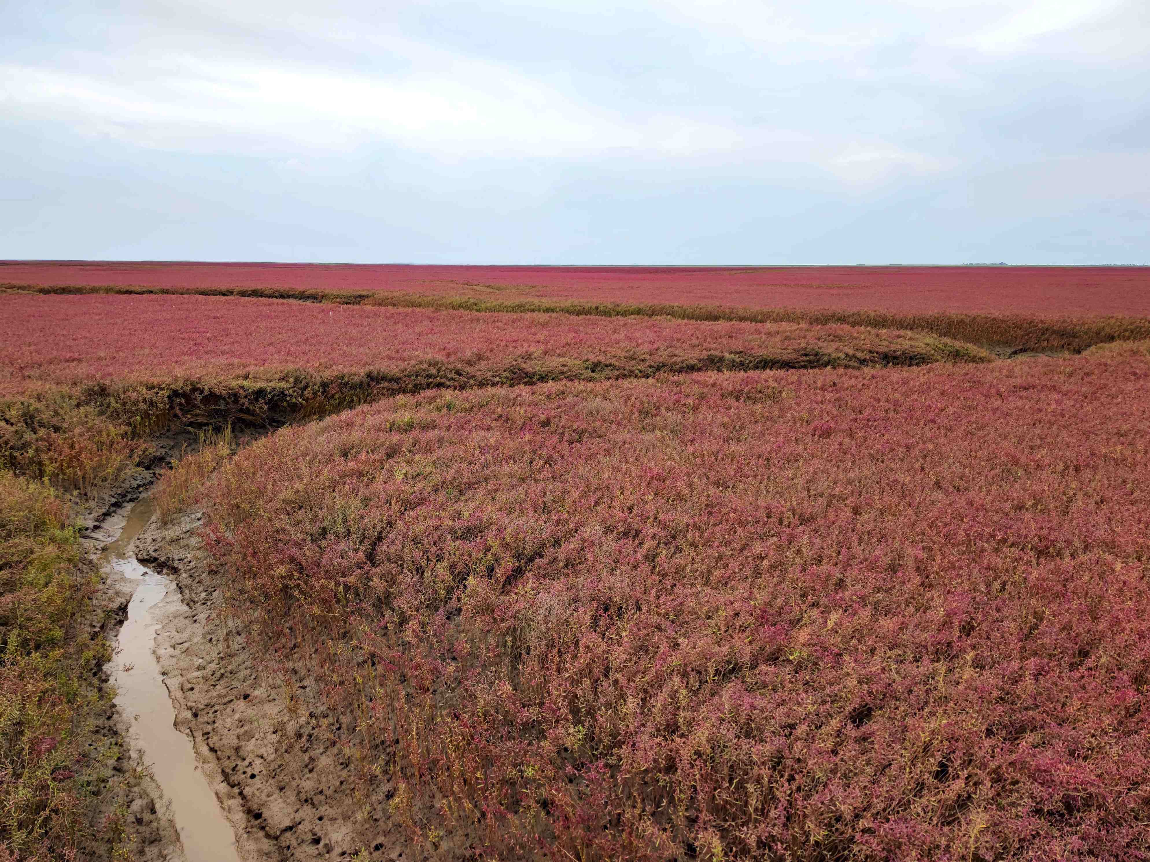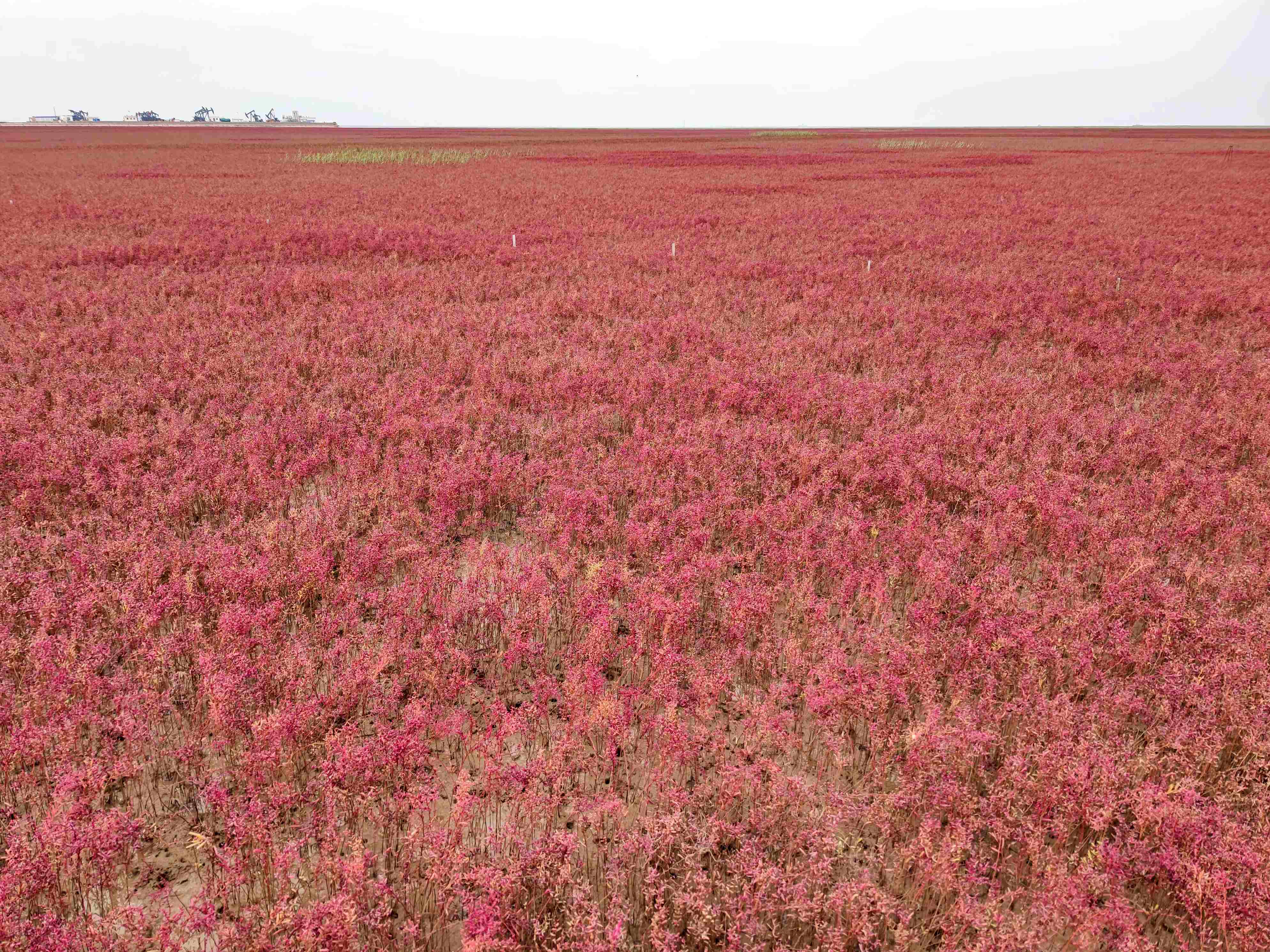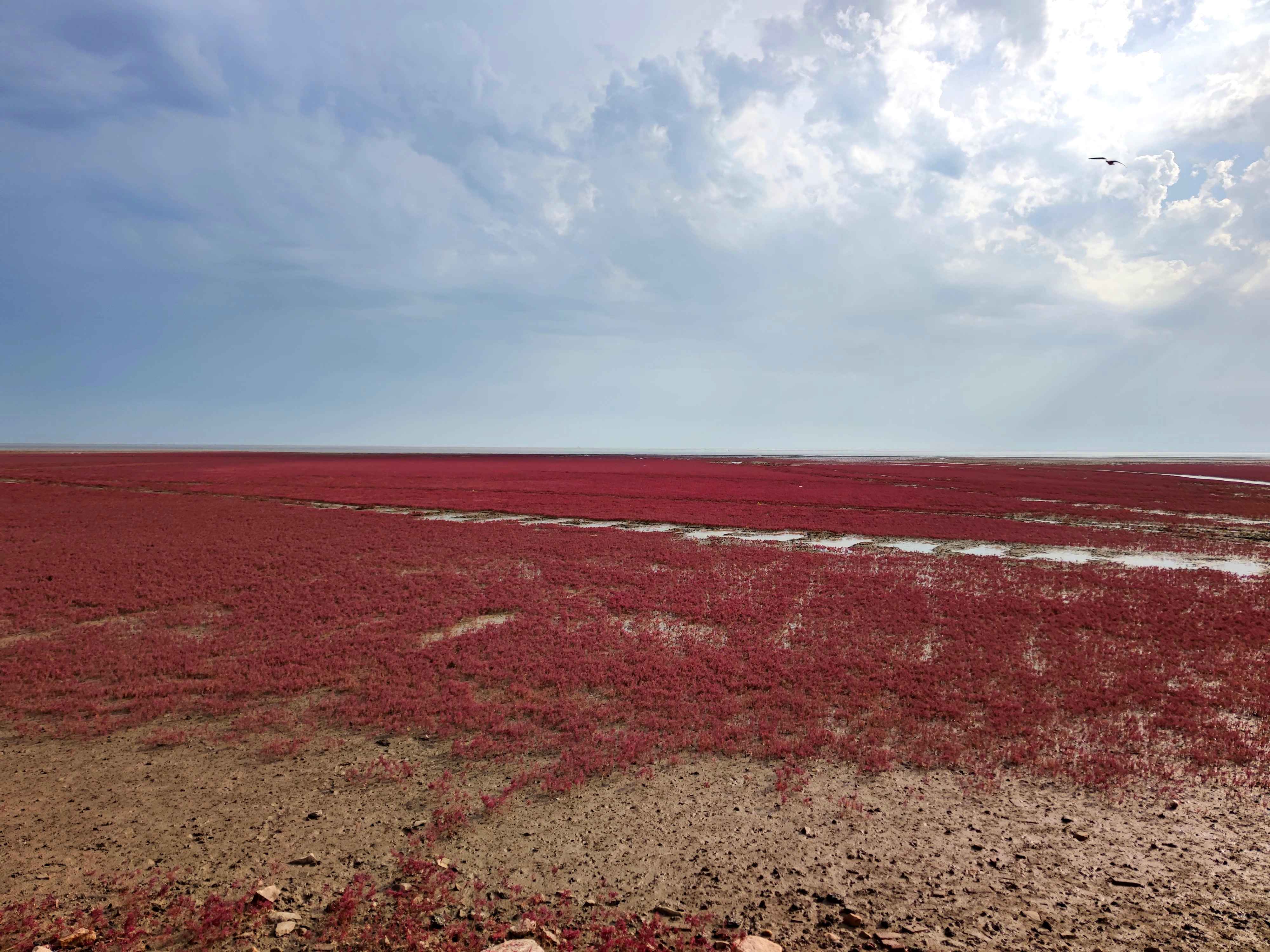 Dans la province maritime du Liaoning du Nord Est de la Chine se trouve un phénomène naturel étonnant récemment révélé par des sites de voyage comme Tripadvsior, c’est la plage rouge de Panjin. Cette « plage » est en fait une grande étendue de terre mouillée par les marées dans l’estuaire du Liaodong sur laquelle poussent de petites plantes dont les feuilles prennent une teinte rouge en automne. Cette particularité se retrouve à différents endroits de la mer de Bohai, notamment dans l’estuaire du Fleuve Jaune dans le Shandong, mais c’est à Panjin que la zone a été aménagée, c’est la principale attraction de Panjin, une ville industrielle relativement prospère tournée vers la pétrochimie