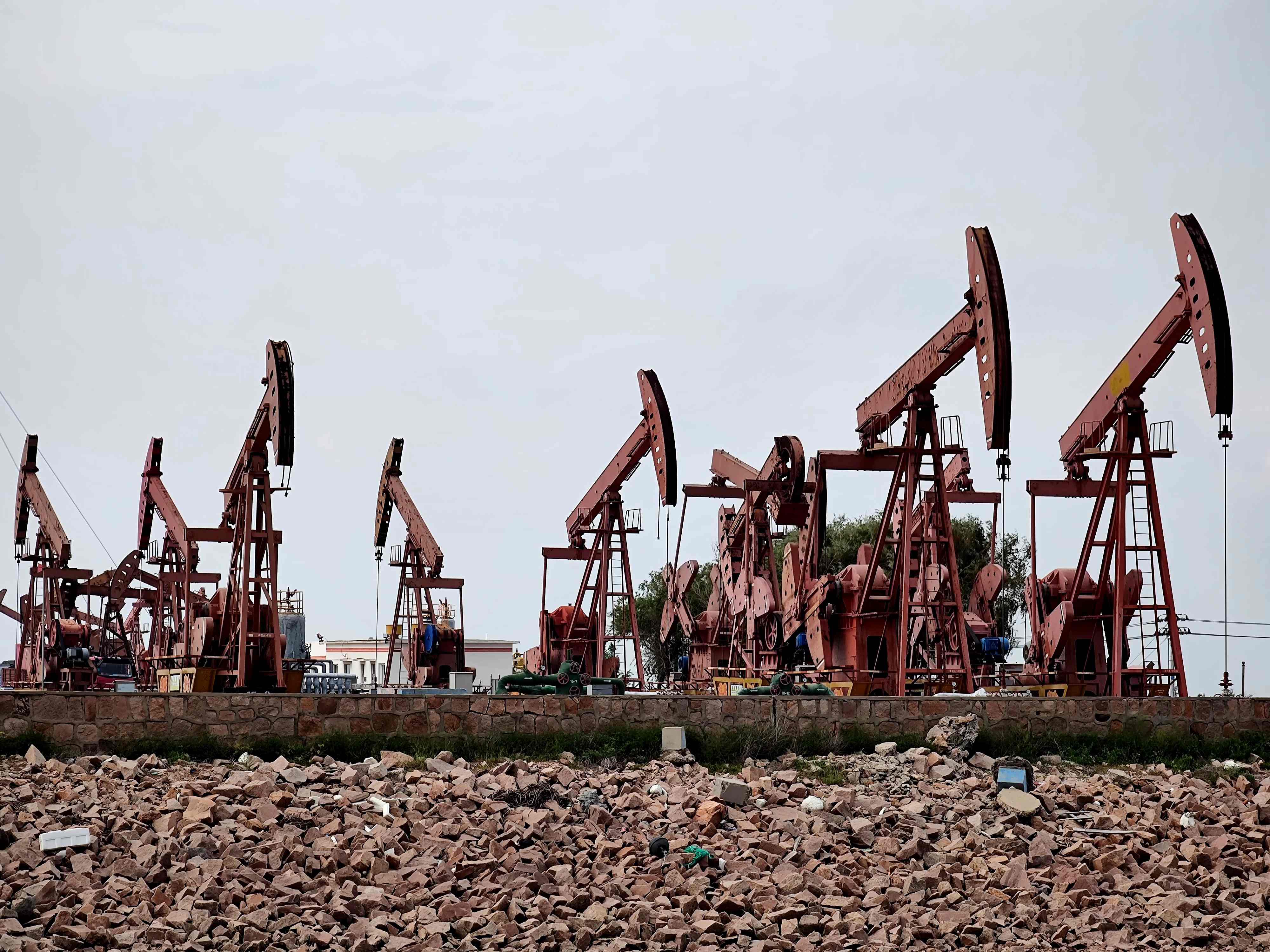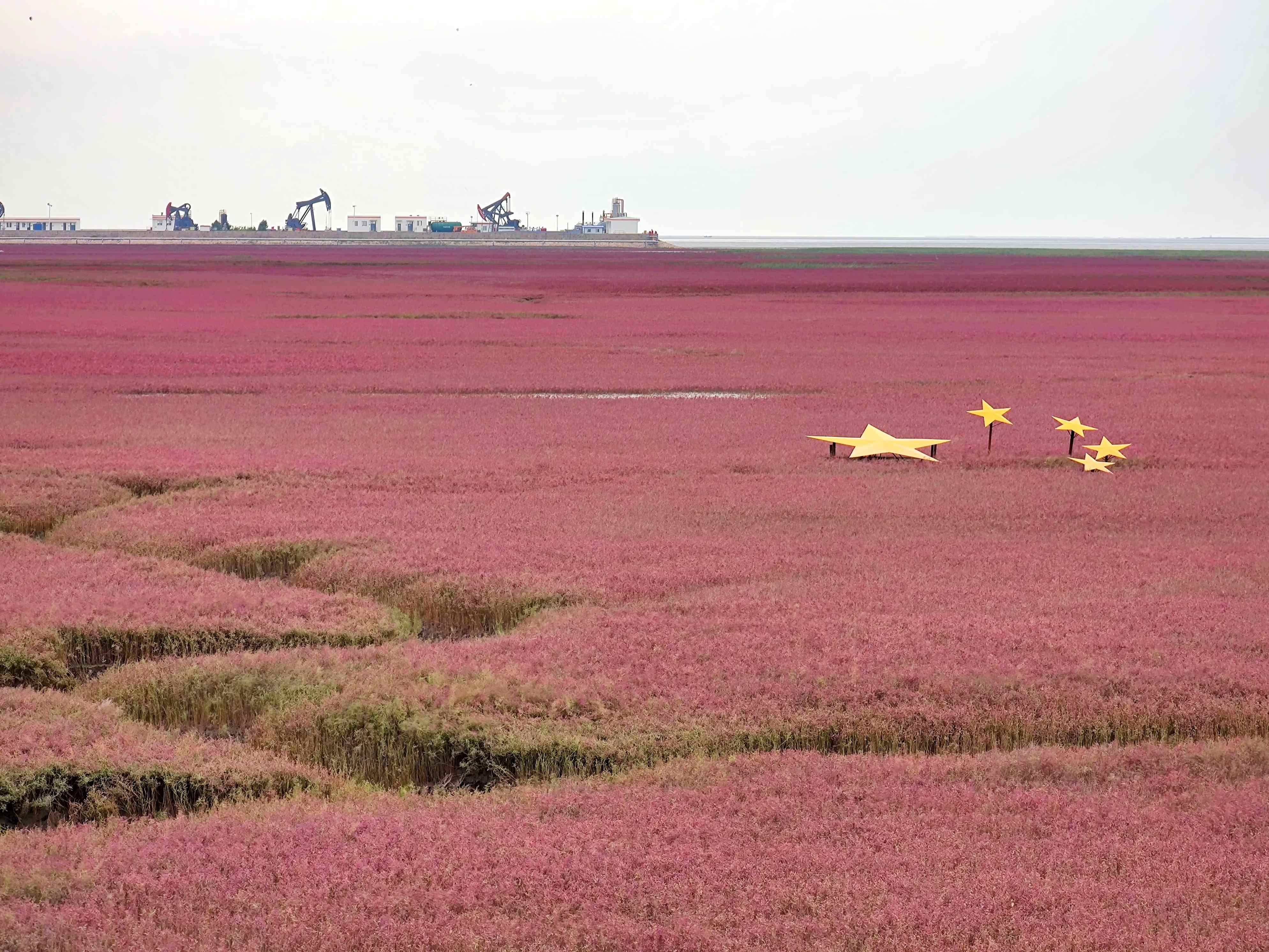 Au fond on aperçoit les derricks qui répètent à l’infini leur va et vient pour pomper les hydrocarbures du sol de Panjin. Il est possible de s’aventurer au plus près de ces derricks sur une plateforme qui a été malheureusement abimée, probablement par un des nombreux typhons qui ont frappé la région cet été.