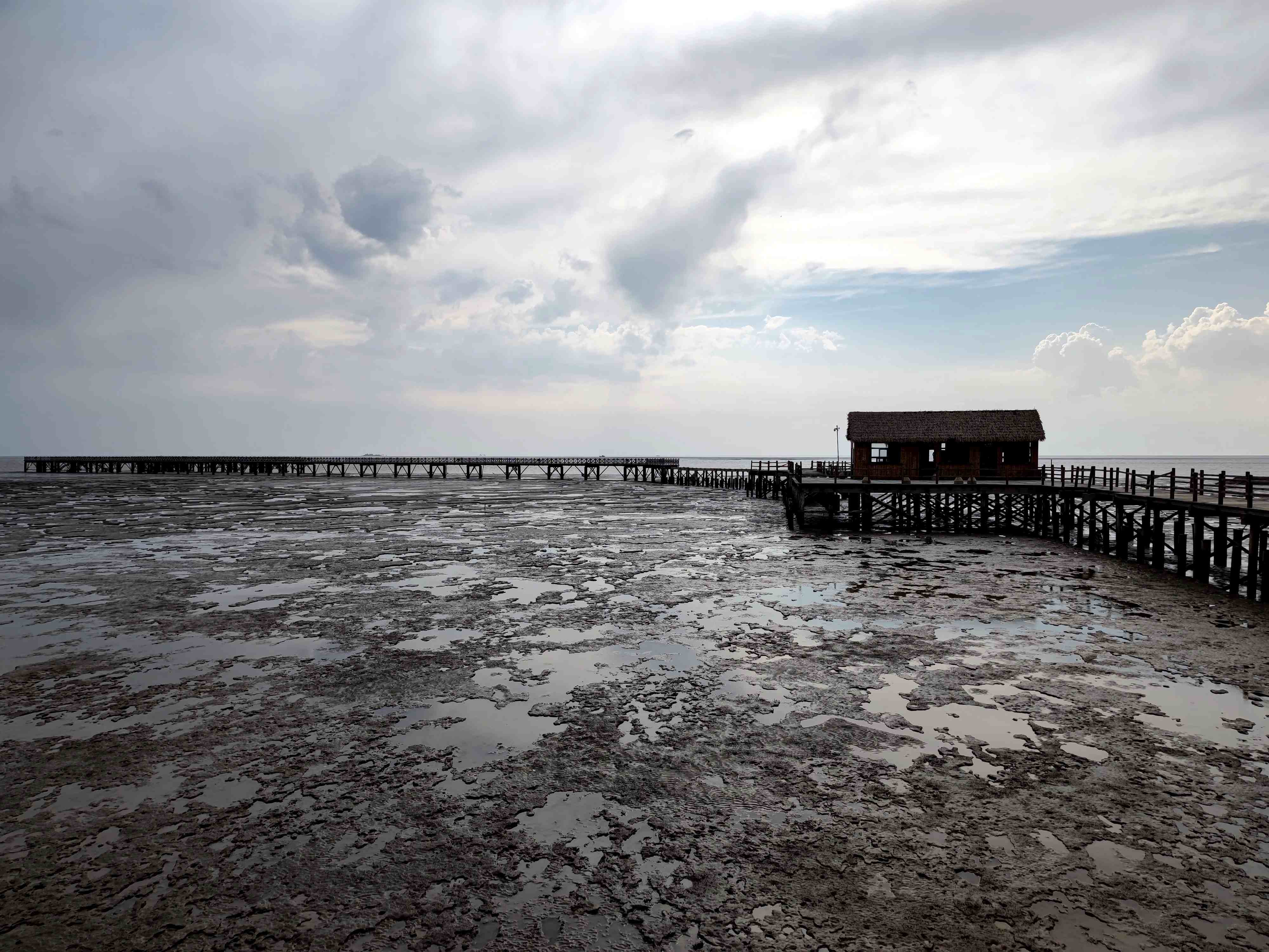 Des installations en bois sont installées pour s’aventurer au plus près de la mer, qui subit de gros phénomènes de marée par ici, et s’est retirée bien au loin lors de notre passage, laissant apparaitre les innombrables crabes de mer qui sont installés dans ce sable noir.