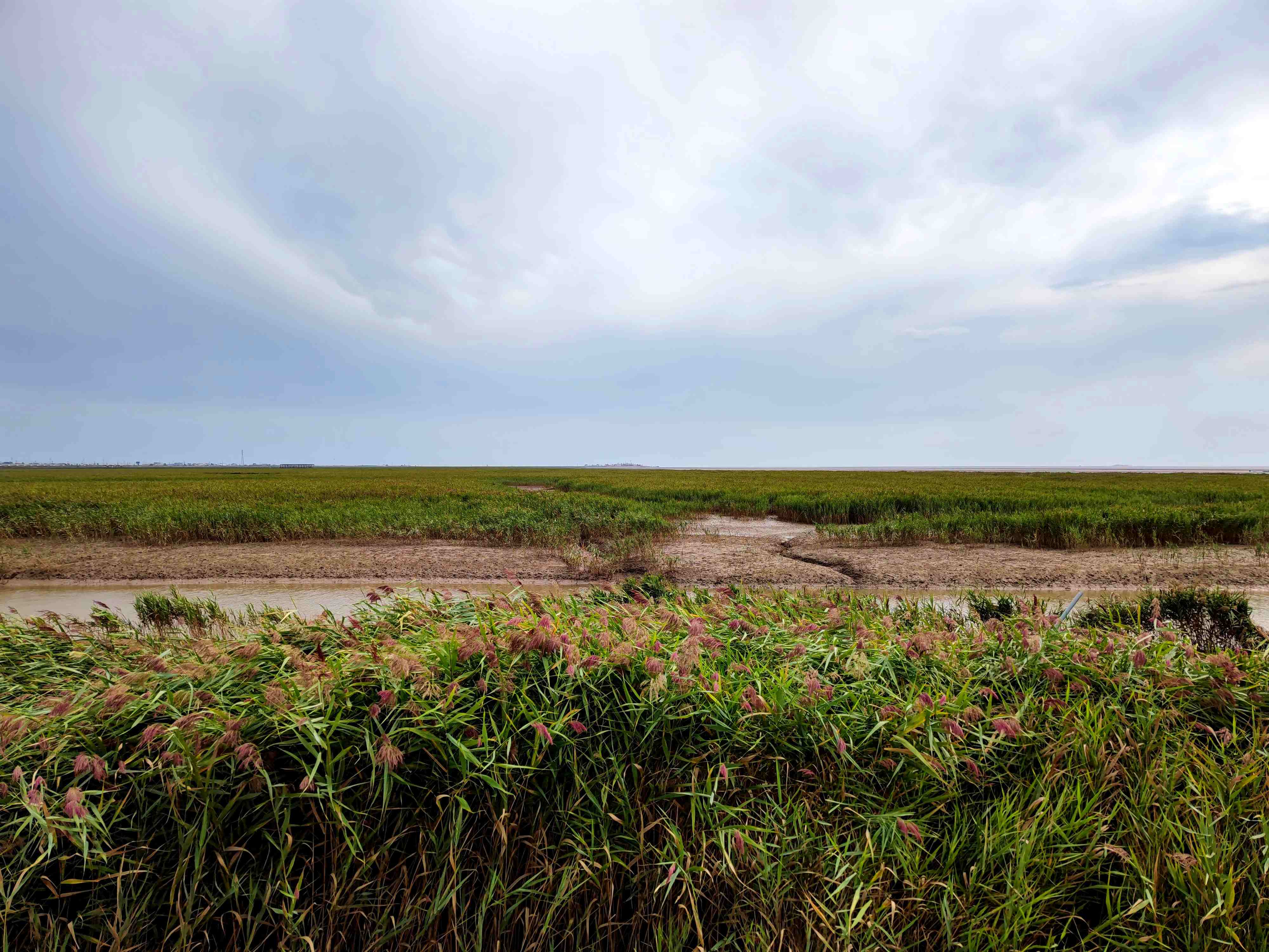 Il y est toujours difficile, même le week-end, mais on arrive à s’extraire des bouchons pour prendre l’embranchement de la G1, l’autoroute de Beijing à Harbin. On roule tranquillement dans la plaine du Liaohe jusqu’à Panjin en faisant attention aux innombrables radars automatiques qui pullulent sur les routes chinoises. On arrive en tout début d’après-midi à Hong Hai Tan, le temps est plutôt maussade, mais on se sent quand même privilégiés car le ciel est noir au loin, il tombe une grosse averse à l’horizon sur les usines pétrochimiques du bord de mer.