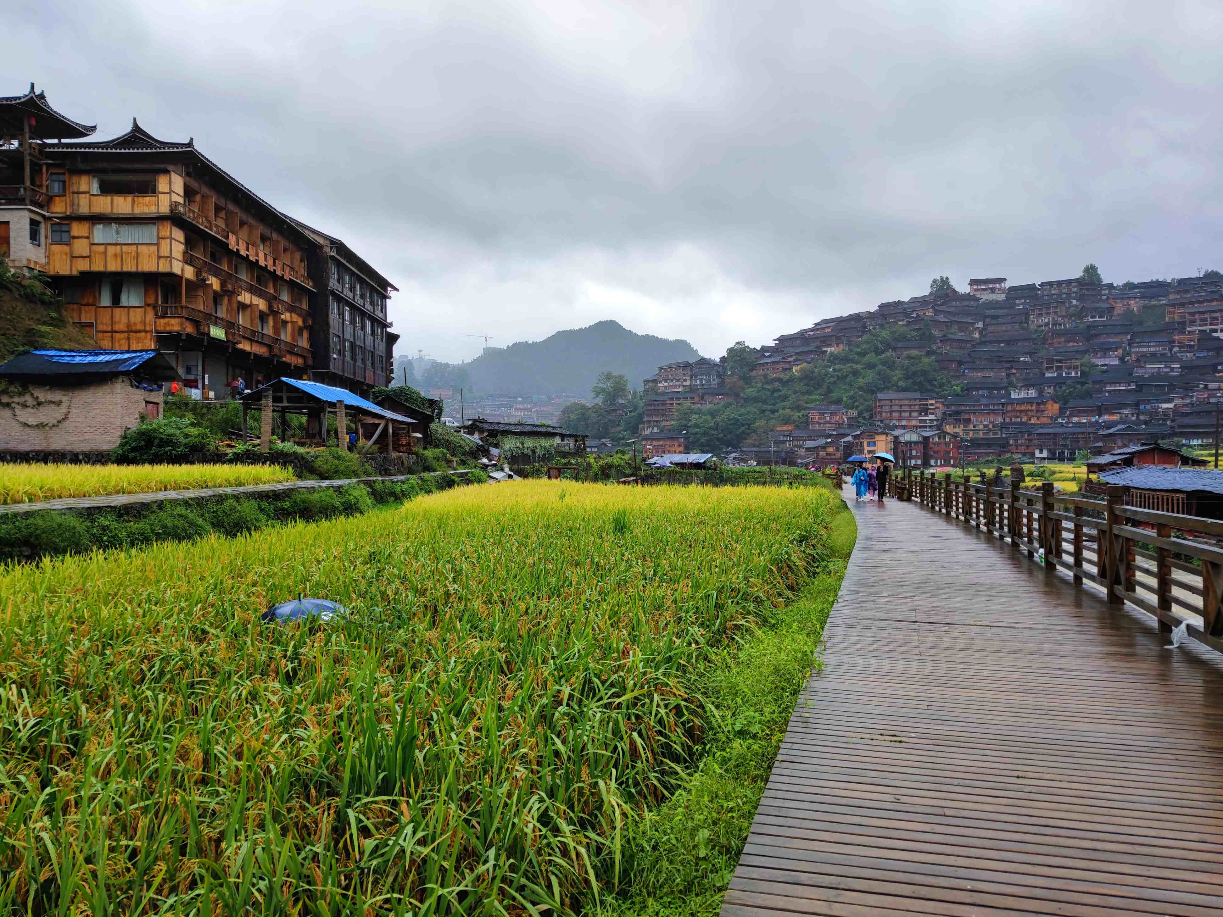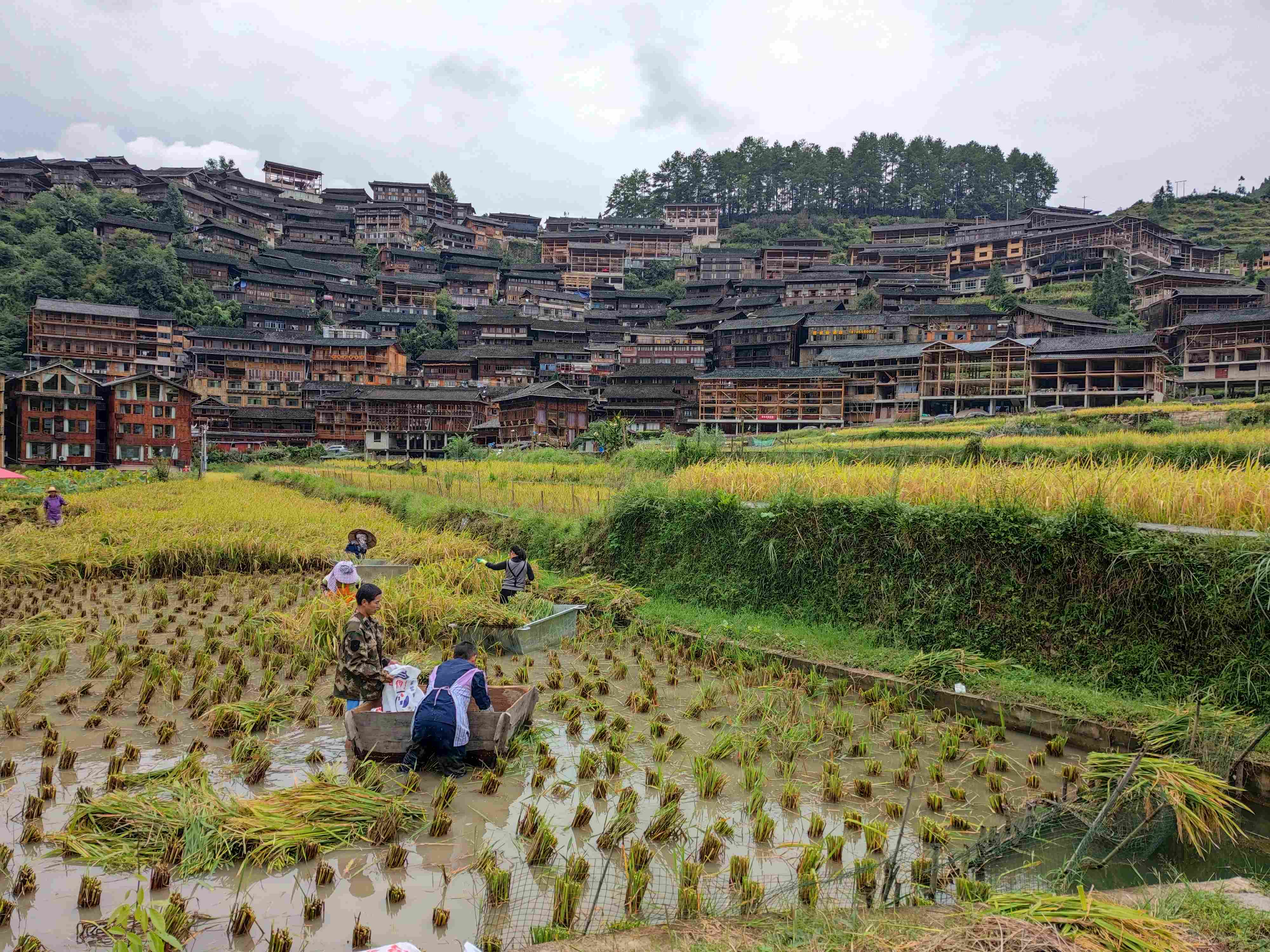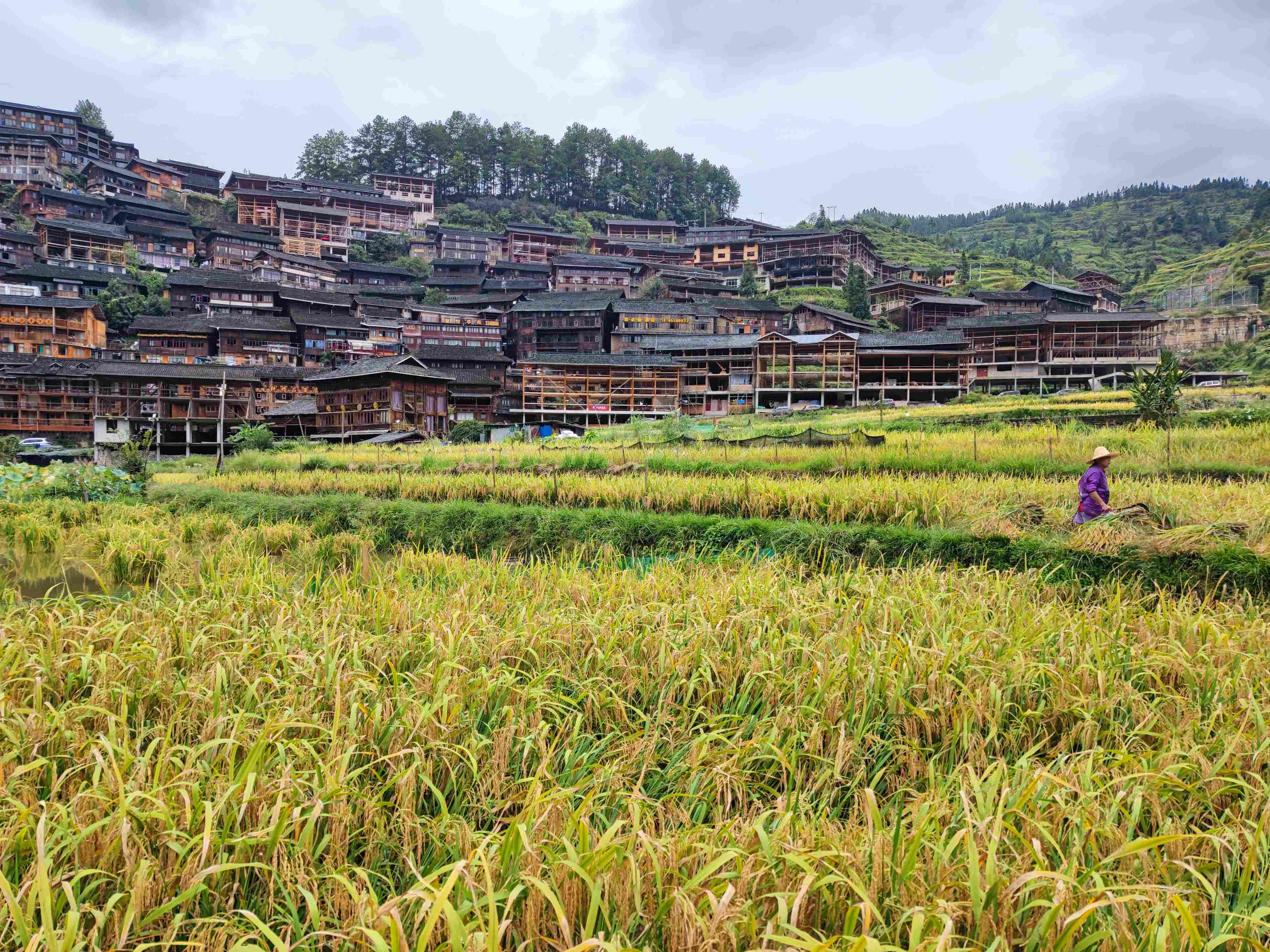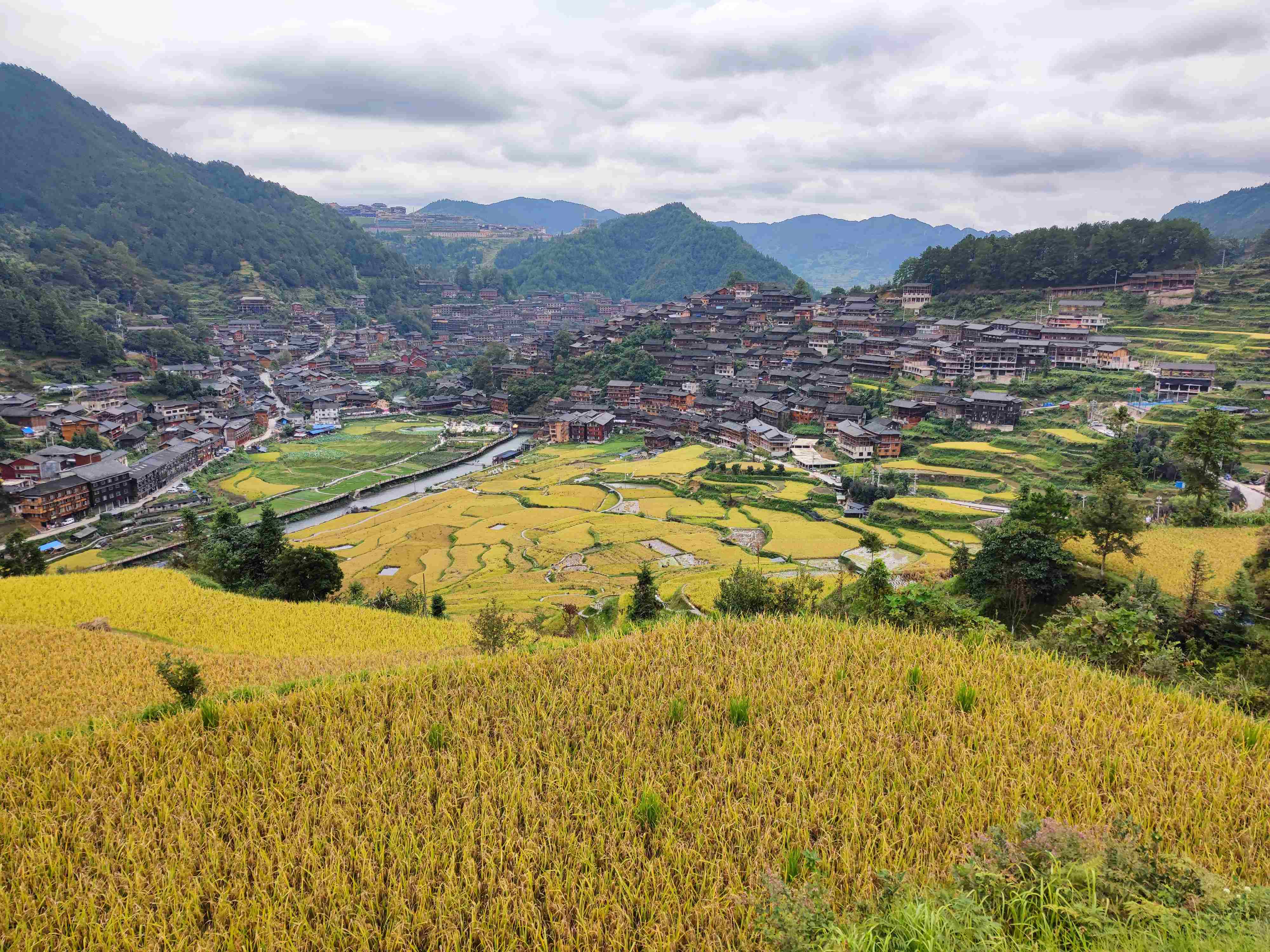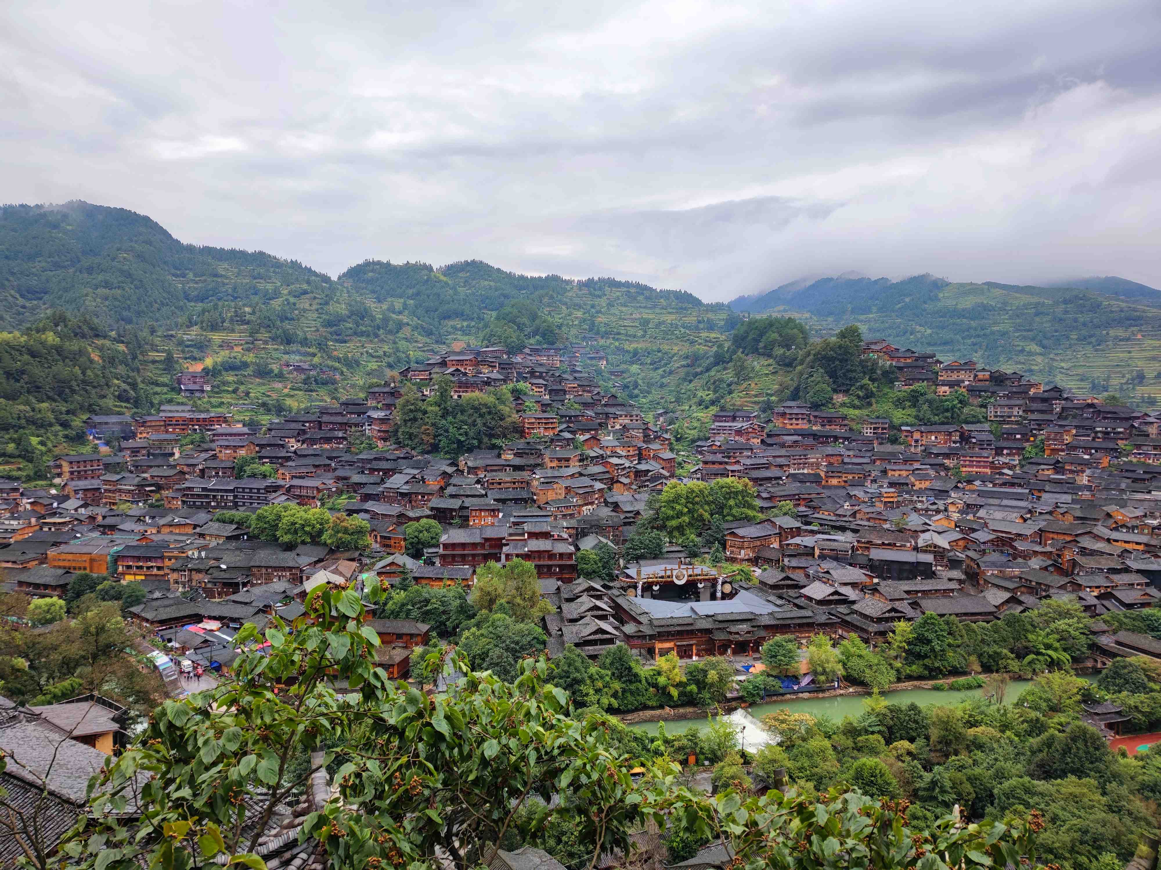 Le Guizhou est une des plus belles régions de Chine, assurément. N’ayant que quelques jours à disposition, je choisis de me poser dans le village de Xijiang, du fait de sa proximité avec les lignes de train à grande vitesse (le segment de Changsha – Guizhou) et de la beauté du paysage. Je savais que ce village, un des plus connus de la région avait déjà investi à fond dans l’accueil des touristes à gros volume, et en Chine cela veut dire souvent une rénovation complète de tout le patrimoine, l’ajout d’une enfilade de boutiques de souvenirs, et les nombreux groupes de touristes du triptyque diabolique drapeaux - casquettes - mégaphone. Depuis la gare de Kaili South, un bus direct nous amène directement à l’entrée du village en moins d’une heure. Il faut payer un droit d’entrée de 65 RMB pour trois jours en comptant quatre tickets de navette (dont un aller retour entre la grandiose porte d’entrée et le village lui-même). C’est le prix à payer aujourd’hui en Chine pour accéder aux endroits les plus beaux du pays, on repassera pour l’authenticité. Néanmoins, même dans ce genre d’endroit, il est possible de retrouver cette valeur mais on en parlera un peu loin dans ce carnet.